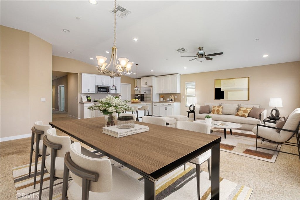 INCUDED HIGHLIGHTS: SOLAR,FULLY UPGRADED HOME,HIGH GRADE BULLYGRASS THROUGHOUT BACKYARD. Beautiful, turnkey home located in the desirable Altis 55+ gated community with resort style living and PAID SOLAR! This lovely single story 3 bedroom, 2.5 bath upgraded home with open floor plan is your dream come true! Built in 2023, the home features a deluxe, bright kitchen with white thermofoil cabinets, huge extended island with wrapped matching cabinetry, large single basin stainless steel sink, GE Cafe appliances, beige quartz countertops and full backsplash, pendant lighting, and a large walk-in pantry. The primary bedroom provides a spacious retreat and features a sliding door to the back yard, large walk-in tile shower with seat and custom pebble floor, dual-sink vanity with framed mirror, and a spacious, walk-in closet with mirrored door. The home includes a second-bedroom suite with private full bathroom - perfect for guests or family members! The third bedroom has double doors and a walk-in closet and can function as an office or bedroom. Other features include a 2-car garage with extra storage space, powder room for guests, upgraded additional recessed lighting in the great room, 10-foot sliding door in great room, ceiling fans with remotes in great room and all bedrooms, custom neutral paint throughout home, and dining room chandelier. The home offers smart features such as keyless entry, Ring doorbell and wi-fi connectivity. With energy efficient features such as tankless water heater and PAID SOLAR. Low maintenance landscaped back yard with high quality artificial turf (Big Bully Turf) that looks like real grass and stays cool. The fabulous community center features a 16,000 sq. ft. club house with fitness center and studio, massage room, card room with private lockers and bar, event rooms, and beautiful mountain views. Outside you will find a beach-entry swimming pool, heated lap pool, spa, firepits, grilling areas and pickle ball courts. This home has everything you need for an active adult lifestyle. Come and see this home today!