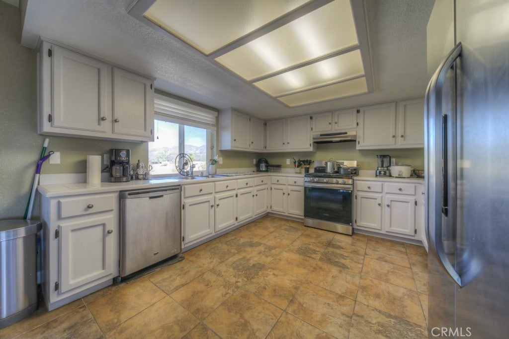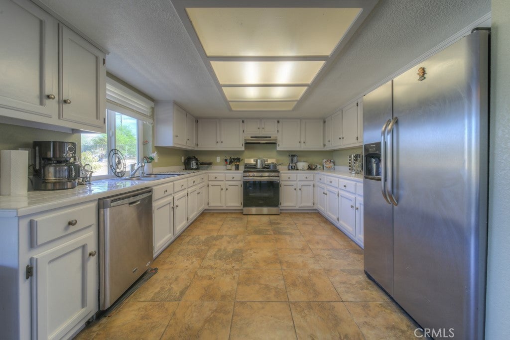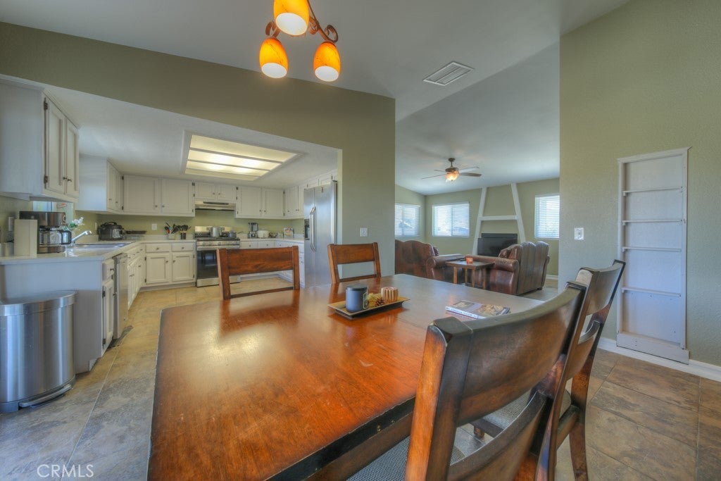 Beautiful three bedroom, two bath custom home situated in the peaceful Indian Cove neighborhood. This well cared for home sits high on the south side providing beautiful mountain views. As you enter the home, you are welcomed into a spacious living room, with a cozy fireplace. The living rooms leads into the spacious dining area, and modern kitchen. The dining room also has a sliding glass door which opens up the spacious back yard. The three bedrooms are located down a separate hallway, providing privacy. The master bedroom has a private bathroom with walk-in shower, and a sliding door which leads to the backyard. There is an attached patio cover in the back, small porch area in front. The laundry area is inside the attached two car garage. The home is located 12 miles from MCAGCC Front Gate, 6 miles from Downtown, and 4 miles from Stator Bros, and 11 miles from Joshua Tree National Park north entrance.
