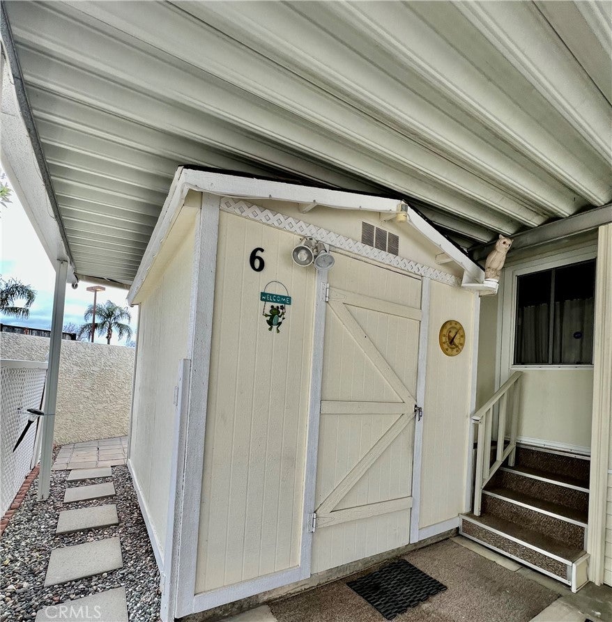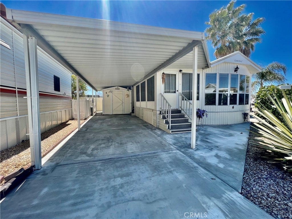 OWN YOUR LAND! LARGE "A" LOT! MOVE IN READY! Be the King & Queen of your CASTLE! Fully furnished, just bring your toothbrush. Located in the desirable Mt Shadows RV Resort 55+ gated senior community. Featuring 1 Bedroom, 1 Bathroom, full-length grandfathered-in California room, a covered carport and large detached storage shed. Shows beautifully with vaulted ceiling, two ceiling fans and laminated wood flooring throughout. New energy efficient, freestanding HVAC providing heat & air. Kitchen has a freestanding range, built-in microwave and newer refrigerator and is fully equipped with cookware. Master bedroom and hallway have mirrored doors. Bedroom also has doors to bathroom, backyard and patio. Bathroom has shower/tub combo, newer toilet and extra storage cabinets. The California patio room has front, side and back entrances and could easily be used as second bedroom or living space. The backyard has a nice stucco wall and vinyl lattice side fencing. Great for entertaining with a back porch view of the sunset. Two orange trees to enjoy in season. The concrete pad runs under the park model. The roof was redone in 2020. GREAT LOCATION near the main clubhouse, office, pool, hot tub, shuffleboard, billiard room, library, gym, card room, craft room, two laundry rooms, showers, indoor and outdoor kitchen, BBQ area, horseshoes and large auditorium/party room where most of the fun community activities take place. Just stroll on over to enjoy. A second, smaller clubhouse, laundry and hot tub located toward back of park. LOW HOA FEES of "ONLY" $292.00/month INCLUDES WATER, SEWER, TRASH, BASIC CABLE AND INTERNET. WHAT A DEAL! This is resort living at its finest!