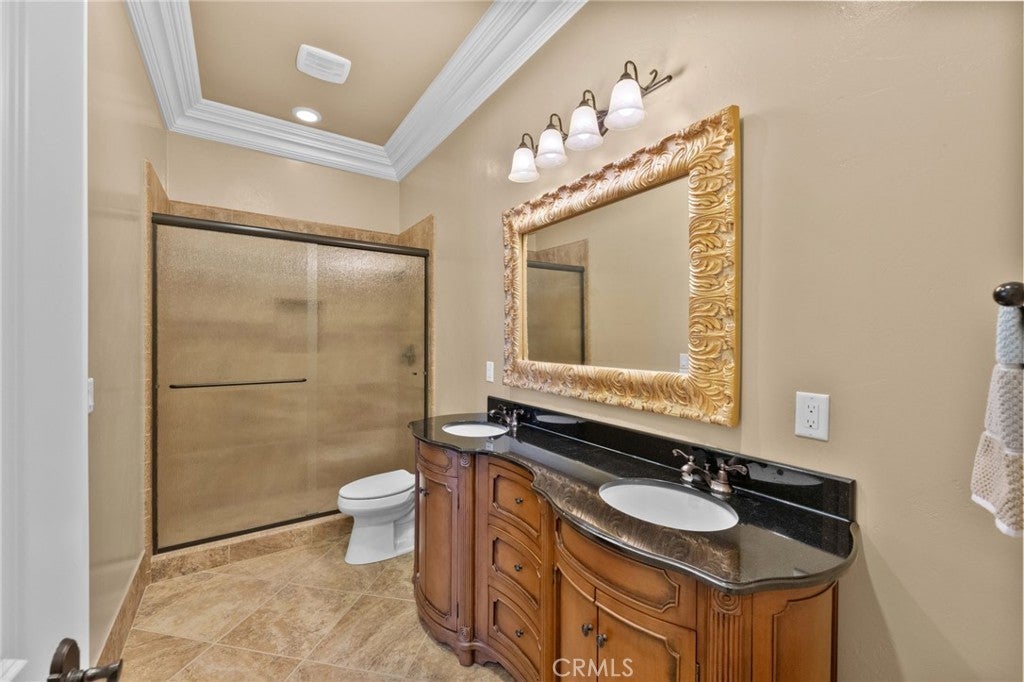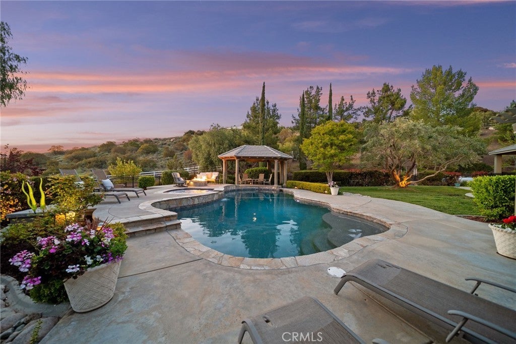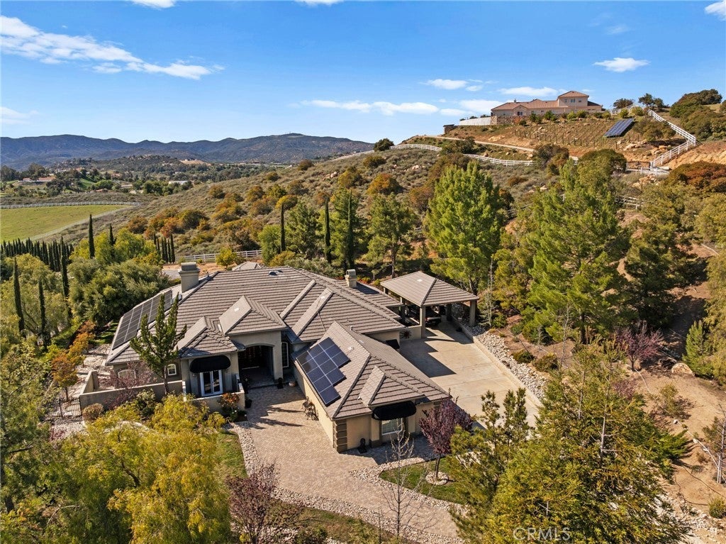 Welcome to 38565 Celine Cove where you get TWO homes on a 5 acre lot – A Private La Cresta Estate with Exceptional Craftsmanship! Situated just minutes from the front gate of La Cresta. This exquisite 5-acre estate offers the perfect blend of luxury, functionality, and privacy. Spanning approximately 6,800 square feet, the main residence is a testament to quality construction and thoughtful design. Soaring 12-foot ceilings, crown molding, and commercial-grade glass doors define the expansive interiors, which include 4 spacious bedrooms, 2 fireplaces, and an executive office ideal for working from home. The chef’s kitchen is equipped with a Bosch induction cooktop, KitchenAid refrigerator, and reverse osmosis system, making it as functional as it is elegant. The home also boasts 4 air conditioning units, an enclosed sunroom with A/C, and a paid solar system with battery backup for energy efficiency. Step outside into a backyard oasis featuring a pebble tech saltwater pool, outdoor fire pit, and lush landscaping framed by mature trees—including lemon, orange, pomegranate, pear, and apple. You get TWO 3-car garages, AS WELL AS one enclosed RV parking with generous storage for your oversized collectibles. Let's not forget about the 2,400 square foot guest house, complete with soaring vaulted ceilings, an enclosed sunroom, 2 large bedrooms, a full kitchen with granite counters, and an oversized garage with an enclosed RV bay—all constructed to the same exacting standards as the main home. This private estate features an electric gated entry, offering security and seclusion just 10 minutes from top-rated schools, the freeway, and shopping. 38565 Celine Cove is more than a home—it’s a sanctuary of comfort, sophistication, and California country living at its finest.