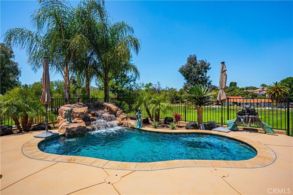 Welcome to this fully remodeled, resort-style Pool/Spa home on the 4th green of the Canyon Lake Golf Course — offering the perfect blend of luxury, comfort, and functionality. This impressive home features 3 spacious master suites, each with private bathrooms, ideal for multigenerational living or hosting in style. A dedicated office, large game or bonus room, and 3.5 bathrooms offer flexibility for any lifestyle. Step into your backyard retreat with a Pebble Tec saltwater Pool/Spa, two cascading waterfall koi ponds, two view decks — one with a built-in BBQ — and panoramic fairway views. Inside, enjoy two custom wet bars, three wine fridges, a cozy wood-burning fireplace, and refined details throughout. The downstairs master suite has a private entrance, perfect for guests or in-law quarters. Car enthusiasts and golfers alike will love the oversized 3-car garage, complete with custom cabinets, built in desk, epoxy floors, and a golf cart door. The expansive driveway allows for RV and/or boat parking. Additional features include: • Owned solar system • Propane for cooking, water heater, and pool heater • Soft water system • Spacious laundry room with sink and built-in cabinetry • Fruit trees in the backyard • Abundant storage throughout. Located in the gated Canyon Lake community with access to boating, beaches, tennis, golf, and more, this home truly has it all. Don’t miss your opportunity to own this custom Canyon Lake masterpiece — schedule your private tour today!