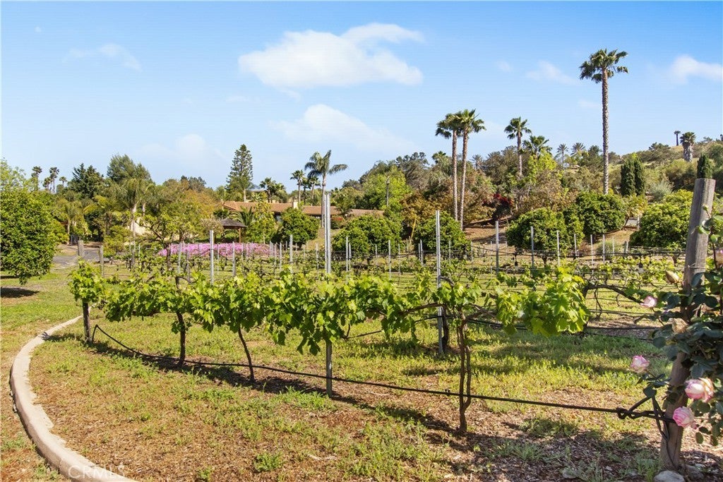 Price Improvement!! Welcome to 6731 Via De La Reina, an extraordinary SINGLE STORY estate nestled in the prestigious Hialeah Estates—an exclusive equestrian friendly community where refined living meets the timeless charm of country serenity. This custom-built home harmoniously blends upscale rural living with sweeping views, offering a lifestyle of unparalleled tranquility and natural beauty. Spanning 4,140 square feet, this residence boasts 4 spacious bedrooms and 3 elegantly appointed bathrooms on the main floor. The gourmet kitchen is a chef's delight, featuring stainless steel appliances, a double oven, ample cabinetry, and generous countertop space perfect for meal prep and entertaining. The formal living room and cozy den offer plenty of space for relaxing and entertaining, featuring soaring ceilings, exposed beams, and an abundance of natural light that accentuates the home's exquisite craftsmanship. The home’s well-defined spaces make it an ideal fit for anyone seeking room to spread out or for Multi-Generational living. With separate wings offering privacy and flexibility, there’s plenty of room for in-laws, adult kids, a caregiver, or long-term guests. Everyone can enjoy their own space while staying under one roof. The fully finished basement is accessible from the living room and includes a bedroom/office, living room, dining area, full bathroom, laundry, and plenty of space for a future kitchen (This would make a perfect Junior ADU, buyer to verify possibility with the county) Set on meticulously landscaped grounds, the property features a family orchard with producing avocado, peach, fig, lemon, orange, lime, pomegranate, and mango trees. The 110-vine family vineyard adds to the estate's charm and is equipped with a drip irrigation system. A high producing WELL, installed in 2023, ensures sustainable water supply for the property. Additional amenities include PAID SOLAR, HORSE FRIENDLY property, finished basement with its own separate entrance and driveway, RV parking with a 30-amp plug, and a high producing WELL. This residence offers a rare opportunity to own a piece of paradise in one of Bonsall's most coveted communities