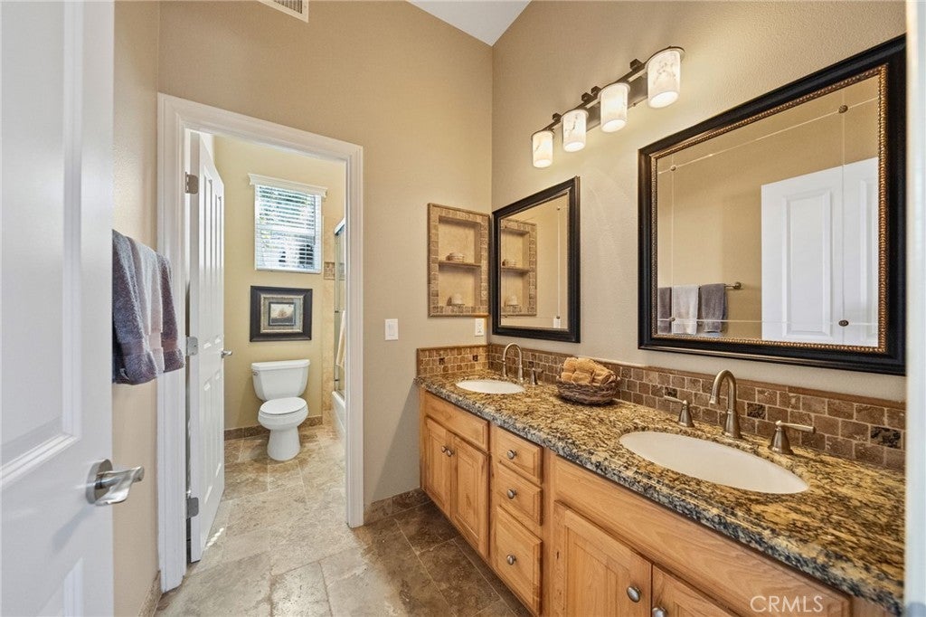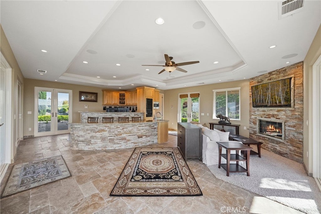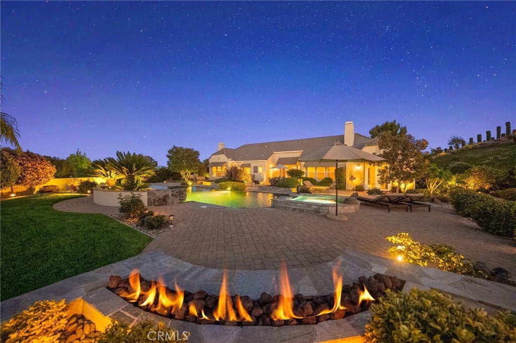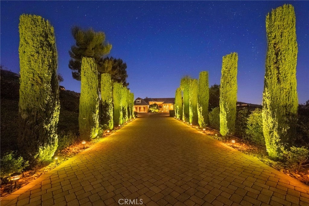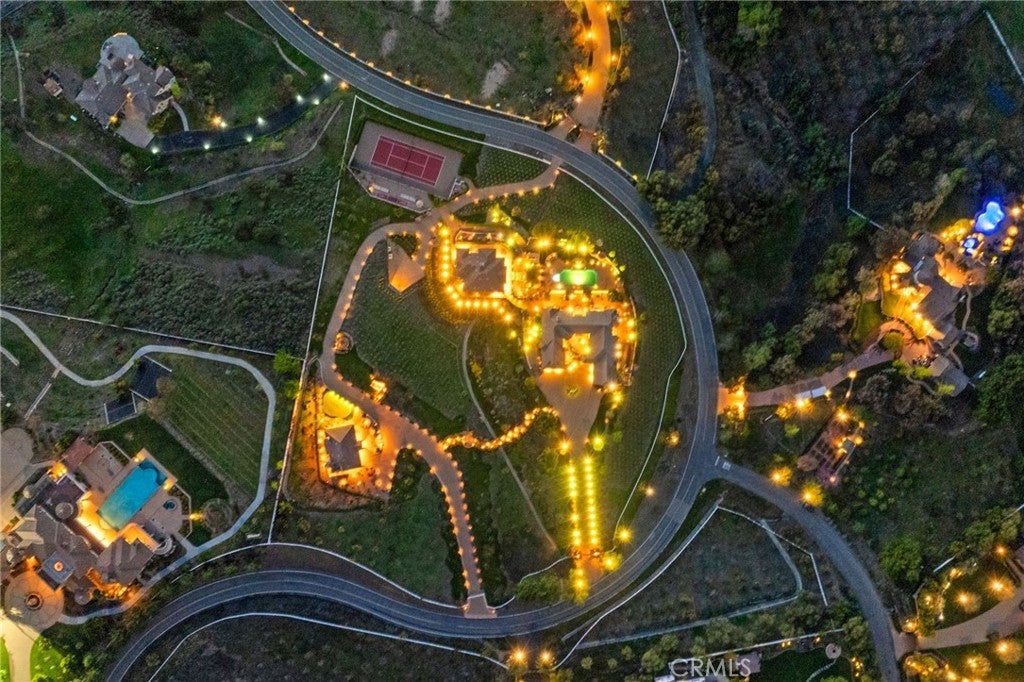 One-of-a-kind estate located just 5 minutes from the charm & culture of Old Town Temecula. Set behind 3 private gated entrances, this sprawling 4.19 acre compound features 3 separate single-story residences & an underground wine cellar all totaling approx. 6100 sq ft, masterfully positioned to capture breathtaking sunset views across rolling hills. The grounds truly set this estate apart; meticulously manicured landscapes framed by stately Italian cypress trees create an outdoor setting unlike any other. A dramatic stone stairway leads from the main home to the elevated studio residence. Entertain w/ ease and elegance w/resort style amenities; sparkling pool, two separate spas, water features, outdoor fireplaces, 2 putting greens, a sports court, & a post-tensioned tennis court w/ breathtaking views. Plus 2 built-in BBQ islands & pizza oven. Approx. 30,000 sq ft of stone pavers weave through the property. The main residence is approx. 3,275 sq ft w/ travertine flooring & architectural arches. It features 3 bedrooms, office, & 3.5 baths. The gourmet kitchen complete with granite countertops, 2 sinks, stainless steel appliances, built-in refrigerator, walk-in pantry, wine fridge, butler's pantry, & bar seating-all flowing seamlessly into the family room w/ views of the pool & gardens. The primary suite offers a private retreat w/ its own fireplace & French doors leading to the amazing pool & spa. The guest house offers approx. 1,600 sq ft of luxury living w/ 2 bdrms, 2 baths, a chef’s kitchen, & fully retractable glass doors opening to commanding views of the surrounding countryside. At the estate's highest point, the studio offers approx. 600 sq ft of open-concept living, complete with an elevated desk area, curved wine bar, a built-in spa, putting green, rooftop lounge, ATV-sized garage, & unmatched panoramic vistas. A 600 sq ft stand-alone reinforced concrete wine cellar is the perfect sanctuary for wine-making enthusiasts - complemented by approx. 1,000 wine grapevines and 21 table grapevines, as well as approx. 100 avocado trees, and various fruit trees. Additional features include upgraded mahogany garage doors, extensive landscape lighting, whole house & outdoor sound systems, multiple whole-house fans for year-round comfort, & a comprehensive security system. Perfect for a multigenerational compound, vineyard retreat, or entertainer's paradise, this Temecula estate redefines California luxury living with a setting that must be seen to be believed.