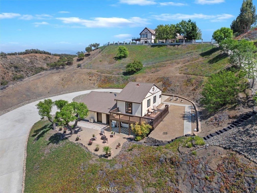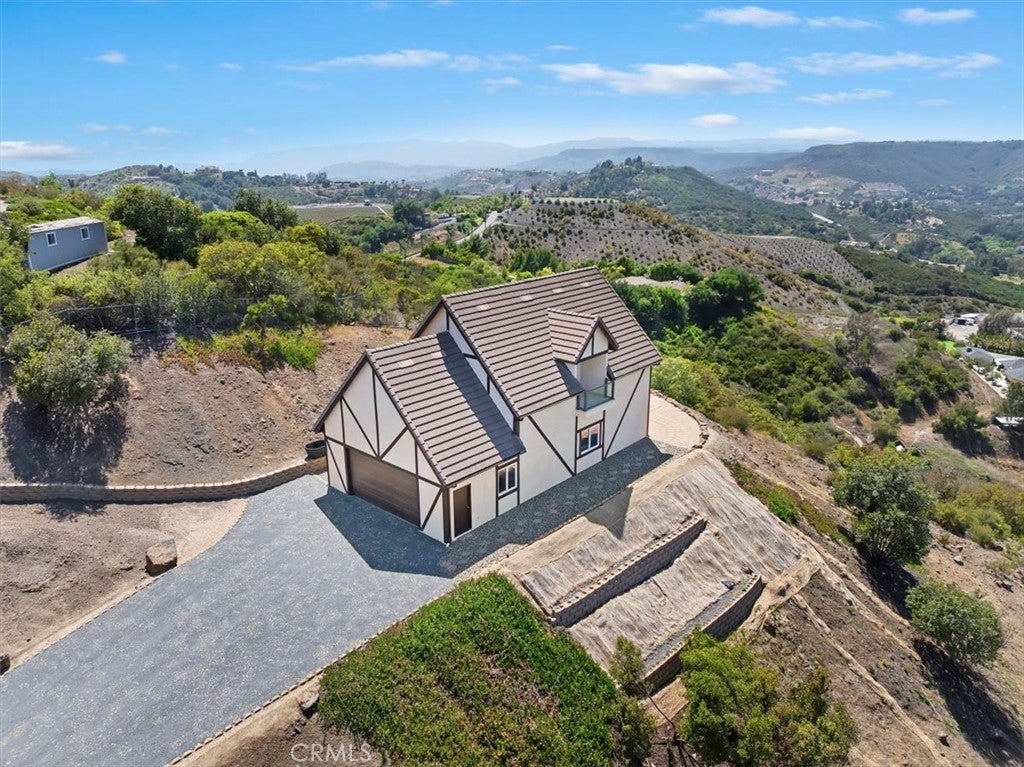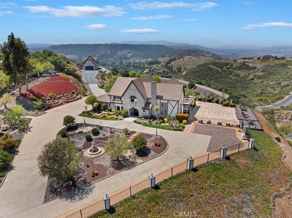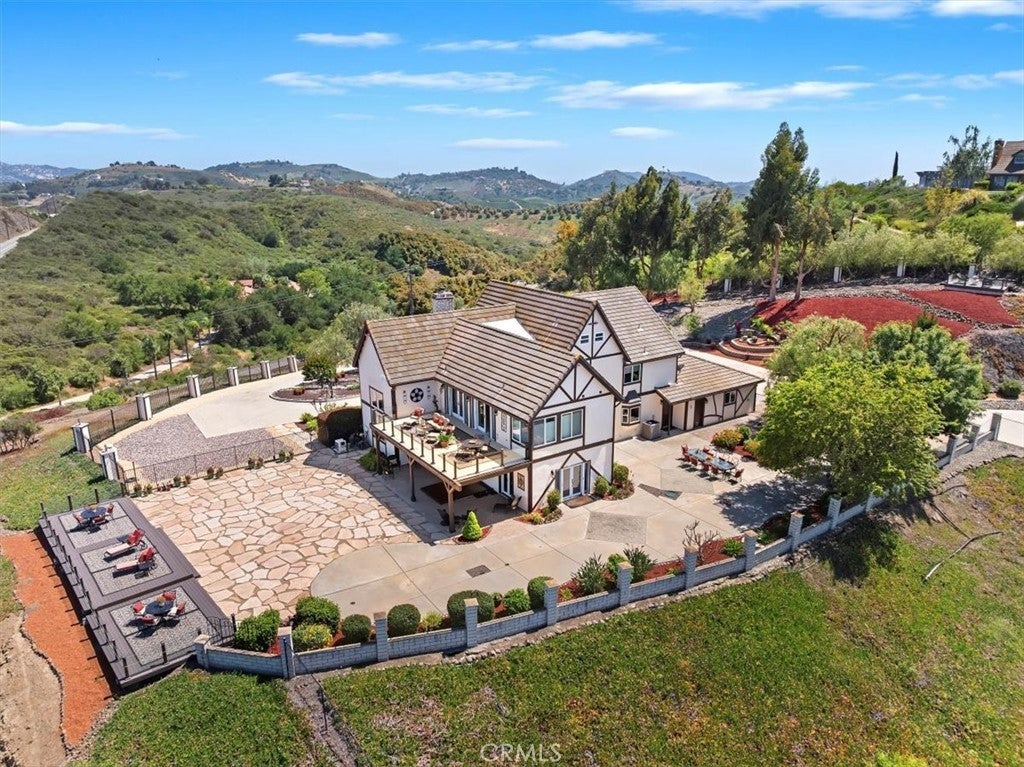 NEW PRICE! $2,499,000-$2,599,000. Nestled in the hills of De Luz, ONLY 4 minutes to Old Town Temecula & freeway. STUNNING 3-RESIDENCE COMPOUND has a combined approximately 5,515 SF LIVING AREA between main home & two separate units + 2,800 SF pre-wired, 2-level DETACHED WORKSHOP / GARAGE offering enormous POTENTIAL AS A THIRD ADU OR LUXURY GUEST HOUSE, with private balcony, patio & scenic views from every angle (a combined total of 8,300+ SF potential living areas). This rare property includes TWO INCOME-PRODUCING UNITS with a 2-bedroom 800 SF BASEMENT APARTMENT with private entrance, 2-car 700+ SF Garage, Kitchenette & covered patio plus a separate 465 SF STUDIO WITH PRIVATE DECK, new flooring & mini-split A/C. Both units are ideal for guests, rentals, or multigenerational living. INVESTORS – SHORT TERM RENTALS ARE ALSO ALLOWED FOR ADDITIONAL RENTAL INCOME POTENTIAL and NO HOA! Separate Garages can hold a total of 9 cars. Fully fenced, dual-gated 5.07 acres offers unmatched privacy, PANORAMIC VIEWS & exceptional versatility. Main grand English Tudor residence spans 4,250 SF with 4 bedrooms, 3 baths, beautiful hardwood and tile flooring, 7” base, crown moulding & high-end finishes throughout. Formal Living Room features 20’ ceilings, stack-stone fireplace, and elegant Kitchen boasts granite counters, stainless appliances, large island & French doors opening to a private patio with SWEEPING CITY AND MOUNTAIN VIEWS. Oversized Primary Suite includes dual French doors to private deck with PANORAMIC VIEWS, a spa-like Bath includes soaking tub & quartz vanities, large travertine shower + custom, walk-in closet with built-ins. Additional features include a Formal Dining Room, Family Room with 3 sets of dual French doors out to private PANORAMIC VIEWING patios and decks, a built-in bar and in-ground hot tub—perfect for relaxing under the stars. Outdoors, enjoy beautifully landscaped grounds, fruit trees (orange, avocado, fig, lemon, lime, tangerine), copper-awning Entry, circular drive, RV parking with electric hookup, and fire safety features include 2 hydrants and fire break. WINDING STONE AND PAVER WALKING PATHS connect multiple private seating and dining areas, each designed to maximize the breathtaking views across Temecula Valley and beyond. This magnificent Estate offers the ultimate combination of space, flexibility, and luxury living in Southern California. Just minutes to Old Town Temecula, Wine Country, restaurants, golf, Pechanga, shopping and freeway.