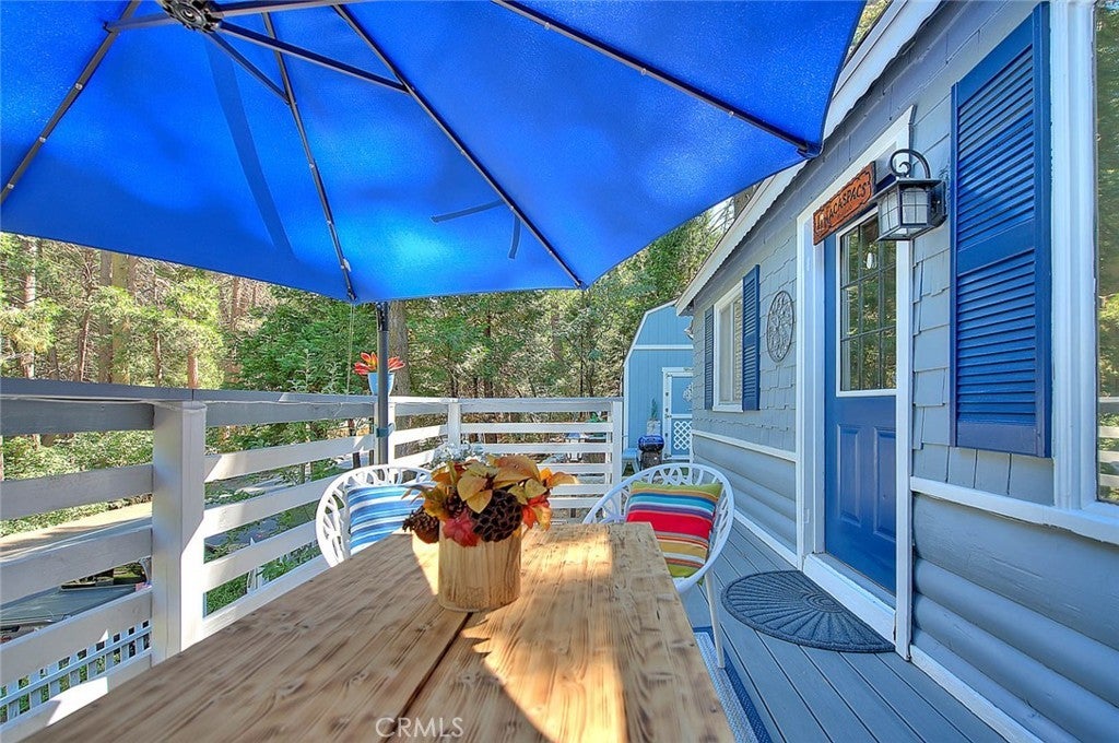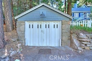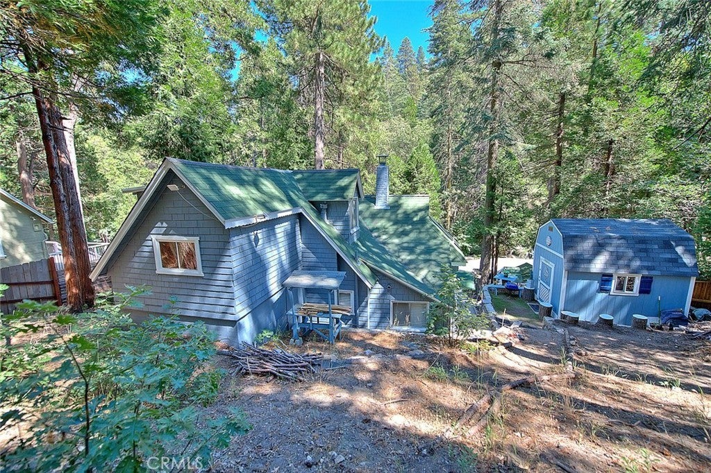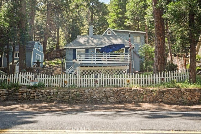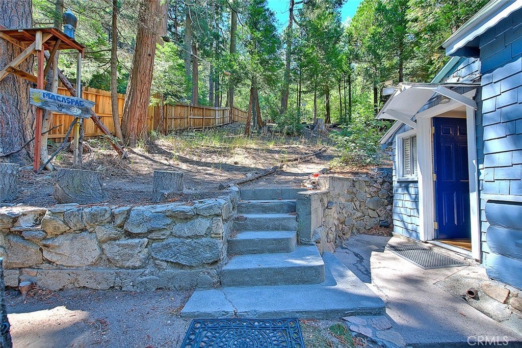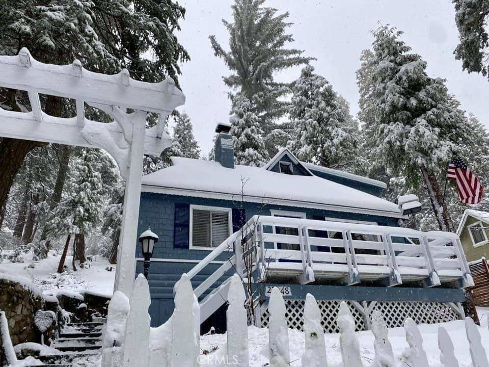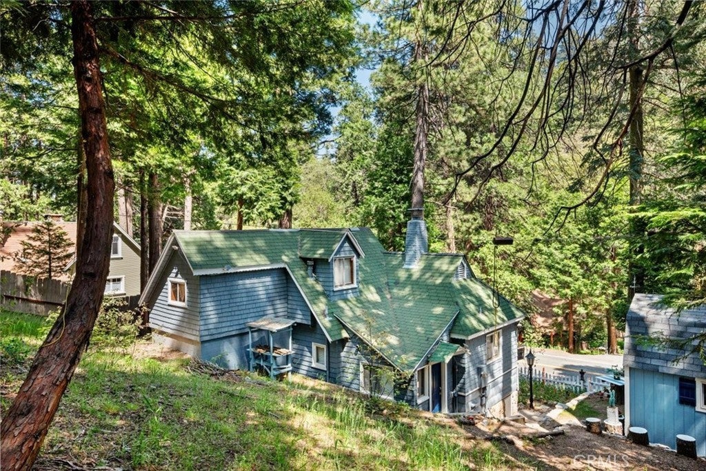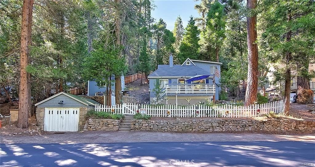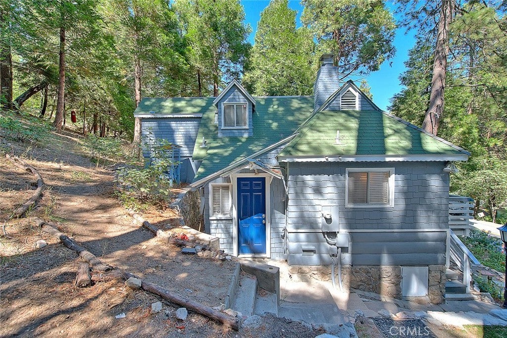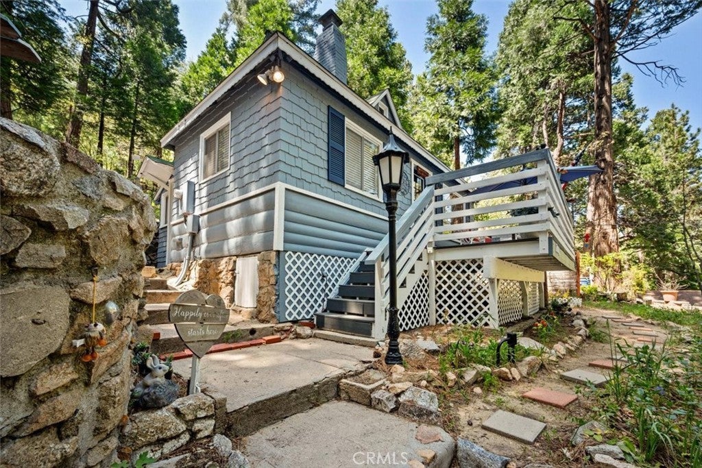 NEW PRICING Own a piece of Blue Jay/Lake Arrowhead history. This 1923 built vintage cabin embodies its original charm, and features unique upgrades! Sitting on a quarter acre lot that backs up to acres of protected forest, you will experience what the Arrowhead area offered when it first began. This three bedroom cabin features an updated kitchen with Bosch dishwasher, updated full bath including the original bath tub, along with updated plumbing, and updated electrical, refurbished 1923 stone fireplace and original refinished hardwood floors. The downstairs bedroom was expanded and now accommodates a a triple bunk bed and a single bed. The other two bedrooms are upstairs. New blinds, freshly painted inside and out about two years ago with replaced light fixtures from the past to continue the history of this loved cabin. Added corner cabinets for charm and storage. Detached original single car, deep garage with stone walls makes a great storage area! New Trex patio on front with umbrella solar lights and firepit to extend your outdoor living space. The outdoor space is home to age old cedar and pine trees and local blue jay birds. Also, less than a quarter of a mile from the restaurants and shops of Blue Jay! You can walk to the village, just 12 cabins away and only a half a mile walk to the lake as well. This property backs up hundreds of acres with hiking trails. The plateau on the side of the cabin has a new guest house to accommodate 3 more guest or use as a large shed for even more storage if so desired. Maybe a great Air B & B? This comes fully furnished as shown. Street side parking for 3-4 cars.