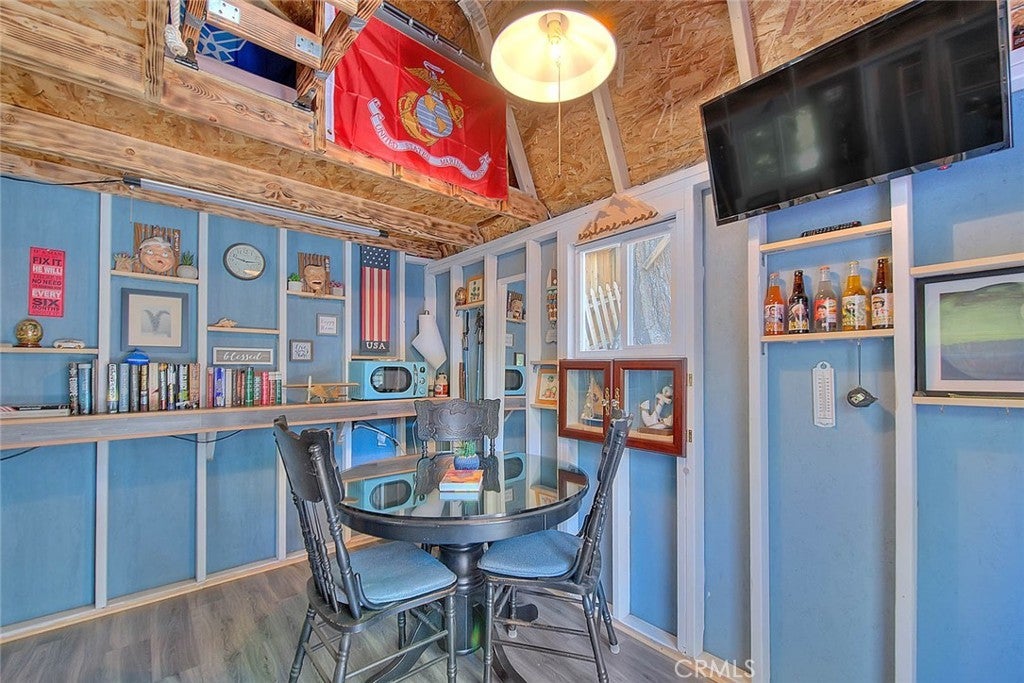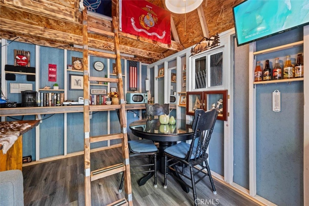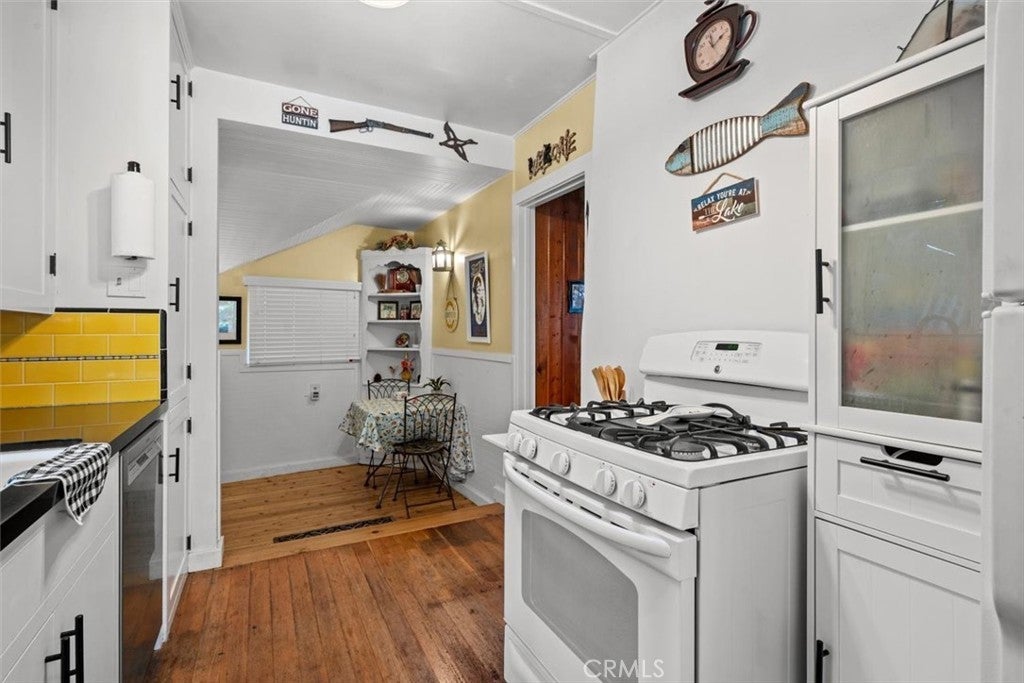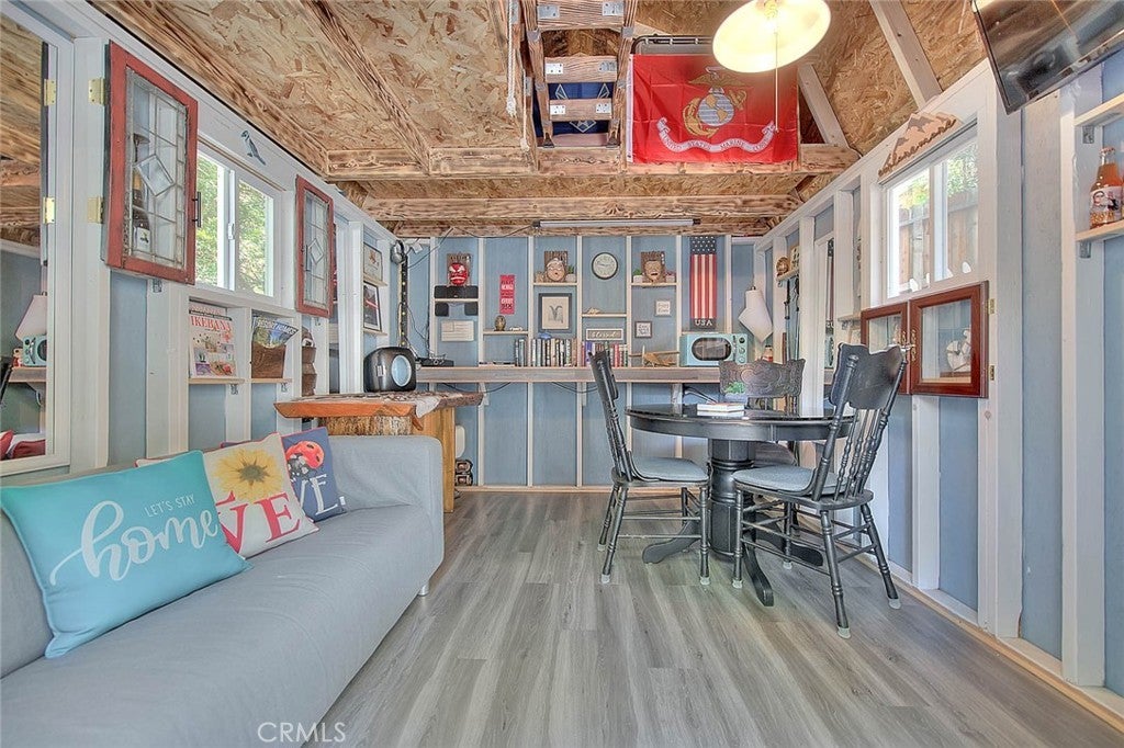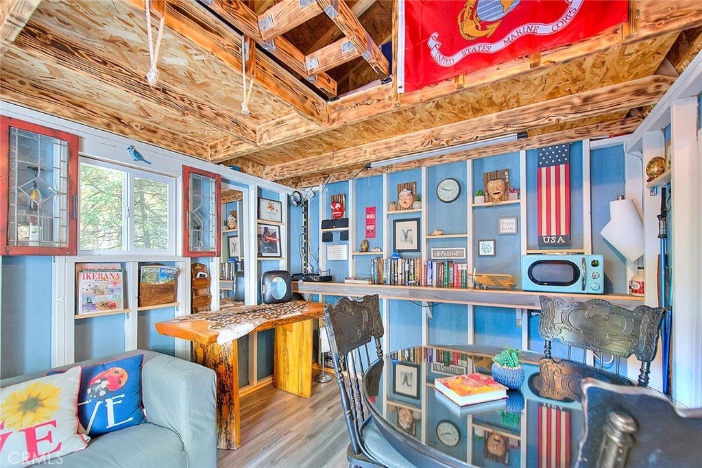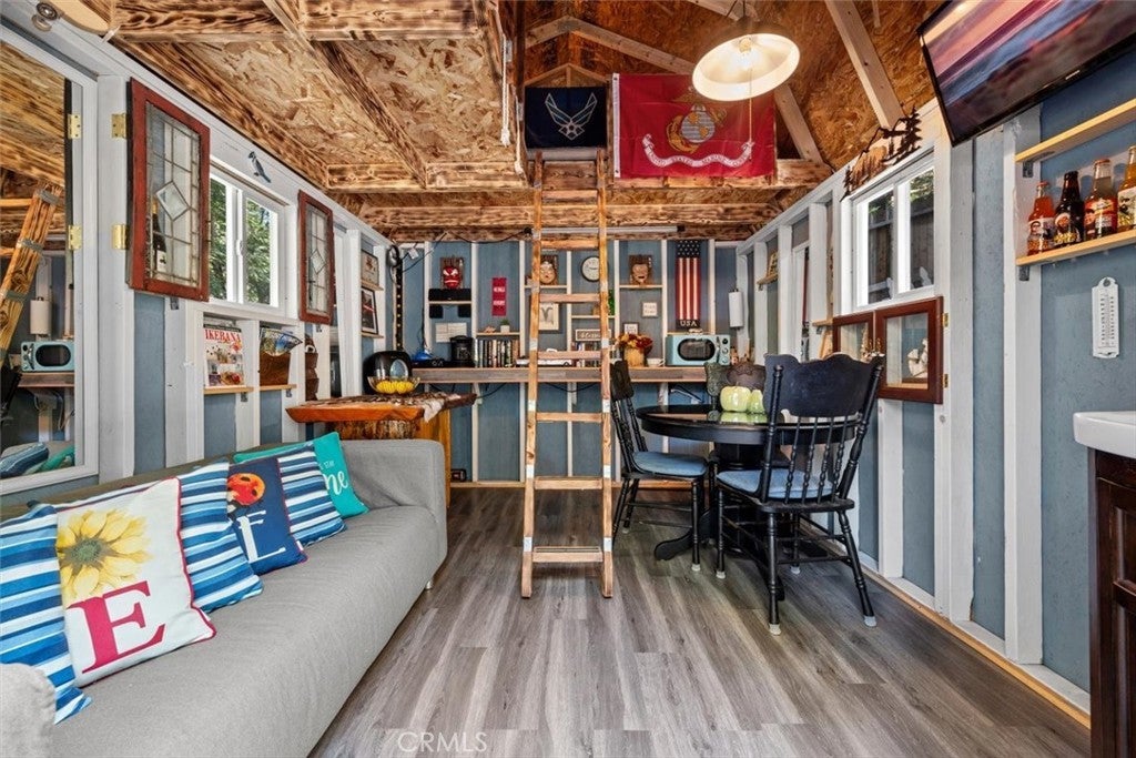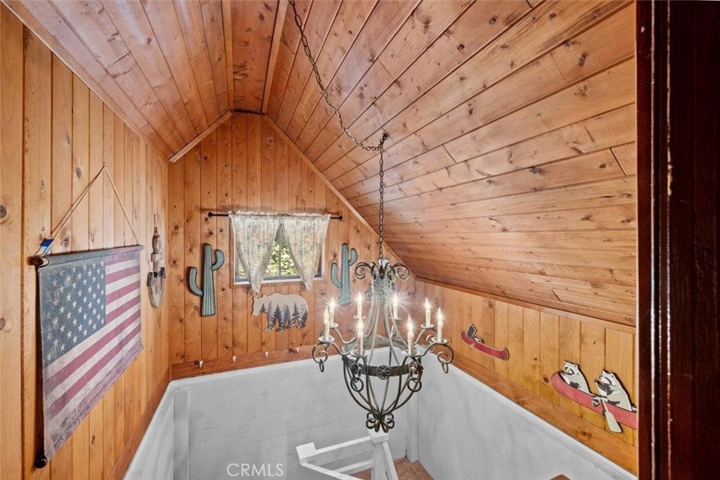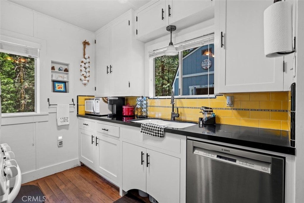 NEW PRICING Own a piece of Blue Jay/Lake Arrowhead history. This 1923 built vintage cabin embodies its original charm, and features unique upgrades! Sitting on a quarter acre lot that backs up to acres of protected forest, you will experience what the Arrowhead area offered when it first began. This three bedroom cabin features an updated kitchen with Bosch dishwasher, updated full bath including the original bath tub, along with updated plumbing, and updated electrical, refurbished 1923 stone fireplace and original refinished hardwood floors. The downstairs bedroom was expanded and now accommodates a a triple bunk bed and a single bed. The other two bedrooms are upstairs. New blinds, freshly painted inside and out about two years ago with replaced light fixtures from the past to continue the history of this loved cabin. Added corner cabinets for charm and storage. Detached original single car, deep garage with stone walls makes a great storage area! New Trex patio on front with umbrella solar lights and firepit to extend your outdoor living space. The outdoor space is home to age old cedar and pine trees and local blue jay birds. Also, less than a quarter of a mile from the restaurants and shops of Blue Jay! You can walk to the village, just 12 cabins away and only a half a mile walk to the lake as well. This property backs up hundreds of acres with hiking trails. The plateau on the side of the cabin has a new guest house to accommodate 3 more guest or use as a large shed for even more storage if so desired. Maybe a great Air B & B? This comes fully furnished as shown. Street side parking for 3-4 cars.
