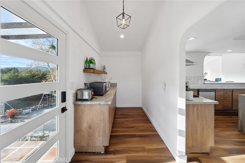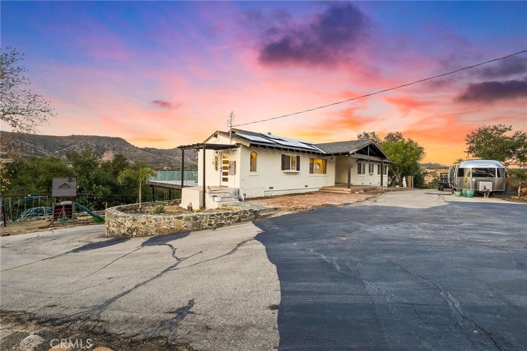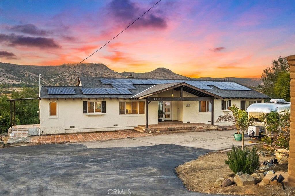 SHORT SALE OPPORTUNITY! TRANQUIL SECLUDED LIVING! This home offers unlimited potential and just needs a little TLC. Find a running creek, greenhouses, a waterfall, and coastal oaks! This property has OWNED SOLAR, a NEW ROOF, a bonus room, an office & so much more!! This stunning estate offers privacy, breathtaking panoramic views, and modern upgrades designed for effortless living. Thoughtfully updated, but still needing a few finishing touches, this home blends natural beauty with contemporary comfort—complete with owned solar, a brand-new roof, and a fully remodeled chef’s kitchen. Step inside to discover high-end finishes, including custom doors, flooring, and frosted glass closet doors in the primary suite. The heart of the home is the gourmet kitchen, featuring quartz waterfall countertops, modern soft-close cabinetry, a Wolf 6-burner range, subway tile backsplash, and a full-sized wine/beverage fridge. A butler’s pantry with extended quartz counters and additional storage enhances the space, making it ideal for entertaining. The sunken family room offers a cozy retreat, complete with a window seat showcasing breathtaking views—perfect for morning coffee or stargazing at night. Just off the kitchen, another spacious family room invites you to unwind by the wood-burning fireplace, with wall-to-wall windows that frame the picturesque landscape of De Luz. Step onto the expansive balcony, where the soothing sound of the year-round creek and the sight of majestic hawks soaring overhead create a truly tranquil setting. A finished basement opens to the back of the home, offering endless possibilities. This space includes a large bonus room with patio access, a full bathroom, an office, a laundry room, and storage room, plus access to the garage. Beyond the home, the property features four greenhouses, a Gorilla play structure, a Tesla Universal charger, and a well with four 2,000-gallon water tanks (the home is on city water, the well is for the grounds). The landscape is dotted with mature sycamore and coastal oak trees, along with fruit-bearing orange, persimmon, avocado, and grapefruit trees. Located within the Murrieta School District, this exceptional retreat is just minutes from Old Town Temecula, the 15 Frwy, shopping, dining, and Temecula’s renowned wineries. If you’ve been searching for privacy, beauty in a one-of-a-kind setting, plus a chance to finish an almost complete remodel. This is a short sale!