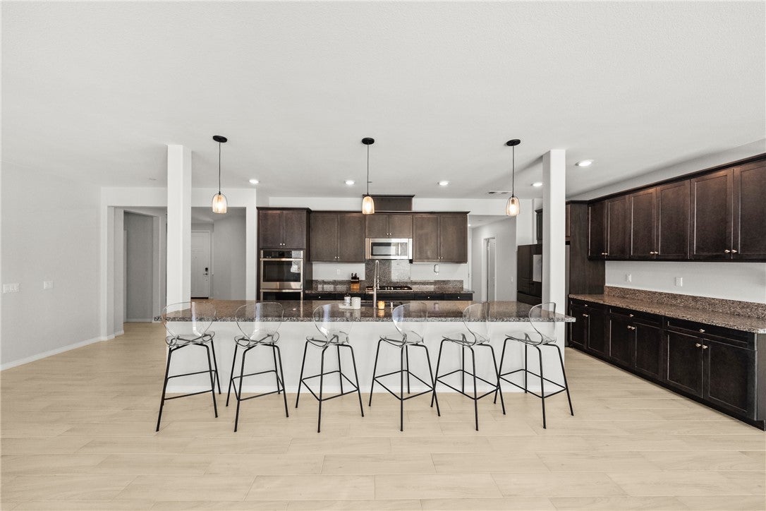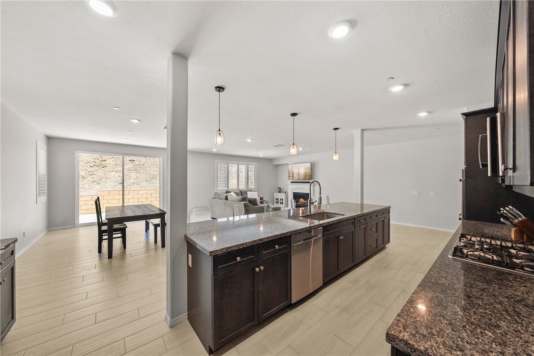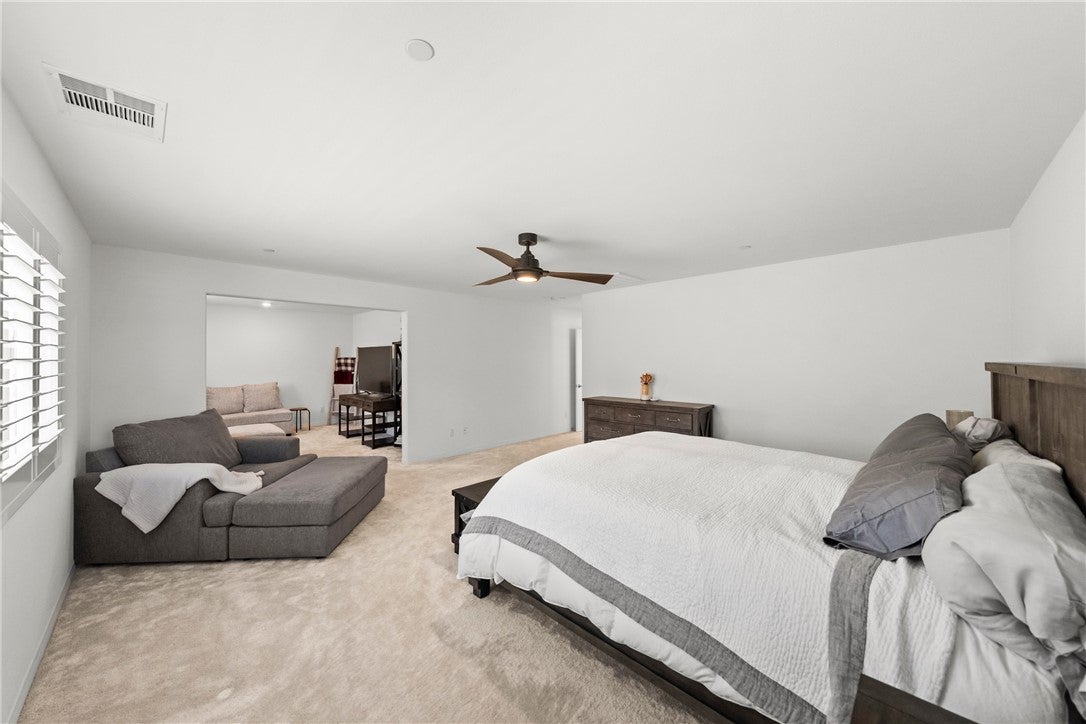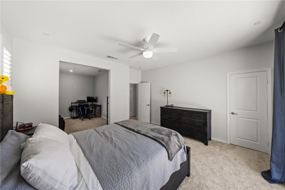 PRICE IMPROVEMENT! STUNNING EXECUTIVE LENNAR NEXT GEN/ADU home nestled in the rapidly growing area of Winchester, situated at the end of a serene cul-de-sac. The NEXT GEN/ADU has its own entrance with 1 bedroom/1 bath, PLUS an ATTACHED SUITE that could easily be turned into 2ND bedroom offering approximately 900 square feet of luxurious living space. With its own separate entrance and private yard, this ADU is PERFECT for generating rental income or accommodating aging parents, providing them with independence and comfort. As you step inside, you'll be greeted by a fully upgraded interior that exudes sophistication and style. The main level features AN ENORMOUS GREAT ROOM with elegant white porcelain tile flooring flowing seamlessly throughout the open-concept design. The kitchen is truly A CHEF'S dream, showcasing an OVERSIZED quartz island that is both MASSIVE AND inviting, making it ideal for casual dining BUT PERFECT FOR entertaining. The upgraded appliances will satisfy even the most discerning culinary enthusiasts, ensuring that meal preparation is a delight. A lovely FIREPLACE is placed perfectly in the corner and ads to the elegance of the GREAT room. The GREAT room ALSO INCLUDES a generous dining area ensuring you are ready to host large gatherings with family and friends. Upstairs, you’ll discover four generously sized bedrooms, complemented by a spacious LOFT/FAMILY ROOM area that can serve as a playroom, media room, or additional living space. The primary bedroom is at the left wing and is a TRUE RETREAT, featuring a LUXURIOUS ensuite bathroom WITH AN INCREDIBLE WALK IN CLOSET and a LARGE versatile suite that is perfect for a nursery, OR home office. Each bedroom is thoughtfully designed with plenty of natural light and comfort in mind. GUEST BATH UPSTAIRS FEATURES ONE BATHROOM with 2 SINK VANITY AND BOOK ENDS SEPARATE TOILET AND SHOWERS ON EACH SIDE! Upstairs laundry is PAST generous in size and offers plenty of cabinetry! Step out to your rear yard and imagine the hundreds of possibilities! Right back corner offers space for a pool while the flat area at top of slope offers incredible views and could easily accommodate a gazebo. NO upgrade has been spared in this exquisite home, ensuring that every detail meets the highest standards of modern living. Don’t miss your OPPORTUNITY to own this exceptional home in Winchester – where luxury, convenience, and comfort meet!* Home interior/exterior has been digitally staged to show potential*
