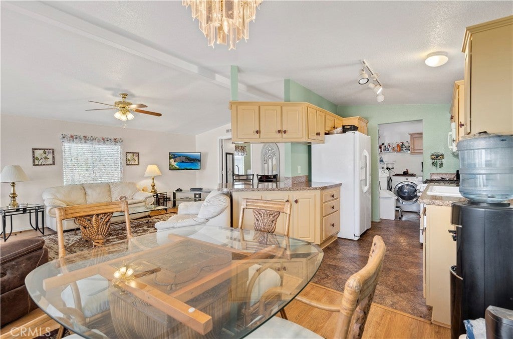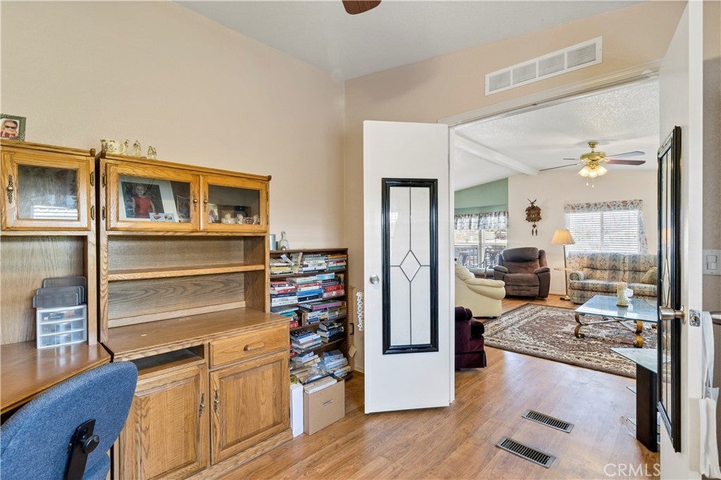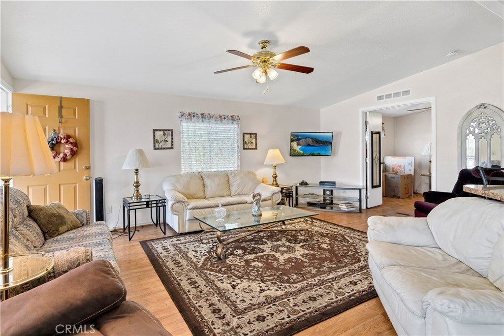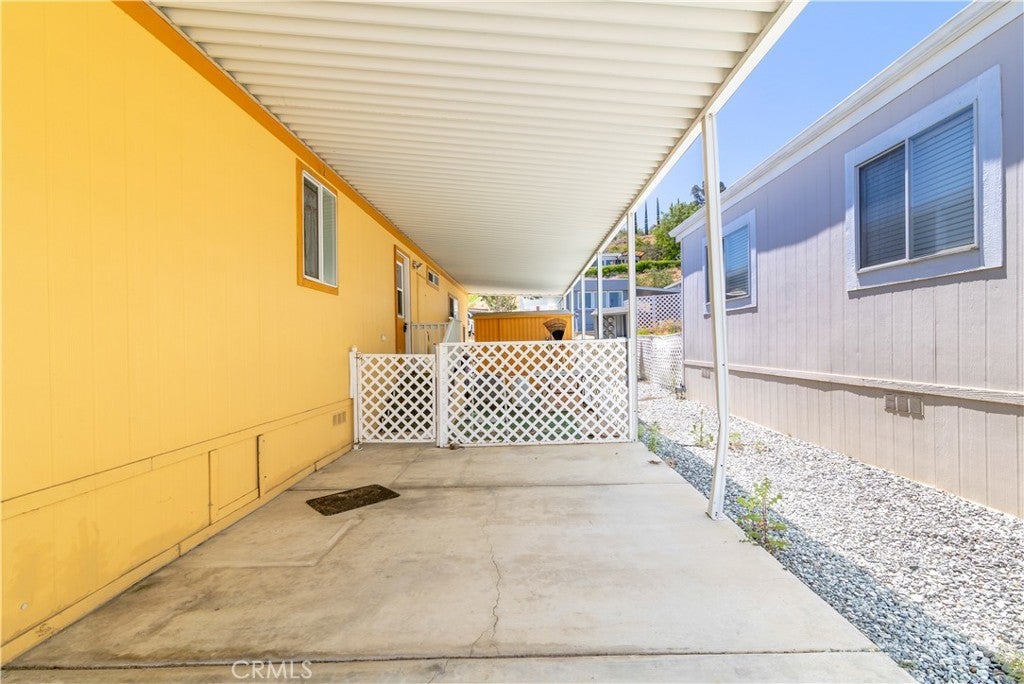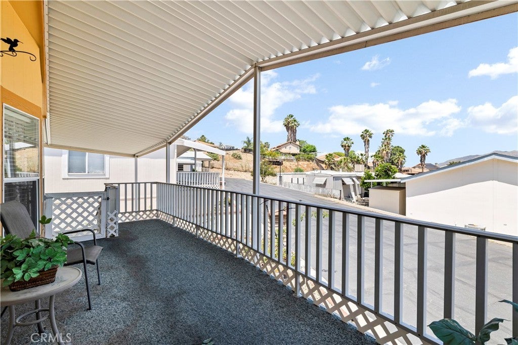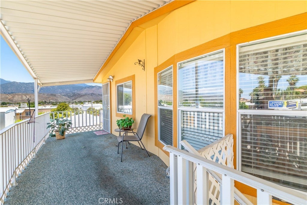Welcome to Fairview Park Mobile Homes Estates, a 55 plus community! When you first go up the few steps to the spacious porch you see the beauty of the mountains surrounding this home. Upon entry your greeted by a stunning open floor plan with, a generous sized living space and you gaze to your right you see granite counter tops on the kitchen counters and a delightful kitchen with lots of storage space, straight forward your in an office/den/guest room, then at the rear of the home is the guest bathroom right across from the guest bedroom and to the far back is the primary bedroom and spacious bathroom with even more storage. In the carport you'll a small patio that's fenced in with a storage shed and plenty of room to park your vehicle. Such great amenities in this park as well, there's a pool, hot tub, library, laundry facility, and storage units, plus an enormous club house with a fireplace and pool tables, as well the many events the park has throughout the year. Locally you're close to Soboba Casino and Event Center with lot's of entertainment, Idyllwild is just up the hill and has great food and fairs, along with 3 good sized lakes for camping or fishing, and the infamous Temecula Wine Country is very close by too!