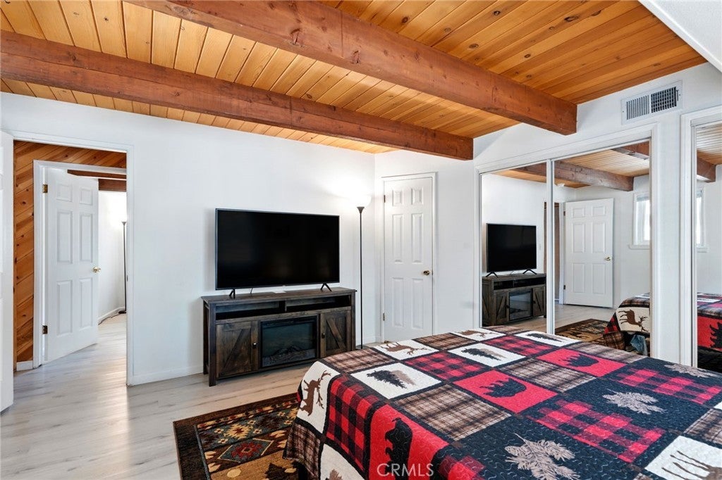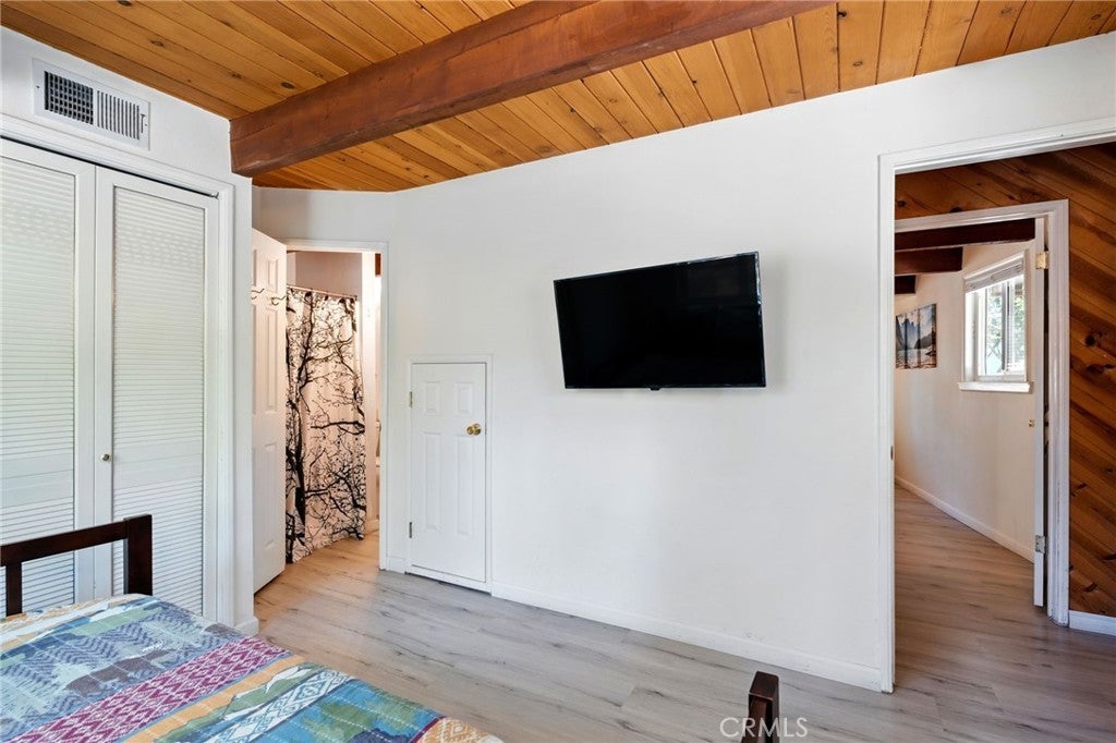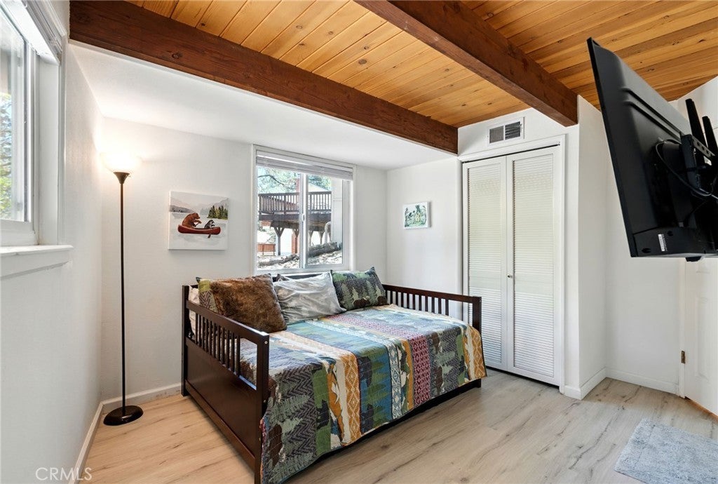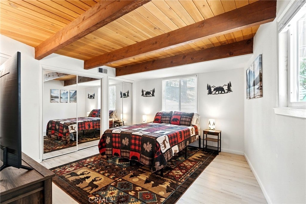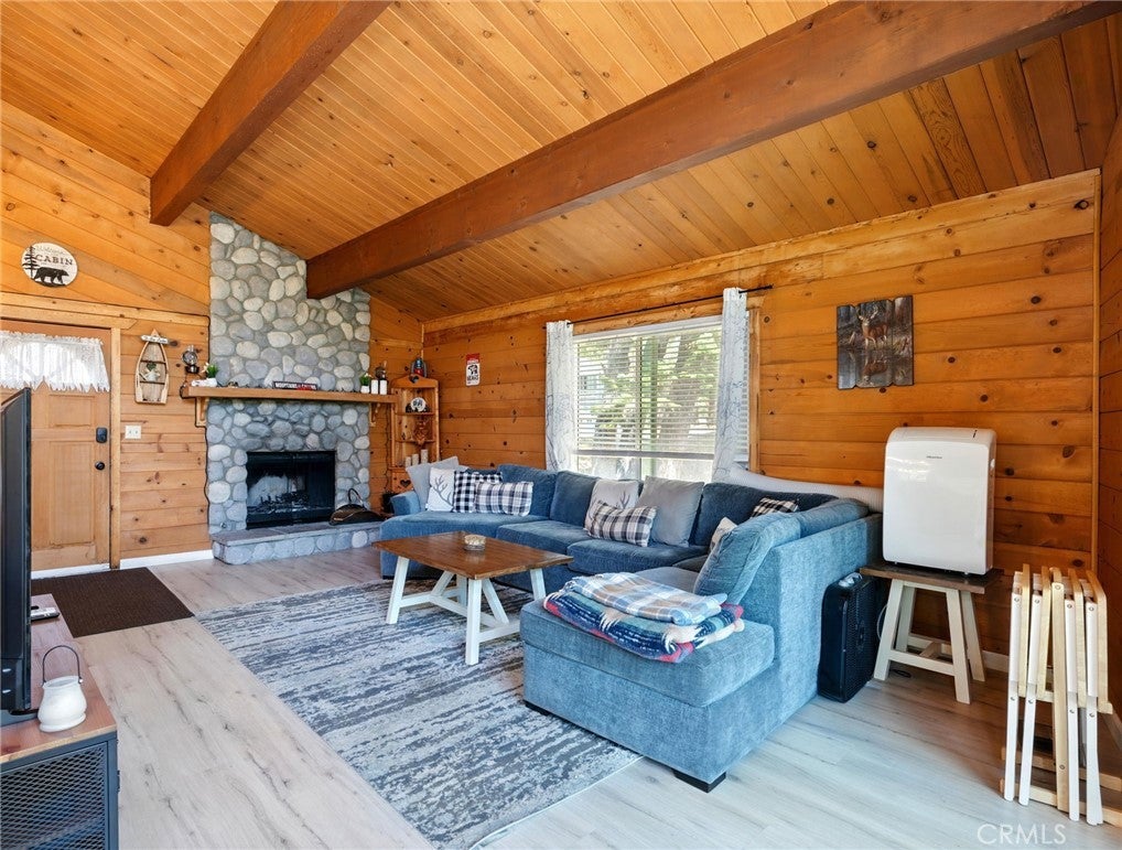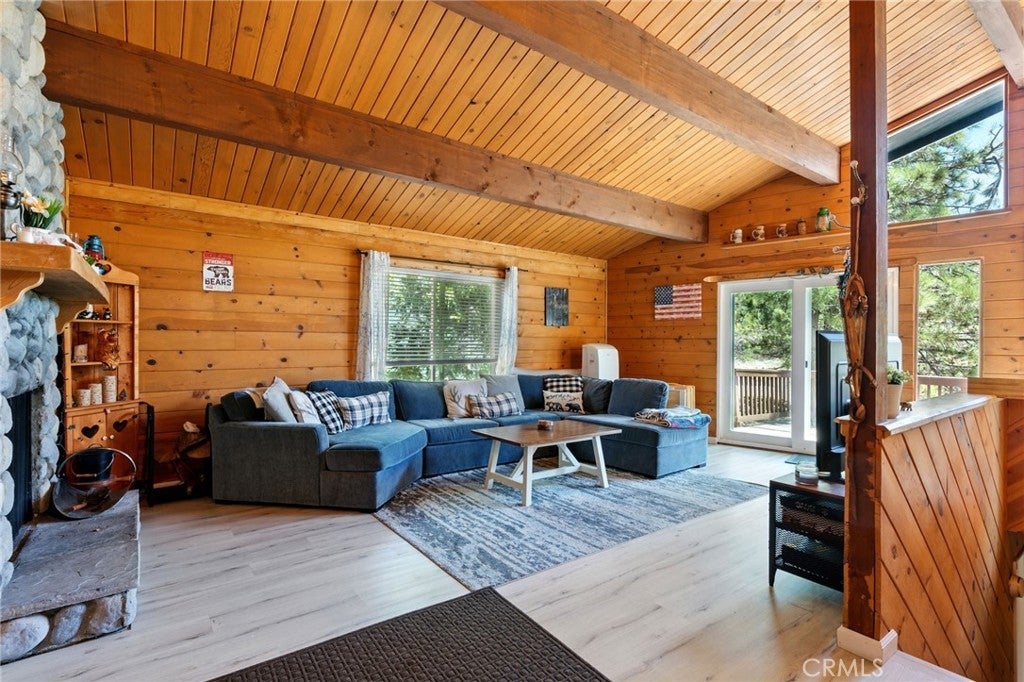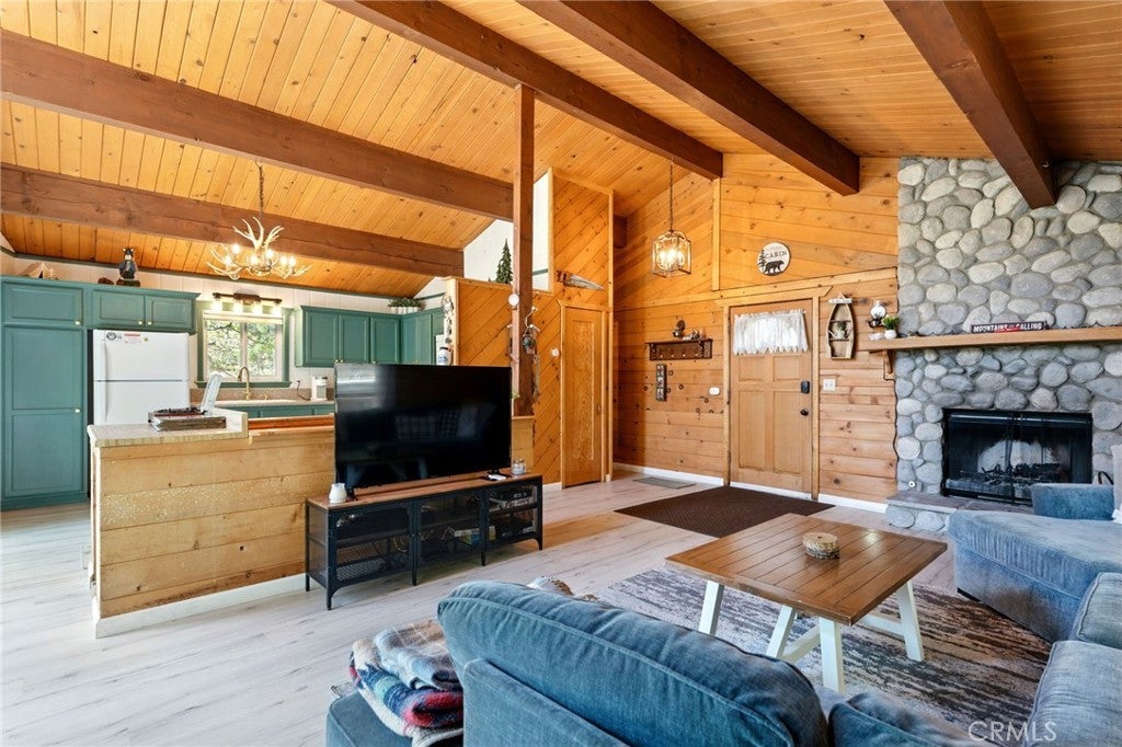 Welcome to your peaceful escape in the heart of Green Valley Lake! This beautifully updated 2-bedroom, 2-bathroom home offers 1,074 square feet of thoughtfully designed living space. With great curb appeal and features, this home is one you don’t want to miss. Situated with two parking spaces at the front, you will enter this home as you head toward the entryway with a small porch. As you step inside you will be greeted with a main-level open concept that flows seamlessly with a vaulted ceiling, wood paneling, LVP flooring, and tons of natural light from the surrounding windows. Within the main level, you have your living room area with a stone fireplace, a full bathroom in the corner, and your updated kitchen with ample storage and a convenient washer and dryer setup for everyday ease. From the main level, you can step outside to the expansive deck that is perfect for entertaining or enjoying the peaceful surroundings and views. Heading back inside, you can find your two bedrooms with a Jack & Jill bathroom, all within the lower level of the home. The bedrooms are of good size and each have their own closet. From the lower level, there is also another door that allows you to enter the backyard. This area is located under the deck and makes the perfect storage space for all your outdoor necessities. Some other notable features within include: dual pane windows with new blinds and newer interior & exterior paint. Whether you’re looking for a full-time residence or a weekend getaway with the ability to offer it as a short-term rental, this home has everything you need to enjoy the Green Valley Lake Community. Within the community, residents enjoy seasonal fishing, kayaking, and swimming in the designated beach area through summer; along with hiking, off-roading trails, and access to nearby ski resorts in winter. Whether you're looking for a weekend getaway or a full-time mountain home, this property offers the perfect blend of comfort, tranquility, and outdoor adventure. Come experience the beauty of Green Valley Lake and take the opportunity to call this home your own!