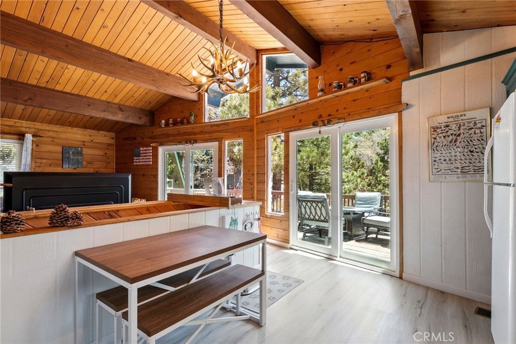 Beamed Ceilings, Eat-in Kitchen, Furnished, Granite Counters, High Ceilings, Living Room Deck Attached, Open Floorplan, Storage, All Bedrooms Down, Jack and Jill Bath