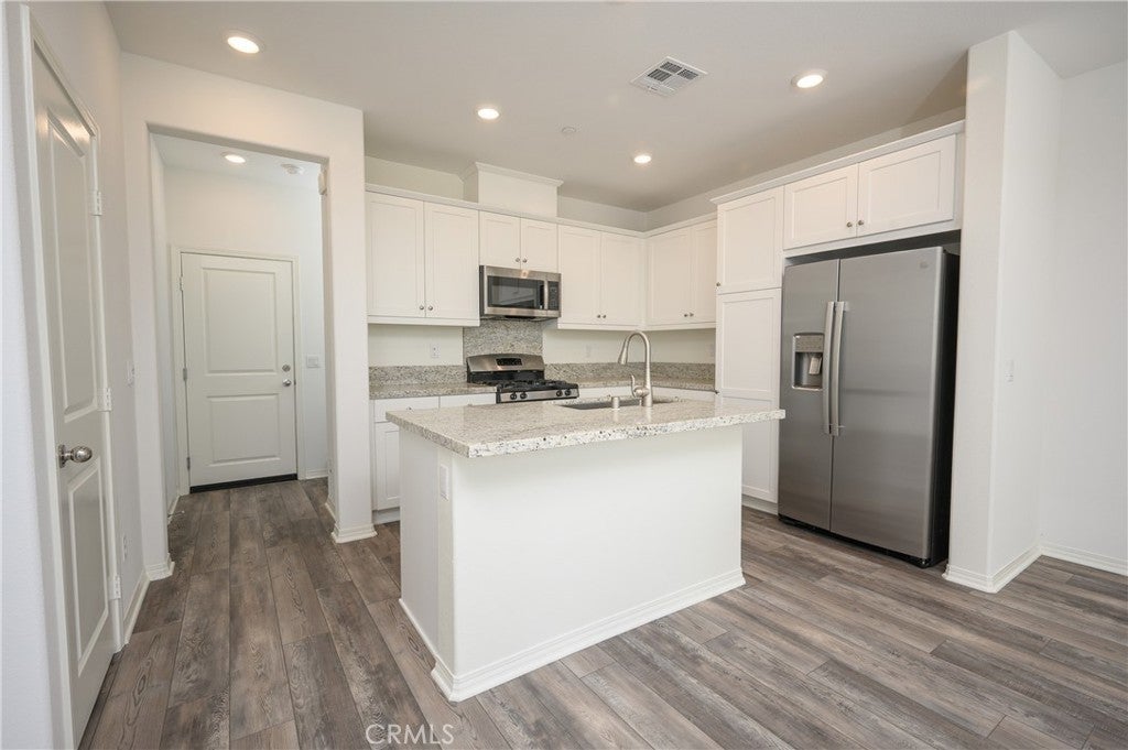 Sevilla View Home! VA Approved! Fast move in OK. This never-lived-in townhome features luxurious upgraded flooring throughout. The open-concept design on the first level seamlessly integrates the Great Room, kitchen, and dining area, creating a perfect space for entertaining or daily living. The modern kitchen boasts a spacious slab granite island, sleek counters, and crisp white cabinetry. Upstairs, you'll find all three bedrooms, including the elegant owner’s suite, offering a peaceful retreat. Enjoy your own private front concrete porch area, ideal for relaxing or greeting guests. The attached two-car garage provides ample storage and convenience. This home is ideally located just steps from the community’s Recreation Center, pool, and playground, making it perfect for both relaxation and recreation. Sevilla is a vibrant new community of condominiums in Winchester, CA, offering residents access to top-notch amenities like BBQs, outdoor dining areas, a sparkling pool and spa, a playground, and scenic walking trails. Explore the great outdoors with nearby Lake Skinner, or take a short drive to Temecula’s renowned wineries and the Temecula Promenade for shopping and dining. Within the Award Winning Temecula School District. A Must See!