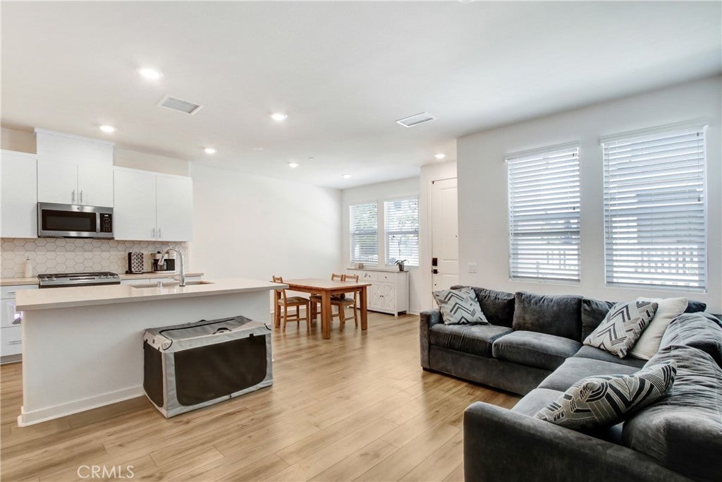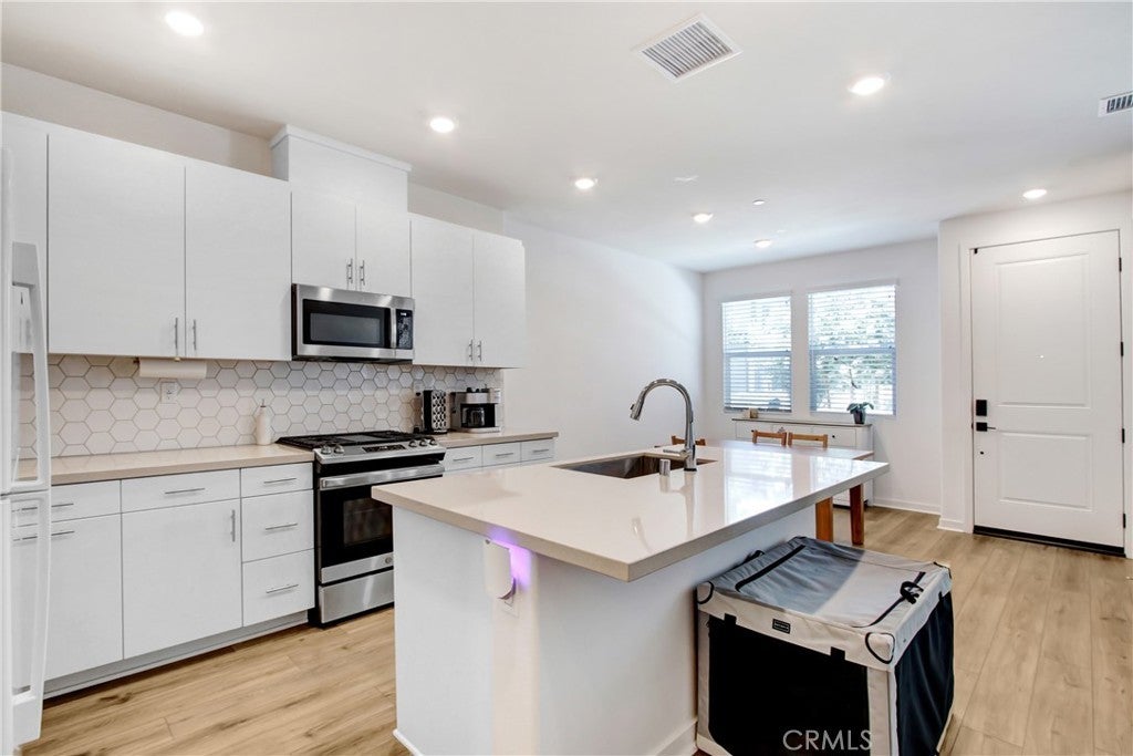 Welcome to this beautiful 3 bedroom, 2.5 bath Tri Pointe Homes Averly community in South Corona. Built in 2024, with just over 1400 sqft , this two story townhome has an attached two car garage and showcases a fenced outdoor patio space at the front entry. Inside enjoy upgraded appliances and counter tops within the open floor plan kitchen area. Great for entertaining or relaxing at the kitchen island. Upstairs you'll find 3 bedrooms and a stackable laundry area. The primary bedroom has a walk-in closet and private bathroom. Additional parking is right across the street. Other amenities include the newest lap and kiddie pools. Large grassy areas, BBQs, 2 dog parks, a dog wash and exercise facility to name just a few. Close proximity to the Bedford Marketplace with several dining/shopping/entertainment options. Close to the I-15 and 91 freeways.