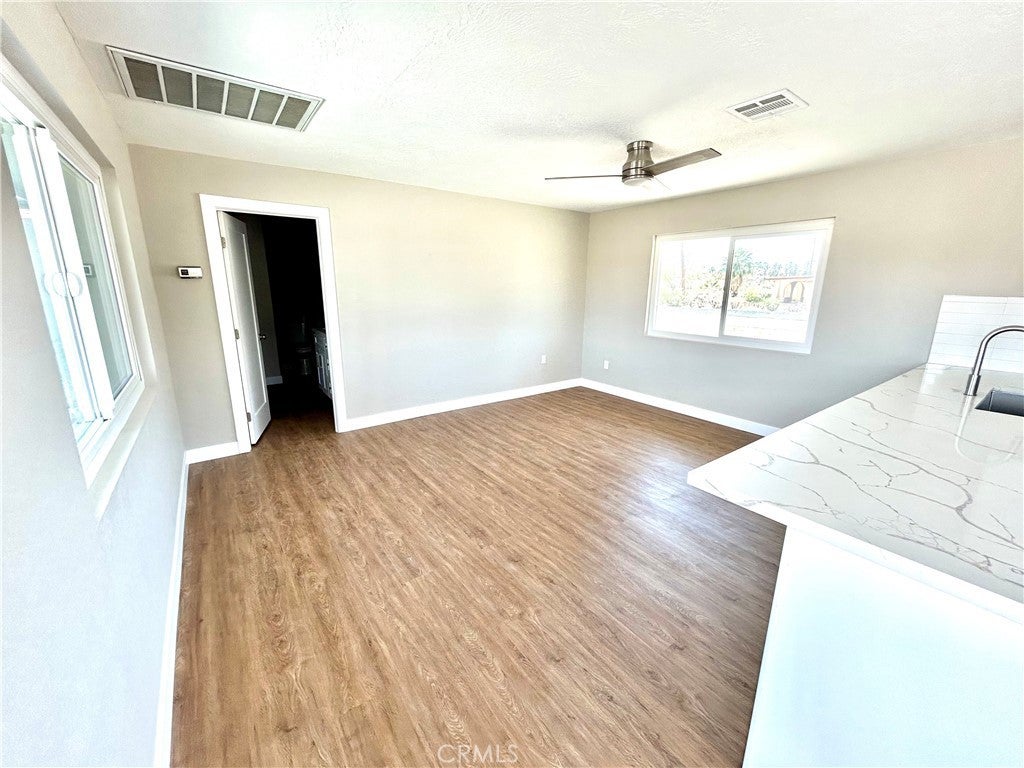 Welcome home to this beautiful property in Twentynine Palms. This fully remodel home features lvp flooring throughout the house. The kitchen is finished with white shaker cabinets, quartz counter tops, and stainless steel appliances. The main section of the house has a huge primary bedroom with a beautifully done walk in shower, 2 additional bedrooms, and 2 remodeled bathrooms. The living area is extremely open and is the perfect space for entertaining. There is an attached studio apartment with the same finishes as the main house for multigenerational living OR potential mortgage reducer. The backyard is a huge space with endless possibilities for your imagination to run wild. One thing you will definitely enjoy is the amazing pebble tech pool during the hot summer days and the spa during the cool winter nights. You will also enjoy the oversized 2 car detached garage with an additional full bathrooms hangout space. This property is less than 10 minutes from Joshua Tree National Park and from the military base for those that serve our country. Don’t miss this opportunity to make this house your home!