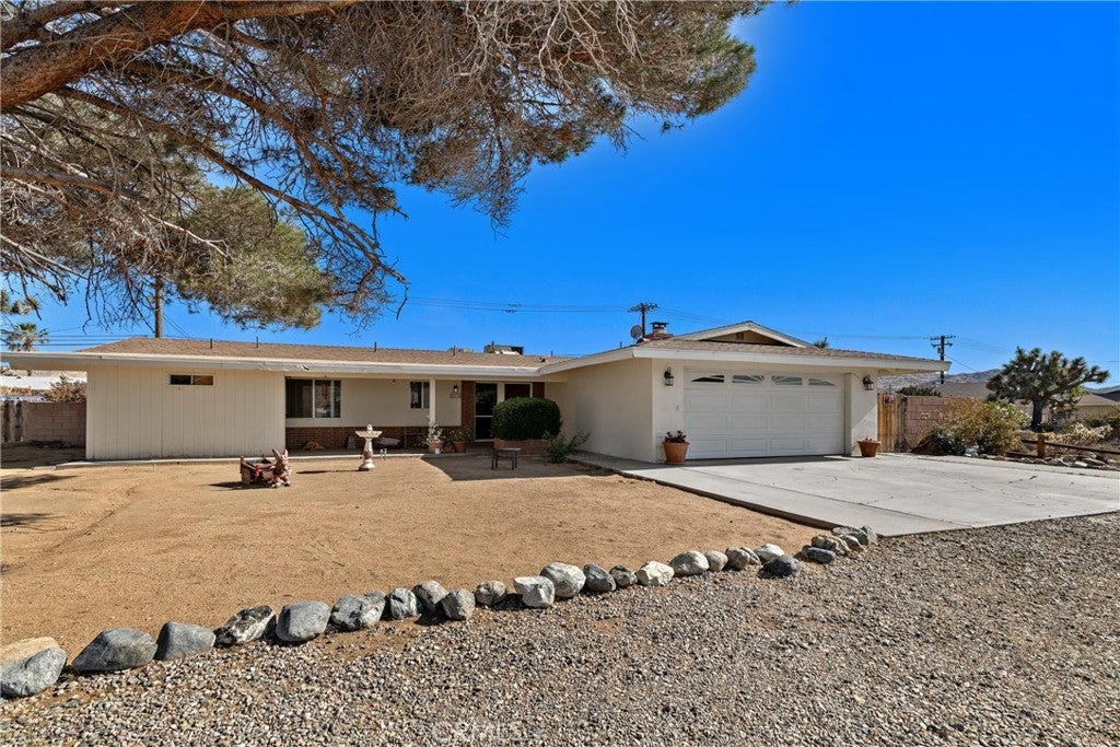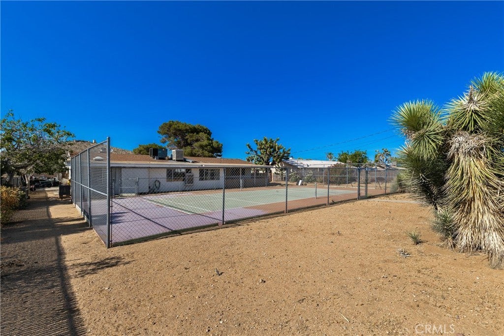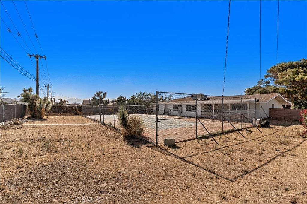 **PRICED BELOW MARKET VALUE FOR A HIGHLY MOTIVATED SELLER** Welcome to one of Yucca Valley’s most sought-after neighborhoods—Sky Harbor—where quiet streets, wide-open skies, and outdoor adventure come together. This 3-bedroom, 2-bath custom-built home offers the perfect blend of comfort, recreation, and potential. Set on a spacious .41-acre lot, this property is ideal for outdoor enthusiasts and active families. The full-size private tennis court is a standout feature—perfect for tennis, pickleball, or even a game of full-court basketball. There’s also plenty of concrete space for other activities and ample room to park your RV, boat, or desert toys. Relax and unwind under the shade of your covered front porch or back patio, both perfect for enjoying the desert breeze. Just a short walk down the street is Essig Park, featuring a playground and a small-dog park, while Black Rock Canyon and Joshua Tree National Park are only 2.5 miles away—offering endless hiking, camping, and exploration. Inside, a newly remodeled kitchen steals the show with updated cabinets, countertops, appliances, and a charming archway that leads into a versatile bonus room—ideal for a playroom, den, or home gym. The living room invites you in with a cozy fireplace and heated floors for chilly desert nights. A unique flex space with a sunken floor, separate entrance, and dedicated evaporative cooler gives you even more room to personalize—whether you envision a studio, office, or guest retreat. Down the hallway, you’ll find three comfortable bedrooms and two bathrooms, ready for your personal touch in flooring and color. Lovingly owned by just its second owner since 1973, this home is full of character, charm, and opportunity. Whether you're starting a family, looking for a weekend getaway, or planning your retirement retreat, this home is ready to welcome you. Come make it yours—and start creating memories that last a lifetime.