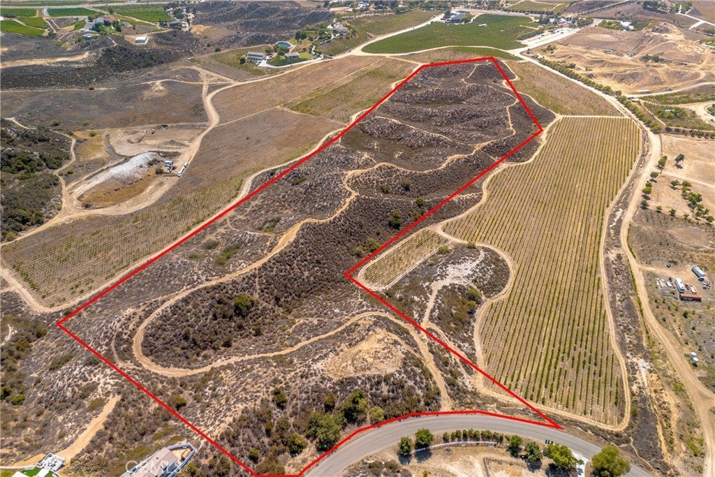 Located in Temecula Wine Country in the community of Glen Oak Hills with incrediable views over looking Leoness Vineyards. Welcome to over 27 acres of land and privacy to build your dream home. This property is one of the last large parcels left in Temecula. The views are breathtaking. Included with the sale of the land are grading plans ready to be submiitted to the HOA and the county. House plans are ready to be submitted to the HOA and county after HOA approves. House plan design is a Classy Modern design at 3582 square feet main house with 4 bedrooms each with a private bath and a powder room, Garage is 1183 square feet 4 car gargae. Main House pad design is .76 acres in design and guest house pad is .25 acres in design per the grading plan. The perk test has been done and the ERP/environmental map has been approved per current grading plans. This lot is approved for a 2nd unit, square feet for guest home can be up to 50% of the primary home at 1,791 sq ft guest home if kept with current home design/size. There are Pool plans that will convey with the sale and include - Site plan, renderings and engineering will be provided if/when the design is approved. (Full set of plans required for permit approval) Water and Power are at street by property. Check out supplements for the plans. This is a very special property. Seller has put in all the time consuming work ready for a buyer to get the benefit.