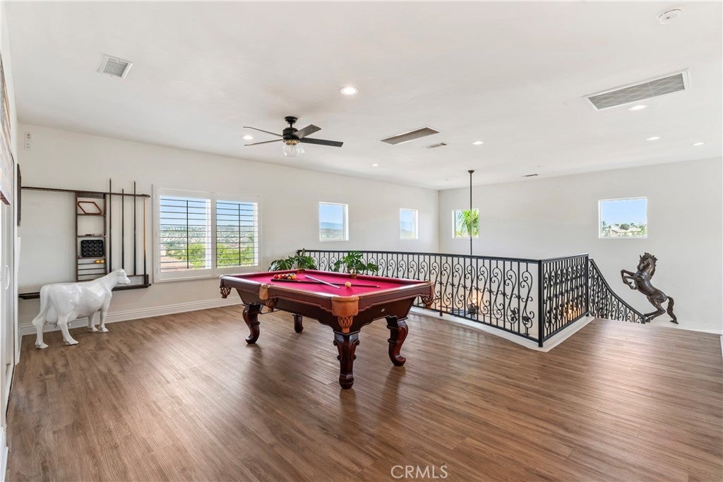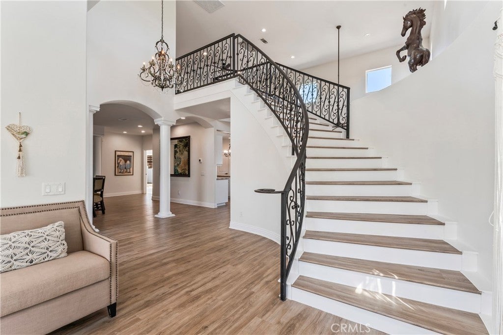 Stunning Lake View on a Quiet Cul-De-Sac with Modern Comfort and Timeless Elegance. Welcome to your dream home. Built in 2005 and meticulously maintained this exquisite lake view residence in a serene cul-de-sac combines luxury, functionality, and energy efficiency. With high-end upgrades and thoughtful design, this home is perfect for modern living and entertaining. KEY FEATURES: Inviting Entryway with Grand Double front Iron doors creates a striking first impression. Gourmet Kitchen features granite countertops, a spacious pantry, built-in Jenn Air refrigerator, and double ovens for culinary enthusiasts. Elegant Dining: Formal dining room adorned with a custom mural and Roman pillars for sophistication. Stylish Interiors: Stunning Iron staircase and durable luxury vinyl plank flooring throughout for a seamless blend of beauty and practicality. Climate Control: Brand-new dual heat pump system (installed 2024) and a Quiet Cool whole-house fan for year-round comfort. Outdoor Oasis: Sweeping front patio with lake views, cozy fireplace, and a space for outdoor TV. Private backyard with wood fencing, low-maintenance turf, and an electrical hook up for a hot tub, perfect for relaxation or entertaining. First-Floor Suite: Includes a full bathroom, walk-in closet, and outdoor access, ideal for guests or multi-generational living. Additional First Floor Amenities: Separate Guest bathroom for convenience. Upstairs Retreat: Versatile loft with a pool table and a large balcony, currently enclosed as a unique Aviary. Luxurious Master Suite with walk-in closet, expansive bathroom and a bonus room for an office or gym. Eco- Friendly Convenience: 61 solar panels for energy efficiency and reduced utility costs. Impeccable Garage: Two-car garage with high ceilings, epoxy flooring and a spacious storage attic for ample organization. Enhanced Curb Appeal: Elegant paver driveway adds durability and a polished look to the property. Freshly Updated Exterior: Newly painted in 2025 for a pristine, move-in ready appearance. This property offers a rare combination of modern upgrades, eco-conscious features, and breathtaking west-facing lake views of beautiful sunsets in a peaceful cul-de-sac setting. Perfect for families, professionals, or anyone seeking a blend of luxury and low maintenance living. Don't miss the chance to own this exceptional home! Schedule a showing today and experience the charm and comfort of this lake view gem. Welcome Home!