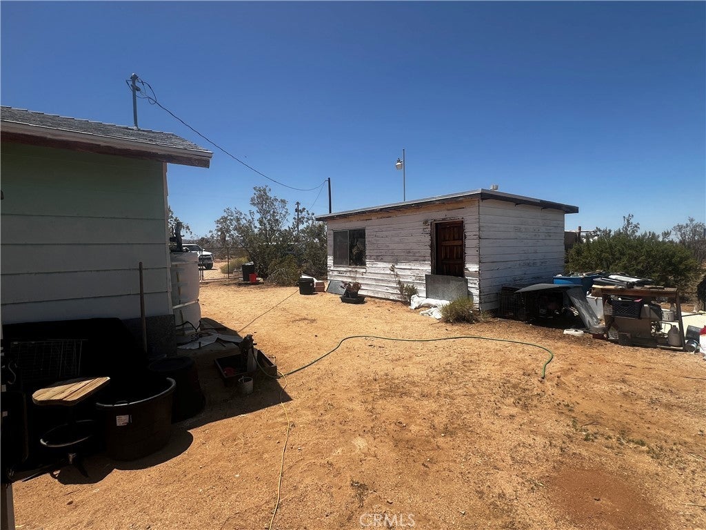 Welcome to 1489 Balsa Avenue, a charming single-family studio-style home situated on a spacious 5-acre desert lot in Yucca Valley. This unique property offers rustic appeal with a distinctive A-frame entry, mature Joshua Trees, and wide-open views of the surrounding landscape. The home has received some thoughtful updates over the years, including exterior paint, roofing, and functional improvements that support comfortable desert living. Inside, the open layout offers flexibility for sleeping, lounging, and working, while the vintage wood paneling adds a warm, retro touch. Outside, the property includes a secondary structure with power already in place—an ideal opportunity for a future guesthouse, art studio, or workshop with additional development potential. The lot is only partially fenced, providing ample room to expand, customize, or create your own desert sanctuary. Whether you’re looking for a full-time home, creative retreat, or long-term investment, this one-of-a-kind desert dwelling has potential written all over it.