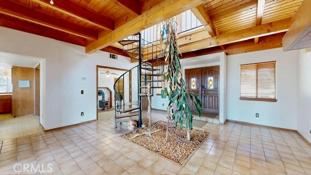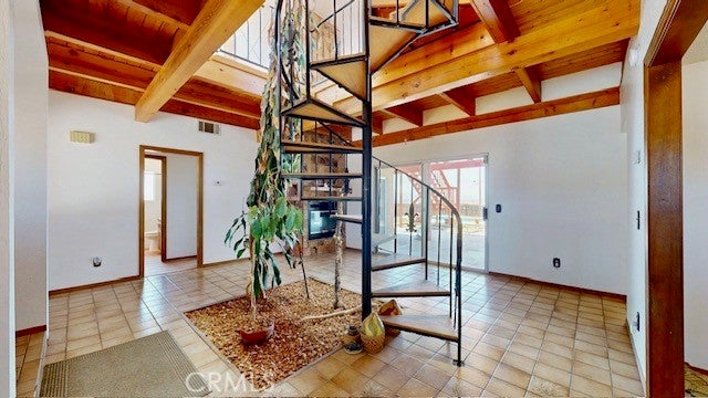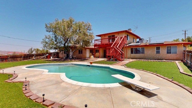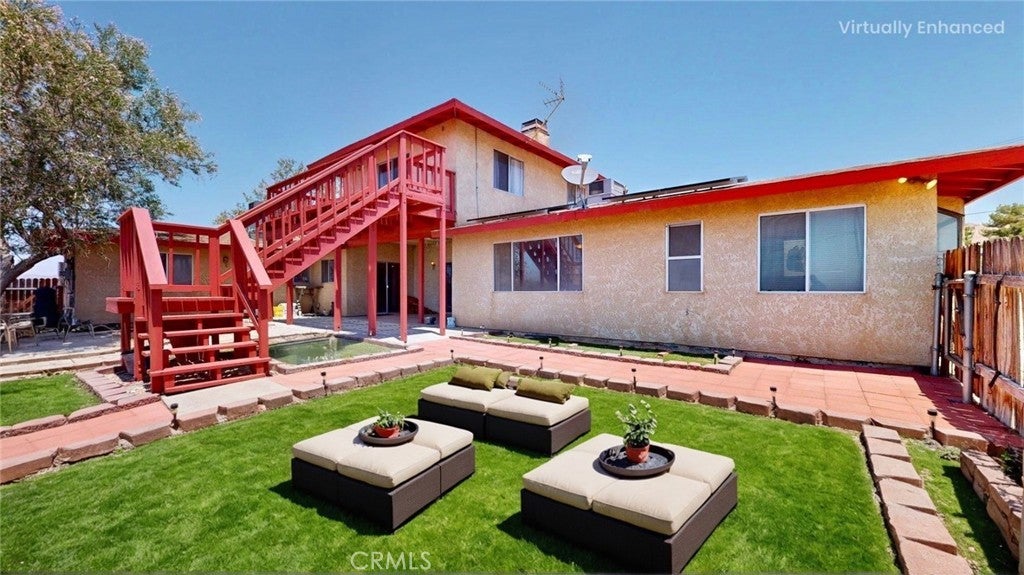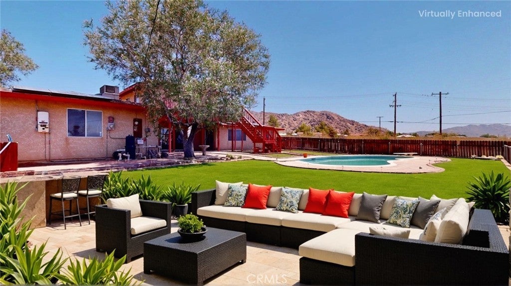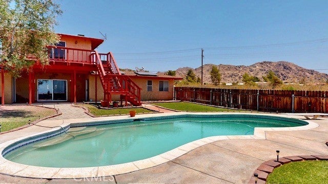 Welcome to 22677 Dexter Lane—where bold design meets natural beauty in one of Apple Valley’s most intriguing custom homes. Tucked into a tranquil desert setting, this 2-bed, 2.5-bath architectural gem spans 2,010 sq ft and offers a living experience like no other. Step inside to discover a dramatic spiral staircase rising through a sunlit atrium to a versatile loft space—perfect as a studio, reading nook, or stargazing escape. Just beyond, a private balcony offers elevated mountain views and a peaceful place to sip your morning coffee or unwind under the stars. The open floor plan flows effortlessly throughout the home, with thoughtfully placed windows framing endless views of the rugged landscape. Outside, your personal desert oasis awaits: a free-form pool, sun-drenched patio, and those legendary night skies—frequently offering dancing stars & a glimpse of the galaxy. Whether you’re seeking a serene retreat, creative hideaway, or distinctive desert escape, this custom-built beauty delivers.