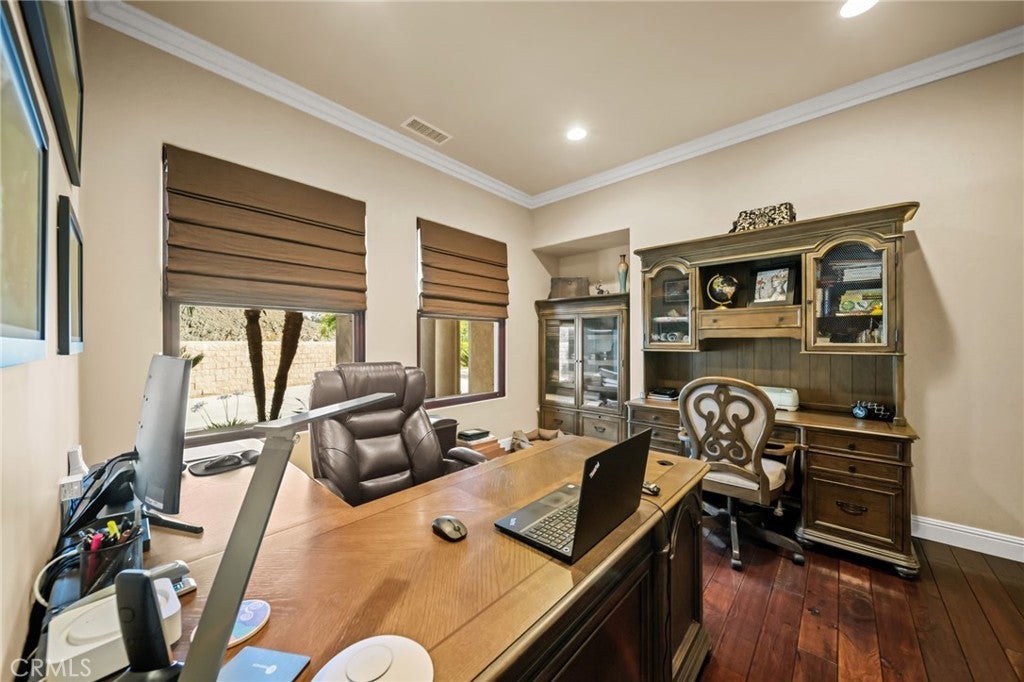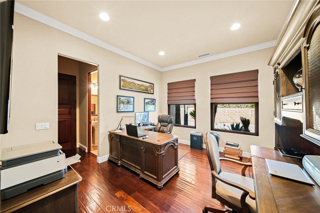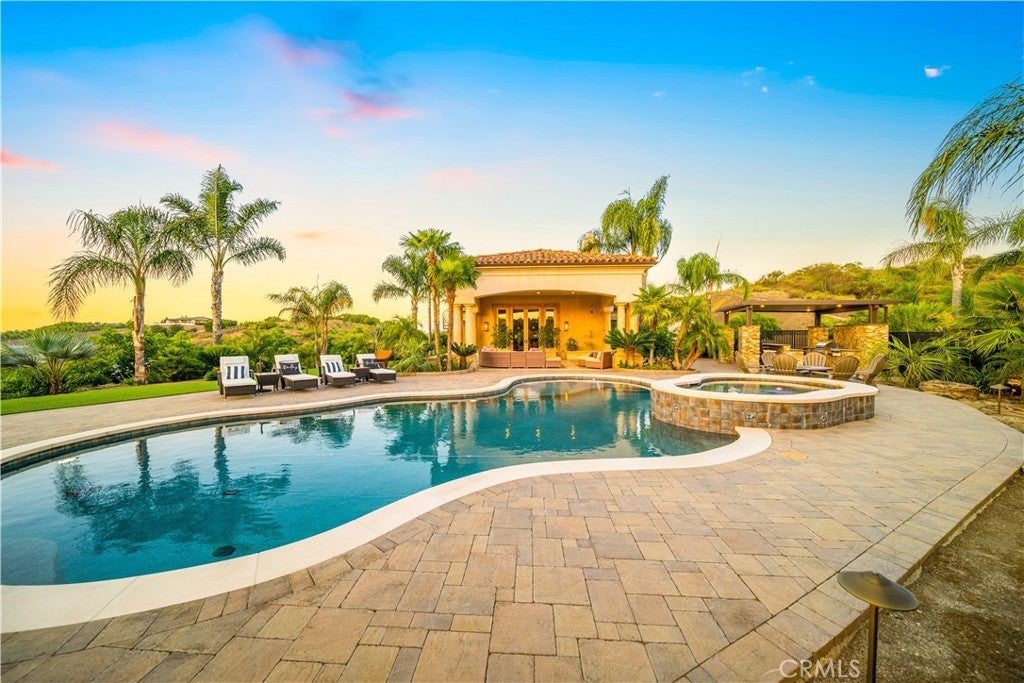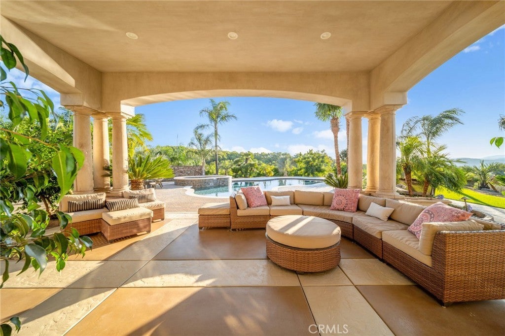 Discover unparalleled luxury and serene country living in this magnificent 4,498 sqft custom-built home, nestled on a secluded 4-acre lot. This architectural masterpiece boasts a GRAND electric gated entry and breathtaking views of the near by De Luz Hills, offering a perfect blend of elegance and functionality. Key Features: • Spacious & Modern Design: Soaring 10 ft ceilings throughout, with a grand 14 ft ceiling in the living room. French doors with Clearview screens ensure pest-free ventilation. • Gourmet Kitchen: Equipped with two Bosch dishwashers, Thermador double oven, microwave, and 6-burner stove for the ultimate culinary experience. • Luxurious Master Suite: Features two walk-in closets and a spa-like bath with three wide panoramic windows for natural light and stunning views. • Flexible Floor Plan: Includes two additional main-floor bedrooms connected by a Jack & Jill bathroom, a spacious office with a full bath, and a convenient guest half-bath. • Entertainment & Comfort: Surround sound system in the master suite, dining room, hallway, and grand room. Lutron Light System controls all exterior and select interior lights via smartphone app. • Outdoor Oasis: Enjoy a fairly new saltwater Pebble Tech pool with pool lights, an outdoor barbecue and island, and a spacious upstairs balcony showcasing spectacular forest views. • Oversized 7-Car Garage: Complete with custom cabinets and a utility sink for ample storage and convenience. • Whole-Home Upgrades: Electrolux central vacuum, whole-house water softener, conditioner, and filtration system, plus a 75-gallon Bradford-White gas water heater. Entire home re-piped with PEX two years ago. • Pest Protection: Taexx in-wall injectable pest defense system. • Agricultural Advantage: 360 Haas avocado trees with an agricultural water discount. This exceptional estate combines modern luxury with the tranquility of country living, all while offering premium features for comfort and convenience. Don’t miss the opportunity to own this one-of-a-kind Temecula retreat! Super close to Old Town Temecula and all of your favorite wineries & restaurants.