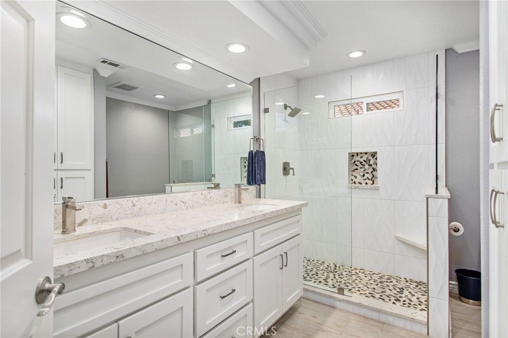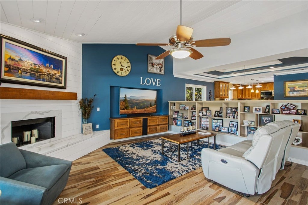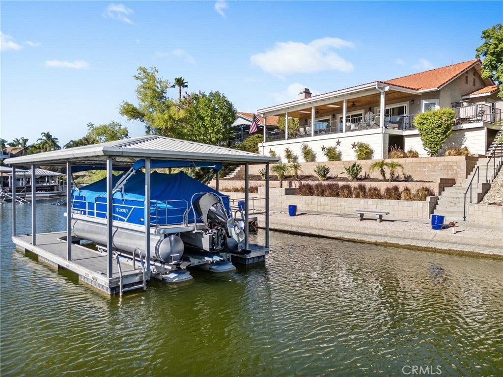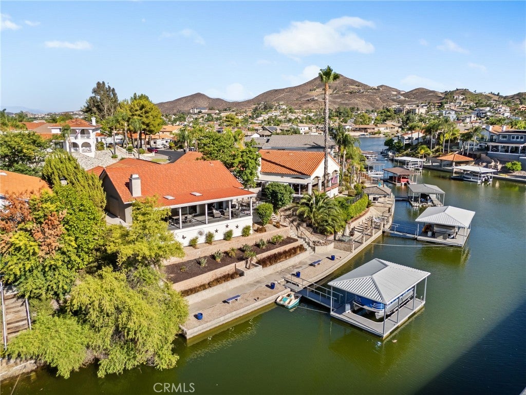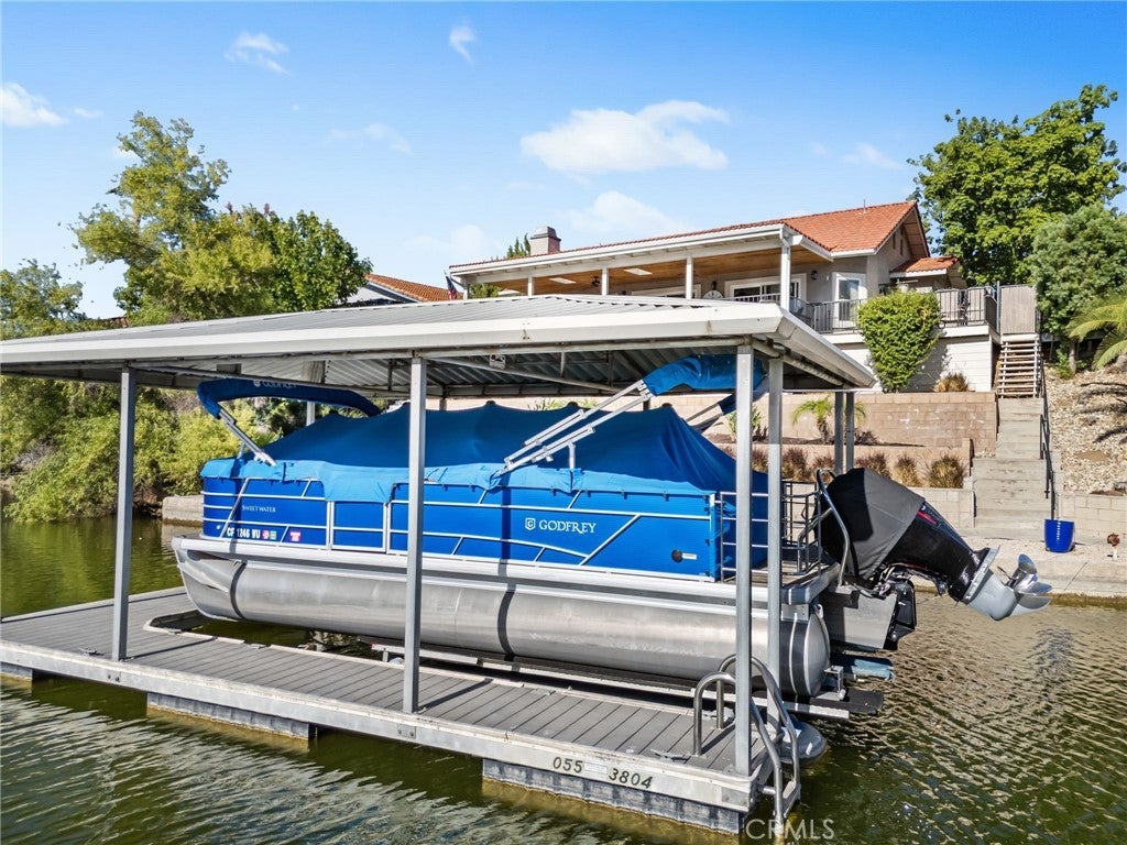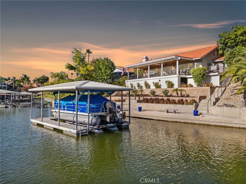 WOW, PRICE REDUCTION! Welcome to this meticulously maintained, FULLY REMODELED WATERFRONT home offering 3 bedrooms, 2 bathrooms, and 2,339 sq ft of beautifully upgraded living space. From the moment you step inside, you’ll appreciate the open layout, vaulted ceilings, wood-look porcelain tile throughout the main living areas, custom designer paint, crown molding, dual-pane windows and sliders, and ceiling fans throughout. This home was almost completely redone in 2021 by Tutt renovations. The family room boasts vaulted ceilings, a custom built in cabinet with media storage, a wood burning fireplace with a stylish quartz and shiplap back wall and mantle. Both roomy secondary bedrooms and have ample closet space. The front room is light and bright featuring a pop out window, perfect for reading, and a small desk nook. The shared bathroom is delightful, with dual sinks and a modern step in shower. The spacious primary suite has a water view and is conveniently located away from the other bedrooms, 3 closets, a slider leading to the patio and the spa-like bathroom features a wet room shower, soaking tub and dual sinks. The home also includes a laundry room with a sink, granite countertops and abundant storage. The kitchen was fully remodeled down to the studs in 2014 and features soft-close cabinetry, a large island with power, quartz countertops, and a brand new built-in microwave. Outside, enjoy an expansive covered patio with a firepit and four retractable sunshades, multiple seating areas, cemented side yard and dog run, tiered planters, and a private dock with hydro hoist that can accommodate a Pontoon or Tritoon boat, steel canopy, TREX decking and day/night solar lights. Additional upgrades include paver driveway and walkways (2024), NEW turf lawn, 26 solar panels (2024 PPA) with 19.5kWh backup battery, NEW electric panel, 220 installed for EV charging, fiber optic internet and extra storage and cabinet space in the garage. Situated on a tranquil part of the lake with peaceful views across to Lion’s Park and mature landscaping, this move-in-ready home is a rare gem! Canyon Lake is a 24 hour guard gated community with a private 525 acre lake, premiere wakeboarding and waterskiing, 18 hole SCGA rated golf course, Lakefront pool and clubhouse, Lakefront RV park, Equestrian center, tennis, basketball & pickleball courts, baseball fields, 4 beaches, 9 parks, an amphitheater, docks, a bicycle pump track, Senior Center, over 40 clubs to join and so much more!
