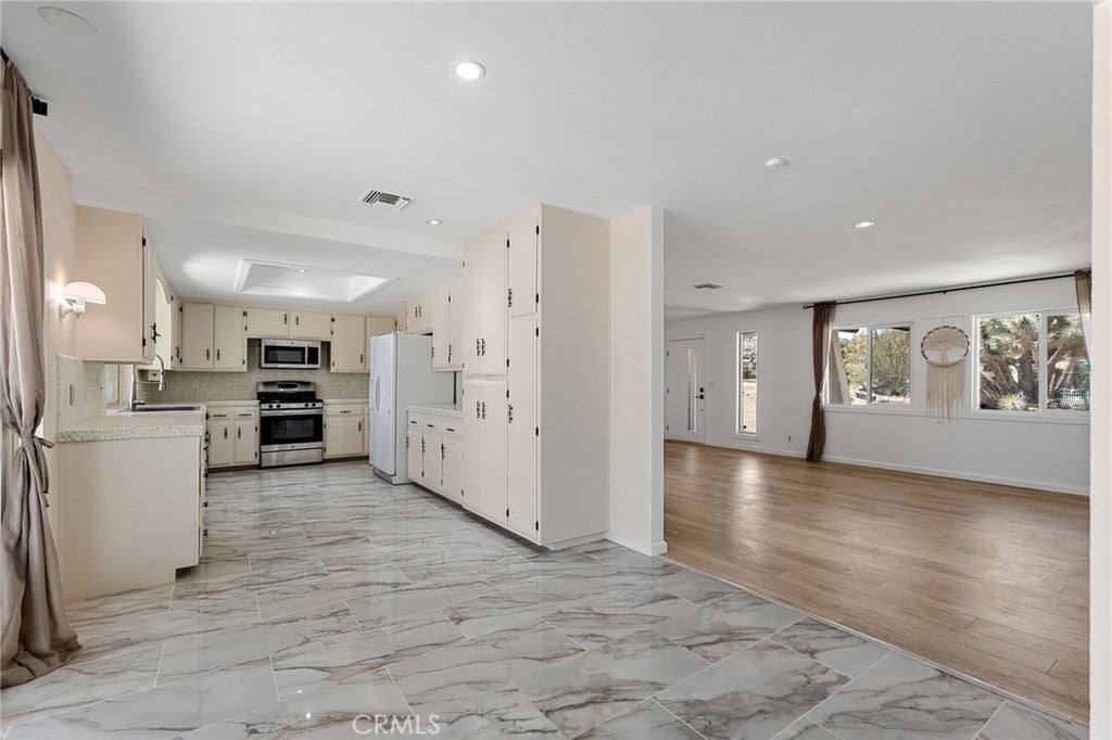 *** BONUS *** - Seller will pay up to $10k in buyer's closing costs with an acceptable offer!! Desert Charm Meets Modern Comfort at 56740 Free Gold Dr, Yucca Valley. Welcome to your desert escape, located in the highly sought after Storey Park community. Situated on a spacious corner lot, this beautifully refreshed home offers the ideal blend of comfort, functionality, and outdoor potential. With RV parking, a large fully usable yard, and plenty of room to expand or entertain, this property is perfect for full-time living, a weekend retreat, or a savvy investment opportunity. Step inside to find crisp white walls with fresh interior paint and neutral toned Vinyl Plank flooring that create a bright, airy feel throughout the home. The open layout makes the space feel modern and inviting, while a newer AC unit ensures year-round comfort. The backyard is a blank canvas—ready for your dream outdoor setup, garden, or even a pool. The corner lot location provides added privacy and ample parking space for guests, toys, or trailers. Just minutes from the entrance of Joshua Tree National Park, you’ll be perfectly positioned to enjoy world-renowned hiking, rock climbing, stargazing, and desert adventures. Local restaurants, coffee shops, and art galleries are all nearby, offering a true blend of nature and culture. Whether you're looking for a full-time residence, short-term rental potential, or a peaceful desert getaway, 56740 Free Gold Dr checks all the boxes.