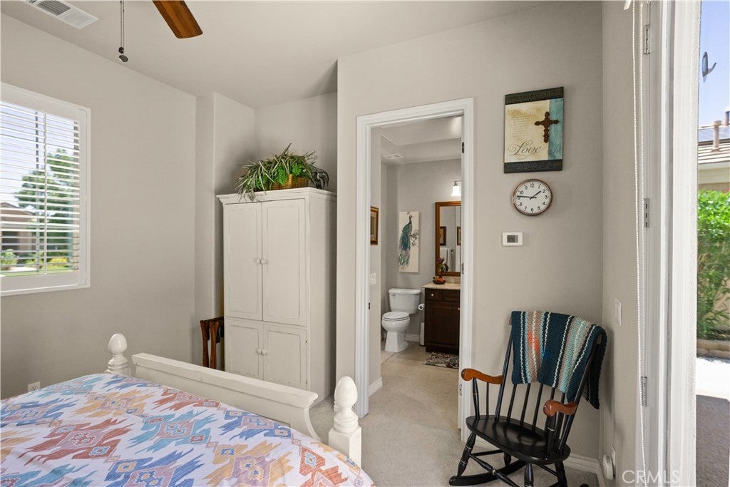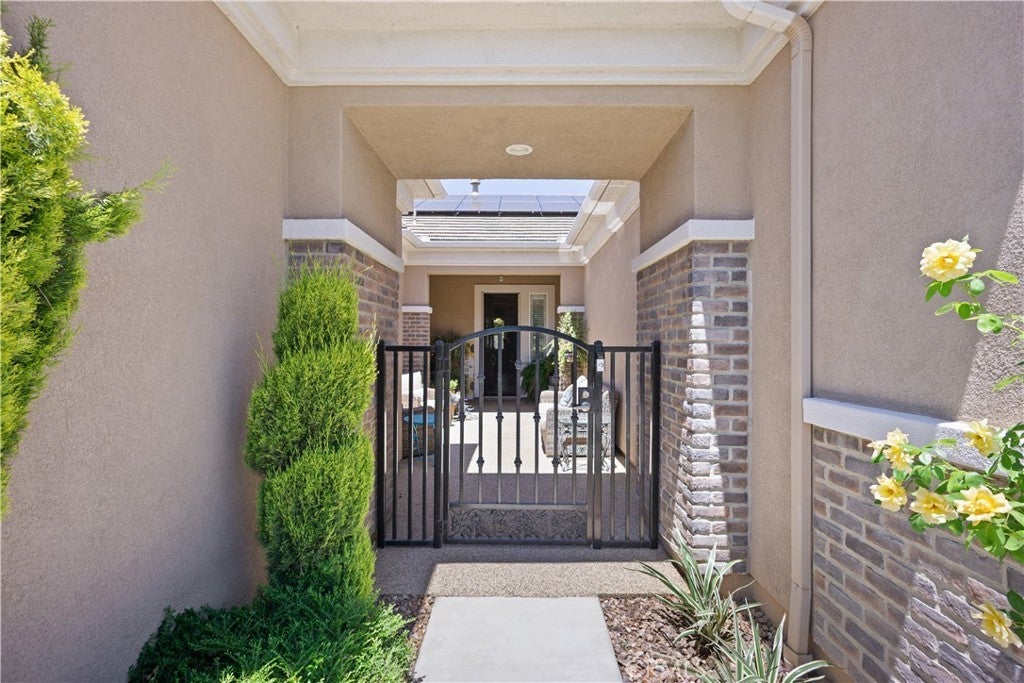 Welcome to this rare casita home located in the highly sought- after 55+ community of Solera Diamond Valley by Del Webb. Beautifully upgraded and meticulously maintained, this exceptional property offers a main home with 2 bedrooms and 2 bathrooms, plus a detached 1 bedroom 1 bathroom casita-perfect for guests, a home office, art studio, playroom or whatever suits your lifestyle. From the moment you arrive, the homes curb appeal stands out with newly landscaped front yard, Pebble Tec walkways in the courtyard, an oversized sliding glass door in the primary suite-every detail has been carefully considered. Inside, an open-concept floorplan is adorned with plantation shutters, solar tubes, tile flooring, crown molding, high ceilings, all ideal for everyday living. The kitchen features granite countertops, a breakfast bar, pantry and breakfast nook. Adjacent to the kitchen, a spacious laundry room offering ample storage, connects conveniently to the 2-car garage with electric car hookups and plenty of storage cabinets. The living space is centered around a warm fireplace creating a cozy atmosphere on cool nights. Just off of the main space is a versatile den- perfect as a formal dining area, home office, or additional sitting room. The Primary suite is a private retreat, complete with a large walk-in shower, soaking tub, custom walk-in closet, and a private sliding door to your personal spa. The guest bedroom is thoughtfully situated for privacy and comfort. Step outside from either the primary suite or living room into a tranquil backyard oasis-a sense of space ideal for reading, relaxing or entertaining. Homes like this don't come on the market often, don't miss this opportunity.