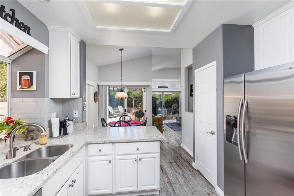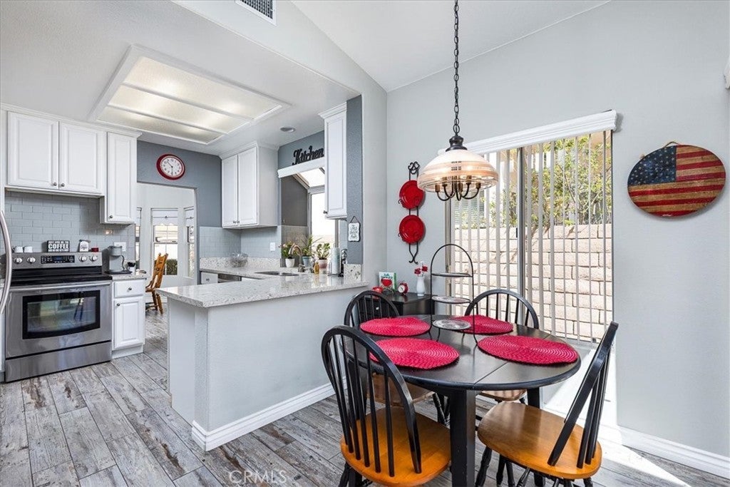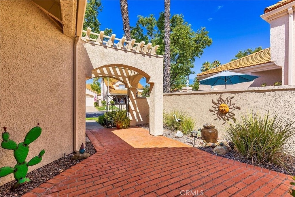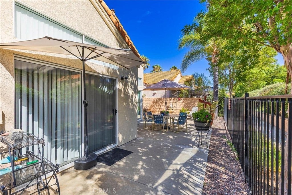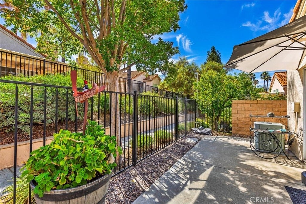 BACK ON THE MARKET, Move-in ready and beautifully maintained, this charming home boasts a bright interior with vaulted ceilings! Located in the highly desirable 55+ gated community of The Colony, this truly TURN-KEY, single-story offers residence a rare opportunity to experience upscale, active, adult living in one of America’s safest cities. Thoughtfully designed for comfort and entertainment, the home features 2 bedrooms, 2 updated bathrooms, a spacious living room, with a bright and airy atmosphere throughout. Upon entry, you’ll be greeted by a large and inviting gated courtyard leading to the front door. The cozy living area features a fireplace, creating a perfect spot for relaxation. The updated kitchen is equipped with modern appliances, new cabinetry, sleek counter-tops and a convenient breakfast nook. Wood tile flooring throughout adds both style and durability. The primary suite offers a private retreat with new windows and carpet. The updated en-suite bathroom is complete with a shower and dual sinks. The additional bedroom is generously sized and share a well-appointed updated second bathroom. The home features a two-car attached garage and a private backyard space with new iron fencing and gate leading to a walking path. Residents of The Colony enjoy access to pickleball, tennis, bocce ball, a sparkling pool and spa, and a scenic golf course that winds through the community. Don’t miss this opportunity to live in one of the area’s most desirable 55+ neighborhoods!