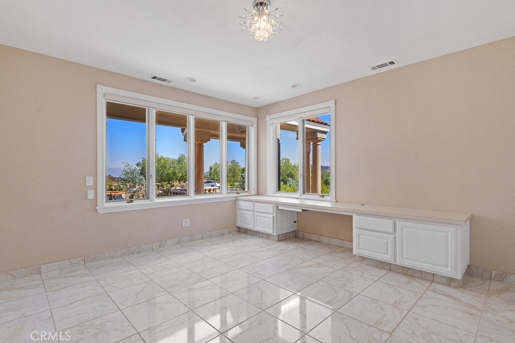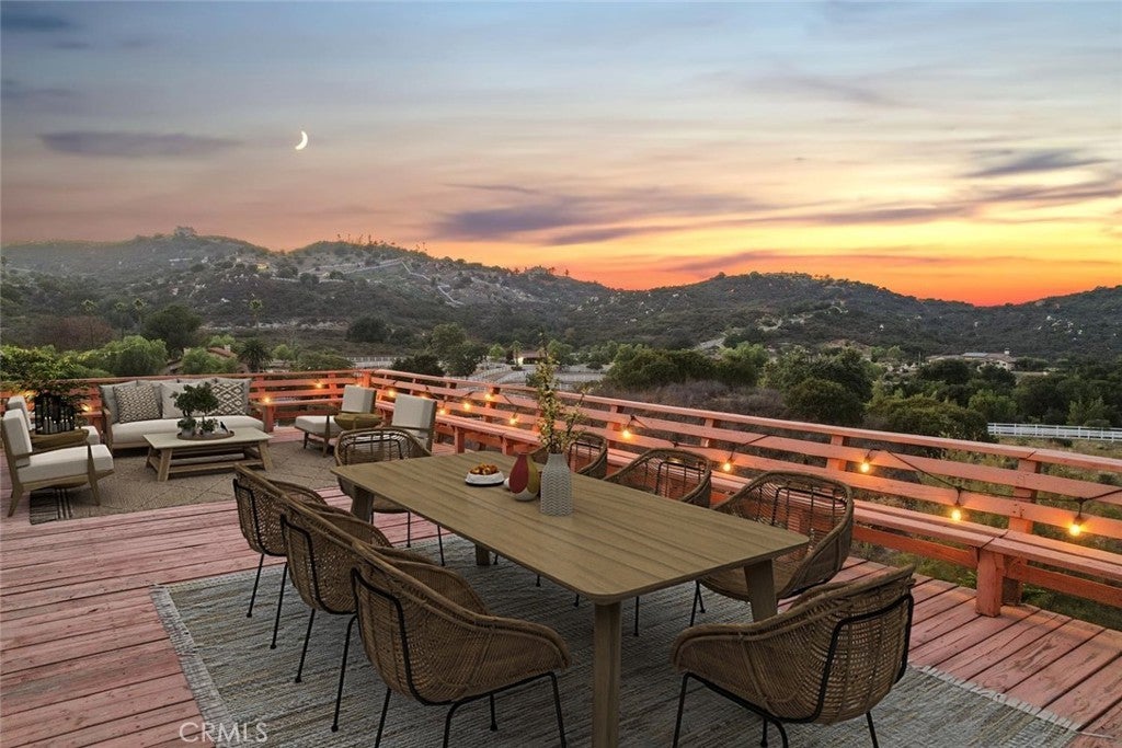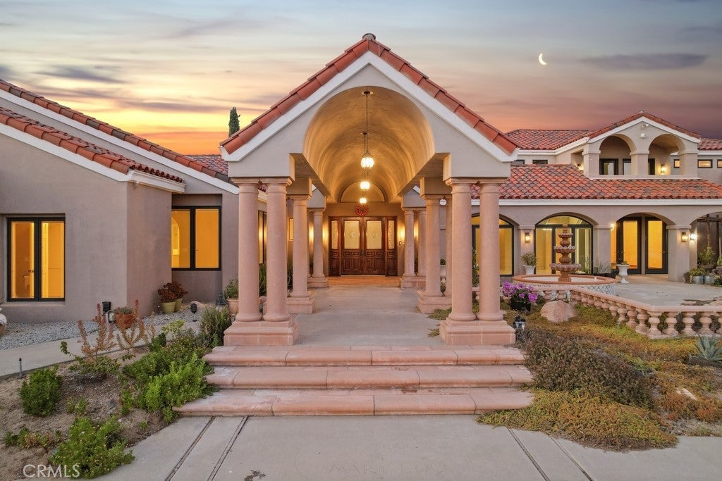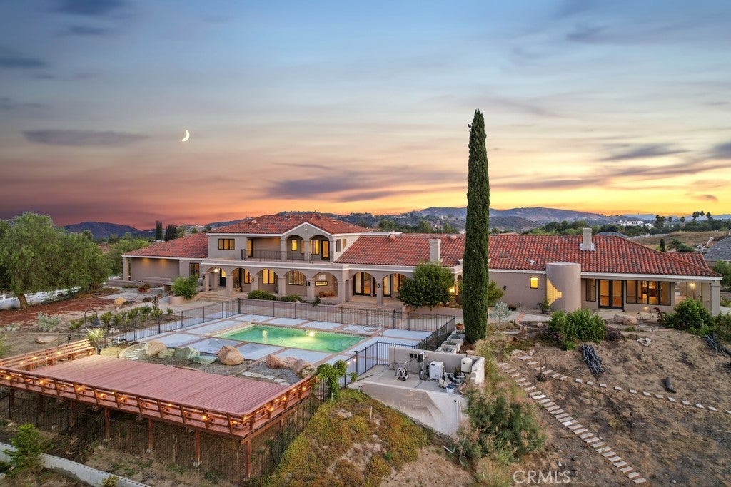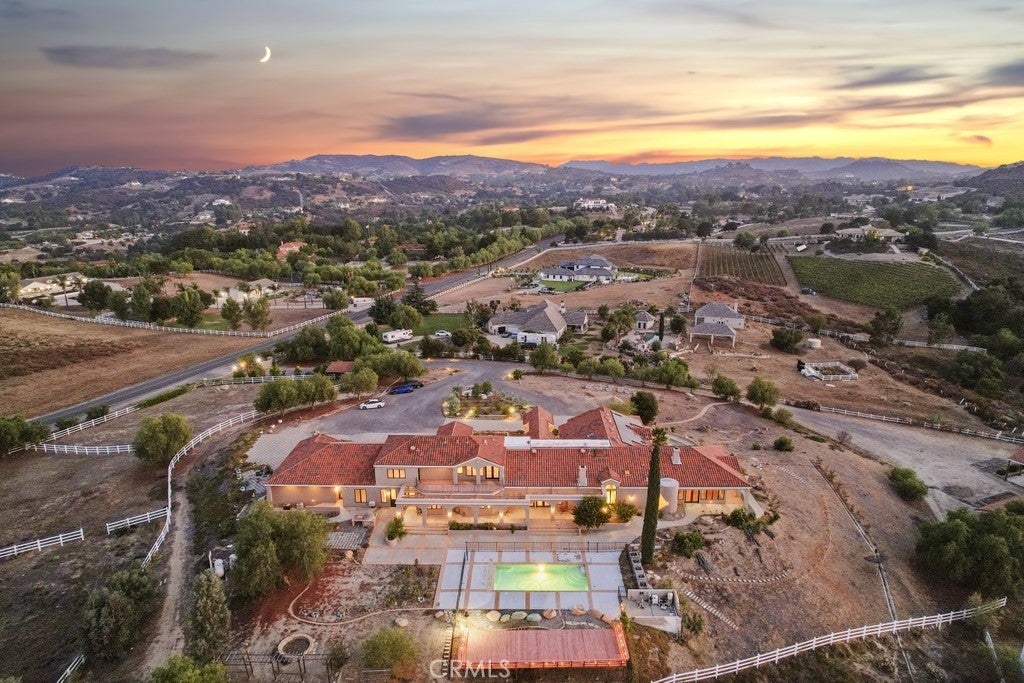 HUGE PRICE REDUCTION! Beautiful Grand Equestrian Estate with Panoramic Views & Endless Possibilities in La Cresta. Set atop 5.55 breathtaking acres, this spectacular La Cresta equestrian estate offers panoramic views from every window, luxurious living spaces, and versatile additions including a studio casita and a converted caretaker home attached to the barn. A 5-stall barn, RV garage, fenced pool with view deck & outdoor kitchen, and indoor spa make this a true dream property. Enter through solid wood double doors into a stunning foyer with terra cotta tile, leading to formal living and dining rooms featuring marble floors, wood-beamed vaulted ceilings, and oversized windows showcasing majestic mountain and garden views. The grand family room impresses with a fireplace, wood floors, custom built-ins, and French doors to the patio and pool. The spacious kitchen includes granite counters, wood cabinetry, a large island, and views of the pool and mountains. A den or office, additional flex space with built-ins, and access to the spa room offer flexible living. The primary suite boasts incredible views, a fireplace, private office, outdoor access, and a luxurious en suite with soaking tub, dual vanities, and two walk-in closets. Upstairs via two staircases, find a spacious loft, 3 bedrooms, and a huge balcony. Two junior suites downstairs feature private baths and walk-in closets, plus an additional den/bedroom. The studio casita includes a full bath, walk-in closet, and kitchenette space. The attached barn unit offers a living area, kitchen, 2 bedrooms, and a bathroom—perfect for guests or caretakers. There's a leased solar system for energy efficiency. Additional adjacent 5-acre parcel also for sale on Via Baya—combine for a rare 10+ acre equestrian estate!