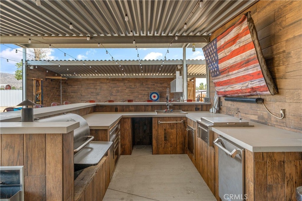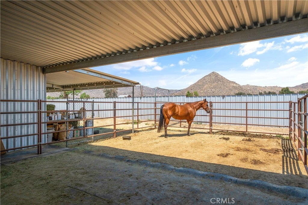 Welcome to this fully remodeled equestrian ranch on 4+ flat, usable acres in desirable West Hemet with A-1-5 zoning. One of the few properties in the area that offers this highly sought after zoning opportunity. This 3 bed, 2 bath 1,594 sqft ranch-style home was completely updated in 2016 with new electrical, plumbing, HVAC, dual-pane windows, LED lighting throughout, and stylish wood plank porcelain tile flooring. Enjoy a custom-designed kitchen with high-end custom cabinetry and modern finishes, updated bathrooms, and a finished garage or flexible space. The property is fully enclosed with a 6’ tall solid PBR panel fence and features two 20’ double gate entries with automatic openers for easy RV and trailer access. Equestrian amenities include 8 oversized 20’x30’ barn stalls, a guest suite and full bathroom, a fully equipped outdoor kitchen/entertainment space, 100’x200’ fully lit arena, 60’ round pen, 4-horse hot walker with watering system, a 750-gal septic tank for the barn, and RV hookups. This private, turnkey retreat offers top-tier infrastructure, premium finishes, and exceptional functionality for equestrians, hobby farmers, or rural lifestyle seekers. Please see attachments for a list of all the upgrades this incredible property offers along with an inclusions and exclusions list.