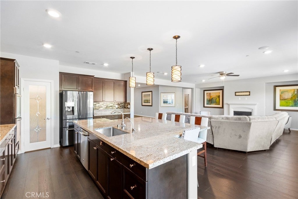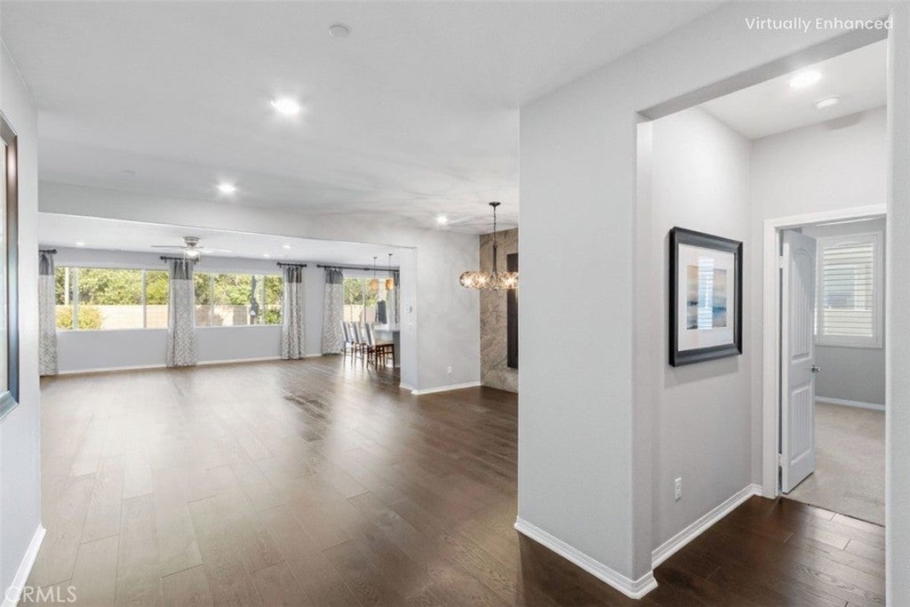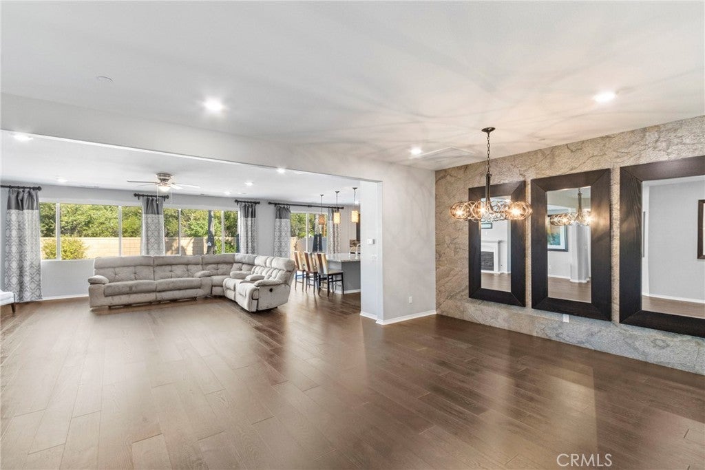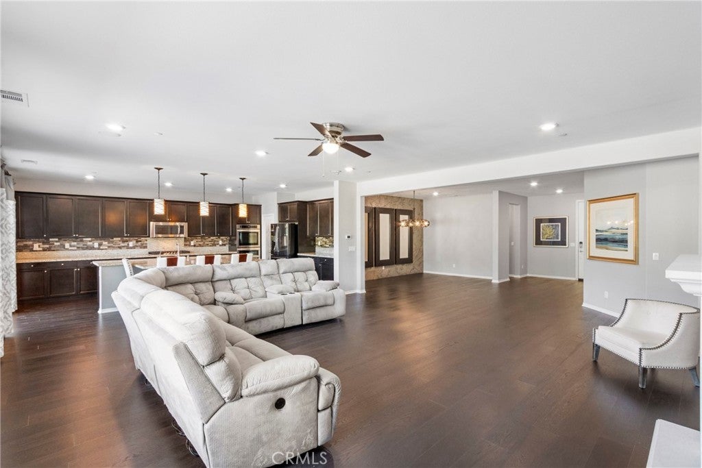 Welcome to this stunning 5-bedroom, 3.5-bathroom single-story home located in the vibrant and growing community of Winchester. Situated in a quiet neighborhood within walking distance to schools, this beautifully upgraded home offers an ideal blend of comfort, modern design, and everyday convenience. Step inside to discover a spacious open-concept floor plan filled with high-end finishes. This former model home showcases hardwood plank flooring, elegant tile, and plush upgraded carpet with premium padding in all bedrooms. Fresh designer paint and custom shutters add a refined touch throughout. The chef-inspired kitchen is a true highlight, featuring rich dark brown shaker cabinets, granite countertops, a large eat-in island with pendant lighting, and an oversized walk-in pantry—perfect for meals and entertaining. Additional features include a versatile den, whole house fan, tankless water heater, and ample closet space throughout. Both front and back yards are designed with low-maintenance in mind and offer outstanding curb appeal—perfect for easy outdoor living. Located in the top-rated Temecula Valley School District and just minutes from shopping, dining, and the world-famous Temecula wineries, this home truly has it all. Don’t miss your chance to own this exceptional, turn-key home in one of Winchester’s most welcoming neighborhoods!