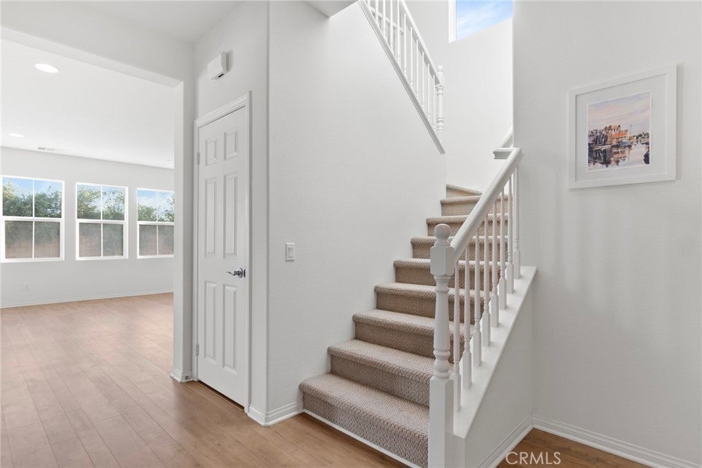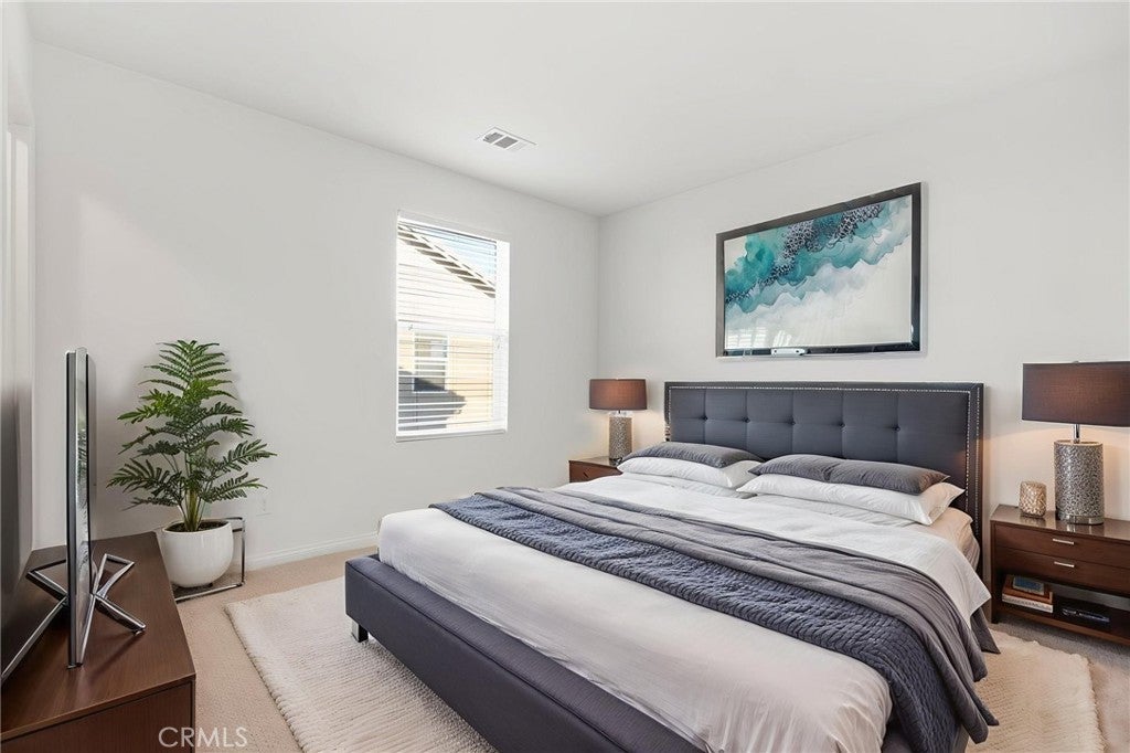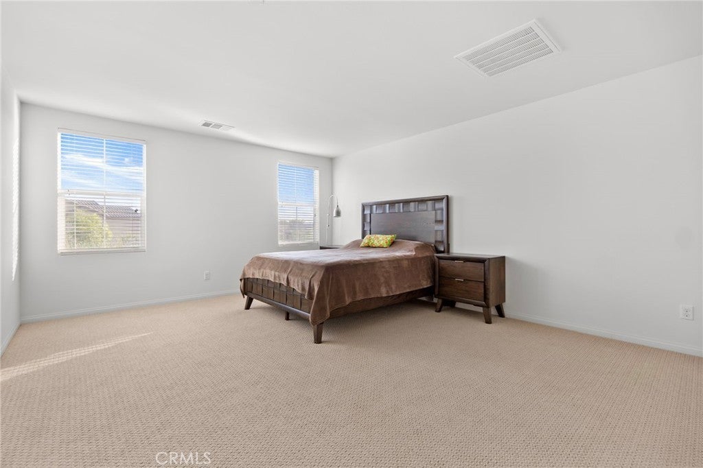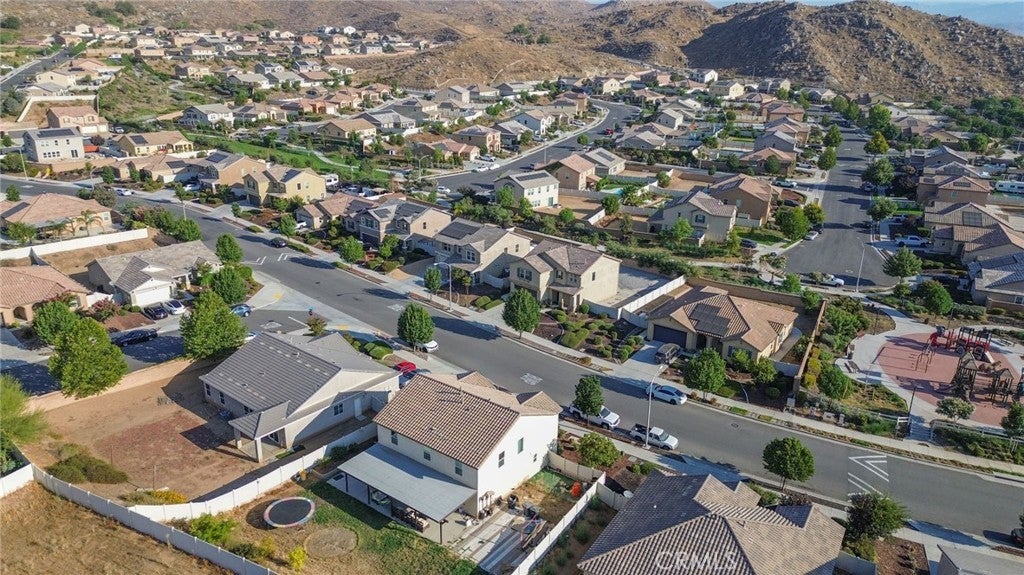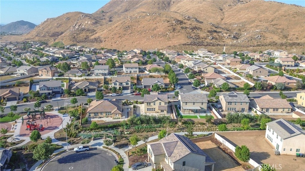 Built just a few years ago and better than new, this upgraded home sits on a premium view lot with brand-new appliances, upgraded flooring, and a tankless water heater. Inside you’ll find 9-ft ceilings, clean lines, and an open-concept layout centered around a large quartz island with USB ports—perfect for family meals, morning coffee, or homework. The upstairs loft offers versatility as a 4th bedroom, office, movie room, or playroom. The primary suite is designed for relaxation with a deep soaking tub, glass shower, and over $40K in builder upgrades already included. Each bedroom comes with its own walk-in closet for added storage. The 7,405 sq ft lot offers space to spread out, a covered patio for entertaining, and mountain views to enjoy. The neighborhood features a playground, basketball court, and tree-lined park just steps away, while hiking, boating, and Diamond Valley Lake are nearby. Everyday conveniences like groceries, restaurants, schools, and Mt. San Jacinto College are all minutes away. Low HOA, high ceilings, and a move-in ready home with no waiting or building—this one has it all.