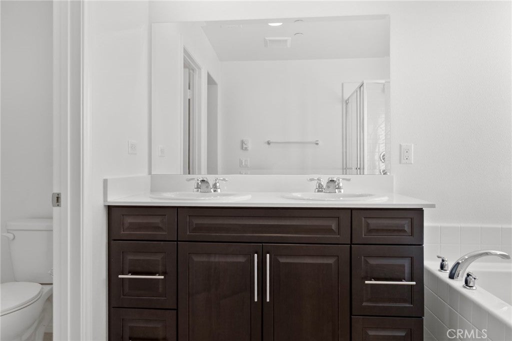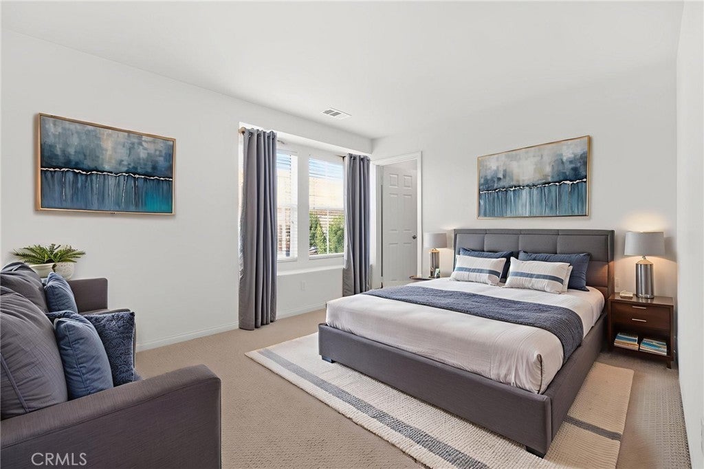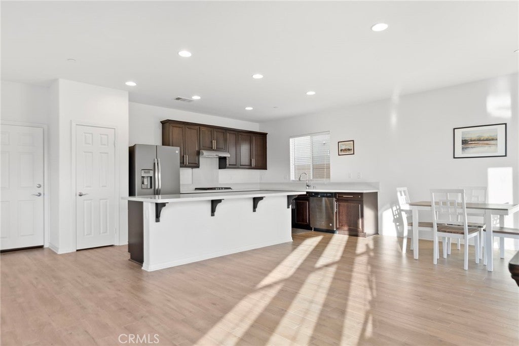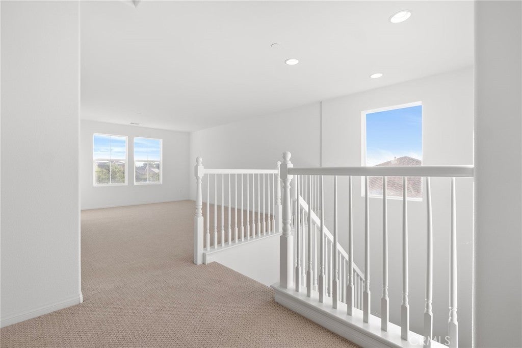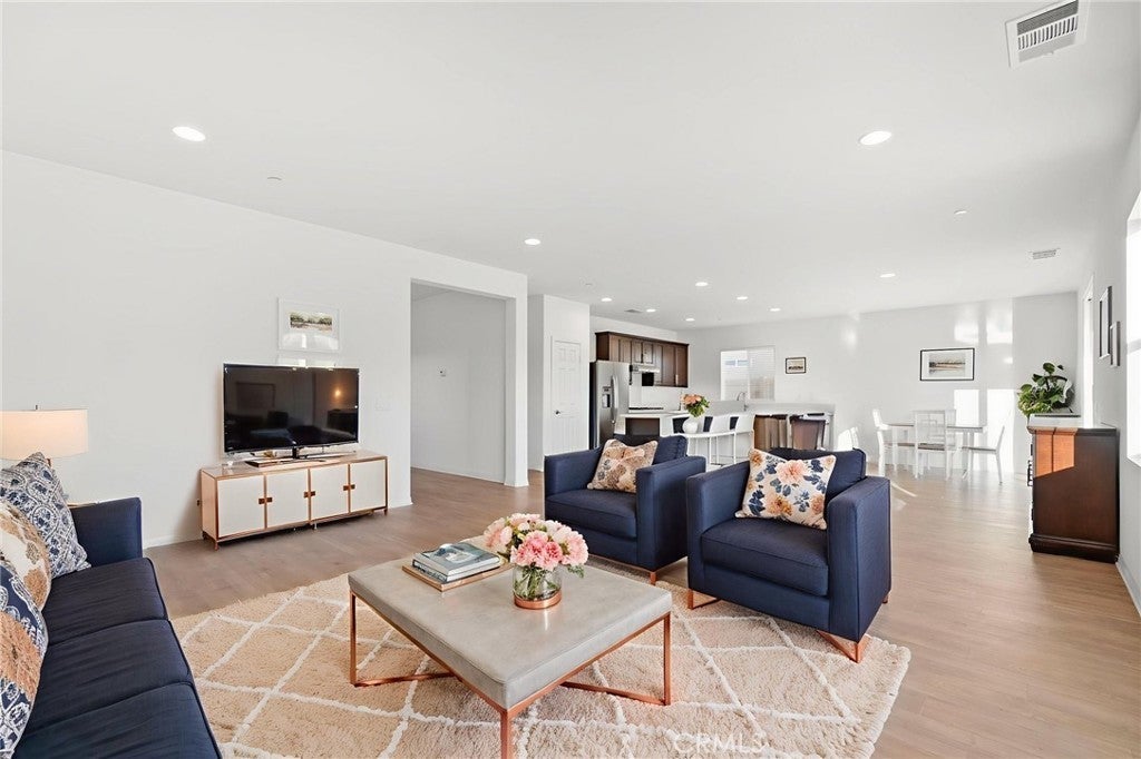 Built just a few years ago and better than new, this upgraded home sits on a premium view lot with brand-new appliances, upgraded flooring, and a tankless water heater. Inside you’ll find 9-ft ceilings, clean lines, and an open-concept layout centered around a large quartz island with USB ports—perfect for family meals, morning coffee, or homework. The upstairs loft offers versatility as a 4th bedroom, office, movie room, or playroom. The primary suite is designed for relaxation with a deep soaking tub, glass shower, and over $40K in builder upgrades already included. Each bedroom comes with its own walk-in closet for added storage. The 7,405 sq ft lot offers space to spread out, a covered patio for entertaining, and mountain views to enjoy. The neighborhood features a playground, basketball court, and tree-lined park just steps away, while hiking, boating, and Diamond Valley Lake are nearby. Everyday conveniences like groceries, restaurants, schools, and Mt. San Jacinto College are all minutes away. Low HOA, high ceilings, and a move-in ready home with no waiting or building—this one has it all.