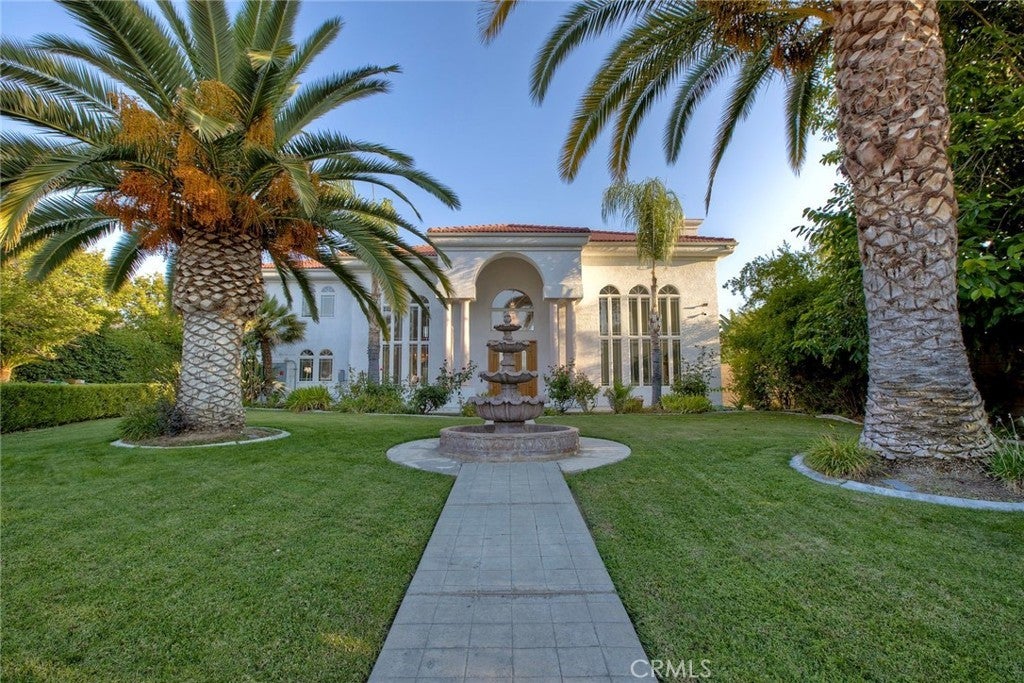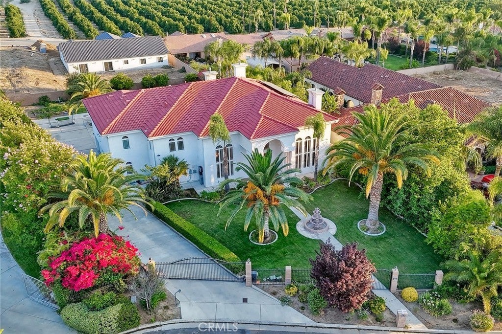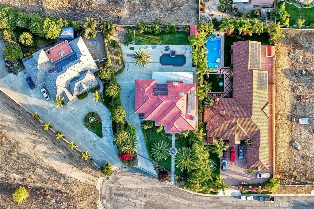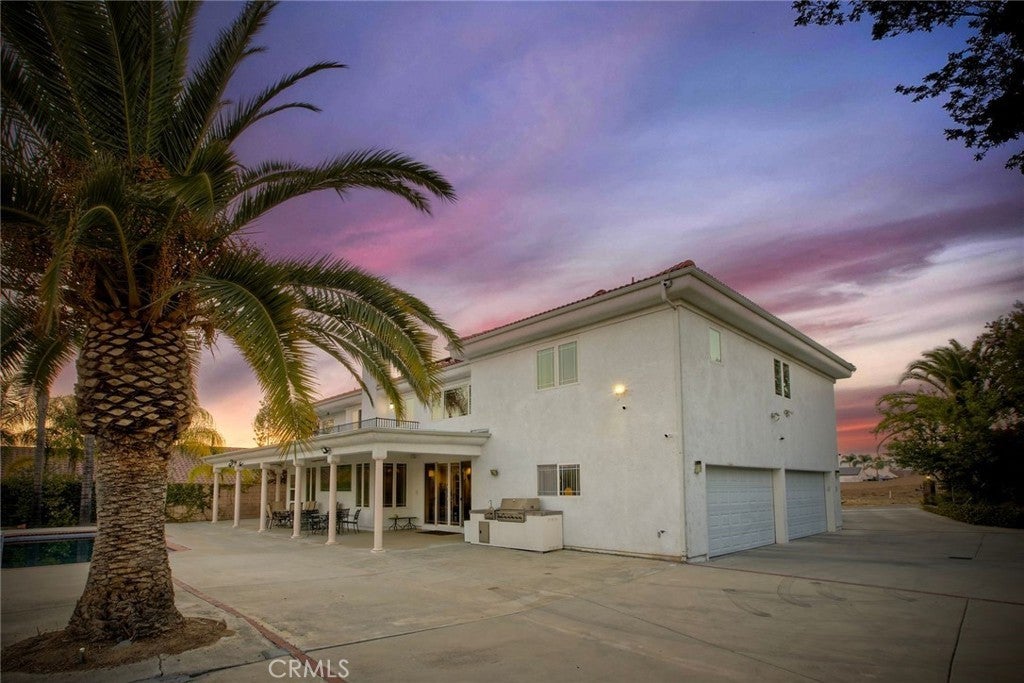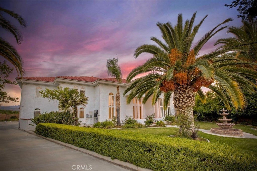 The Majestic Beauty of 44273 French Circle, Hemet — A Home of Elegance, Luxury, and Innovation. This spectacular 5-bedroom, 5-bathroom estate boasts 5,749 square feet of luxurious living space on a lush half-acre lot adorned with exotic fruit trees and stately palms. Every detail has been crafted for both comfort and wow factor, redefining what it means to live well. From the curb, majestic palm trees and mature landscaping create a warm, private welcome. Built to the highest standards with 2x6 exterior framing and extra insulation, the home offers enduring comfort, energy efficiency, and exceptional quiet. Step inside to soaring ceilings and abundant natural light, especially in winter months when sunlight fills and warms the home naturally. At the heart of the home lies a chef’s dream kitchen—crisp white cabinetry, gleaming granite countertops, and stainless steel appliances. Highlights include a professional-size refrigerator, built-in trash compactor, and an open flow to the expansive living area. Here, one of three fireplaces adds warmth, while a built-in surround sound system sets the tone for movie nights or gatherings. The spacious family room, complete with wet bar and natural light, is ideal for entertaining. Fireplaces in the family room, master suite, and living room ensure cozy comfort throughout. Upstairs, a large library with a built-in theater sound system offers a multifunctional space for work, study, or play. Modern conveniences include a whole-house intercom, security camera system, central vacuum, and surround sound throughout. A laundry chute leads to the oversized laundry room with folding station and built-in sewing desk. Four independent HVAC units, four heaters, and a humidifier system ensure perfect climate control in every zone. A dedicated exercise room provides space for fitness, meditation, or a second office. The backyard is a true destination—heated pool, jacuzzi, tropical landscaping, and multiple exotic fruit trees create the perfect backdrop for relaxation or entertaining. A fully paid solar system with backup battery, superior insulation, intelligent climate zones, and passive winter sunlight design make this home as smart as it is stunning. 44273 French Circle is not just a residence—it’s a carefully designed estate that blends beauty, functionality, and enduring value. Welcome to your dream home—elegant, intelligent, unforgettable.