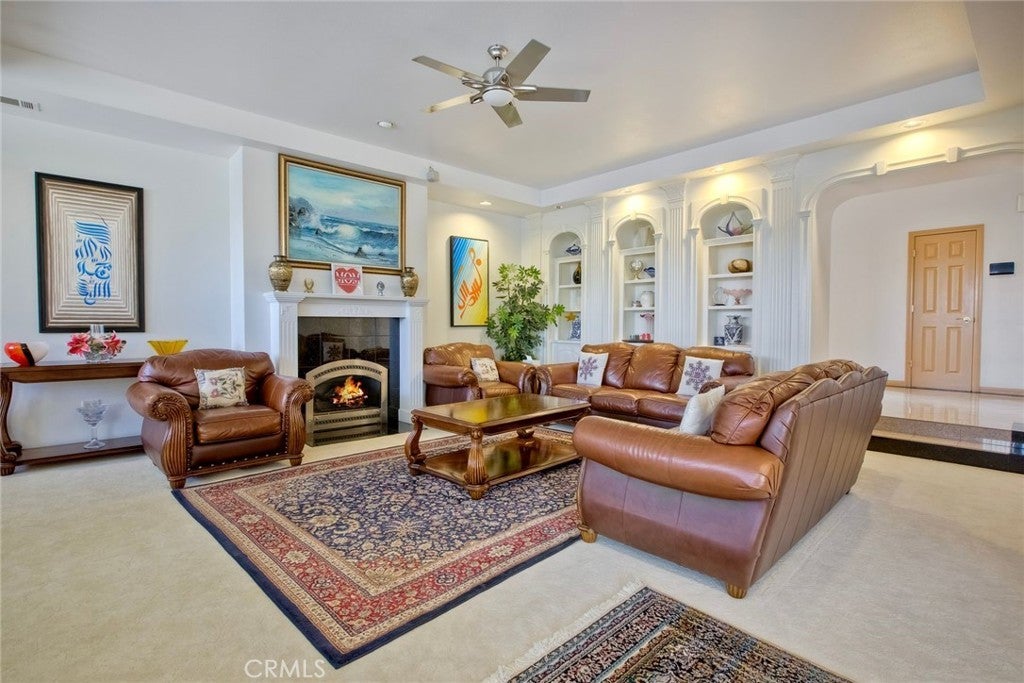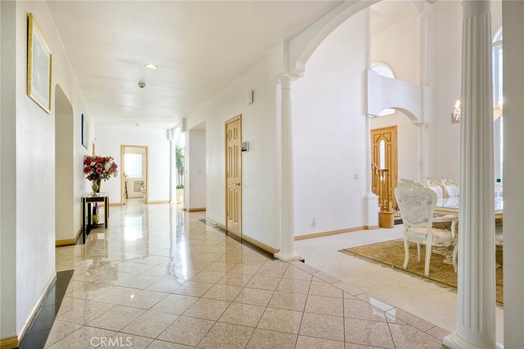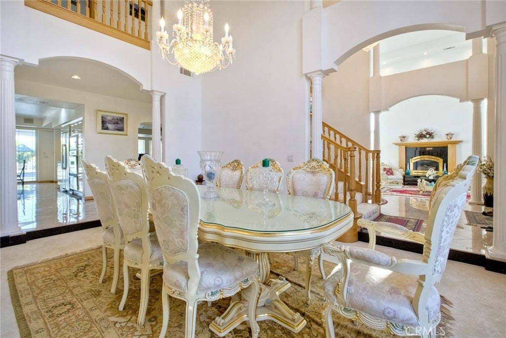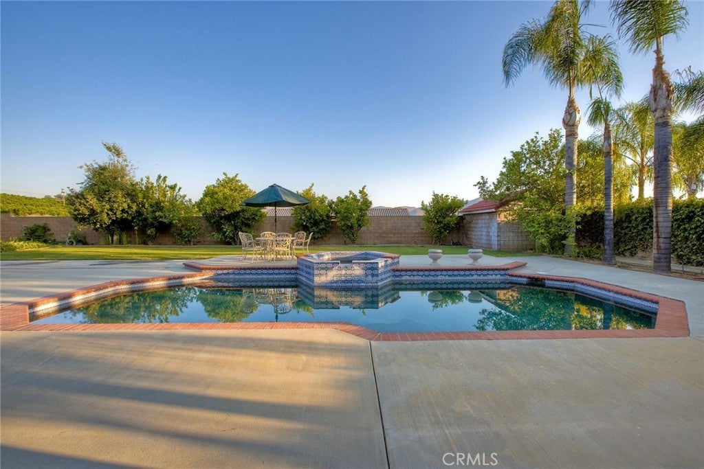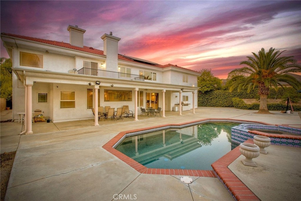 The Majestic Beauty of 44273 French Circle, Hemet — A Home of Elegance, Luxury, and Innovation. This spectacular 5-bedroom, 5-bathroom estate boasts 5,749 square feet of luxurious living space on a lush half-acre lot adorned with exotic fruit trees and stately palms. Every detail has been crafted for both comfort and wow factor, redefining what it means to live well. From the curb, majestic palm trees and mature landscaping create a warm, private welcome. Built to the highest standards with 2x6 exterior framing and extra insulation, the home offers enduring comfort, energy efficiency, and exceptional quiet. Step inside to soaring ceilings and abundant natural light, especially in winter months when sunlight fills and warms the home naturally. At the heart of the home lies a chef’s dream kitchen—crisp white cabinetry, gleaming granite countertops, and stainless steel appliances. Highlights include a professional-size refrigerator, built-in trash compactor, and an open flow to the expansive living area. Here, one of three fireplaces adds warmth, while a built-in surround sound system sets the tone for movie nights or gatherings. The spacious family room, complete with wet bar and natural light, is ideal for entertaining. Fireplaces in the family room, master suite, and living room ensure cozy comfort throughout. Upstairs, a large library with a built-in theater sound system offers a multifunctional space for work, study, or play. Modern conveniences include a whole-house intercom, security camera system, central vacuum, and surround sound throughout. A laundry chute leads to the oversized laundry room with folding station and built-in sewing desk. Four independent HVAC units, four heaters, and a humidifier system ensure perfect climate control in every zone. A dedicated exercise room provides space for fitness, meditation, or a second office. The backyard is a true destination—heated pool, jacuzzi, tropical landscaping, and multiple exotic fruit trees create the perfect backdrop for relaxation or entertaining. A fully paid solar system with backup battery, superior insulation, intelligent climate zones, and passive winter sunlight design make this home as smart as it is stunning. 44273 French Circle is not just a residence—it’s a carefully designed estate that blends beauty, functionality, and enduring value. Welcome to your dream home—elegant, intelligent, unforgettable.