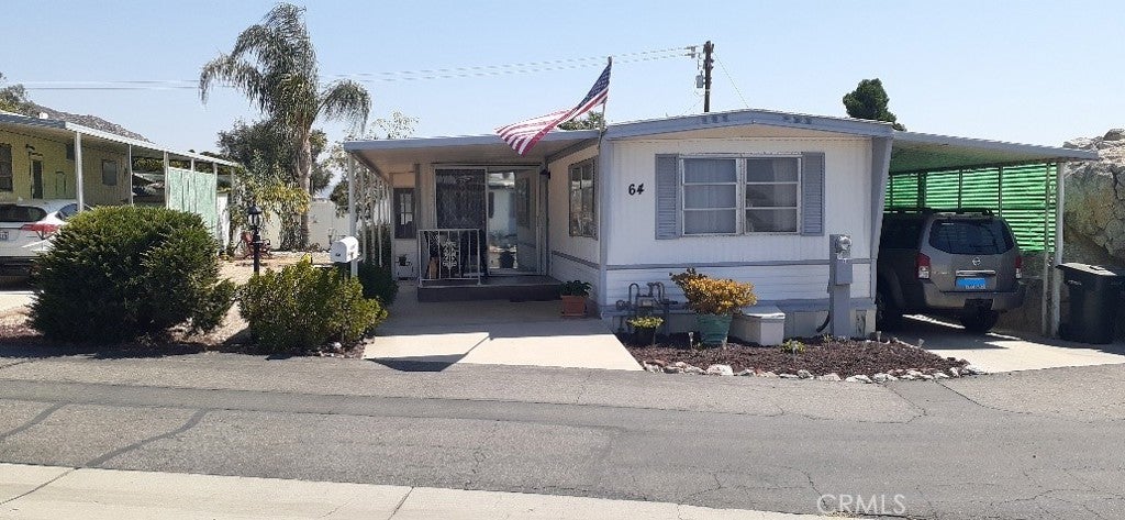 Reduced Price. Charming manufactured home in a 55+ Community. 2 bed 1 bath 672 square foot house with a 360 ft inclosed sunroom. Lots of upgrades, new water heater, new laminated flooring throughout. New water heater, one year new AC wall unit cooler and a master cooler evaporator cooler as well. New freestanding stove . Bathroom has new subfloor, toilet and plumbing. Both bedrooms have built in dresser drawers and closets, also a desk in master. Large back and side yard that is maintenance free and fruit trees. Has six foot vinyl privacy fencing. 2 shed, work bench front and back porch's with awnings. Front porch has new step up deck . Cement driveway, carport with awning. Community has a pool, laundry facilities, office and club house. Park is in a rural type setting mountain views surrounded by open space . Very quite. Close to Diamond Lake where you can go fishing, water park and museum. Echo hills golf course around the corner lots of shopping and restaurants. Appointment only, Park manager approval required. Space Rent $765 a month. Home sold as Is.