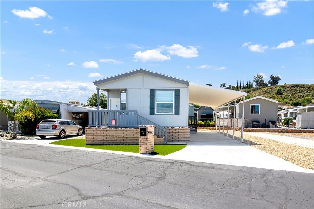 Come walk through this beautiful BRAND NEW Skyline Amber Cove Manufactured home. This 2 bed 2 bath home is a perfect ready to move in 55+ community. The home offers offers approx. 960 sq ft of living space with a FIRE SUPPRESSION SYSTEM, stainless steel appliances, laminate countertops, carpet and vinyl flooring, plus an extended front porch. Low maintenance landscaping and 12 X 40 carport attached. Home comes with an extended warranty and a monthly space rent discount for the first six months. Enjoy amazing views of the local mountains. The park has swimming pool, hot tub, clubhouse with kitchen, pool tables, an activity room, TV room, library and onsite laundry facilities. Hang out with your dog at our dog park or play horseshoes. RV storage area to park your motorhome for a nominal fee. Close to shopping and restaurants and minutes from the town of Idyllwild.