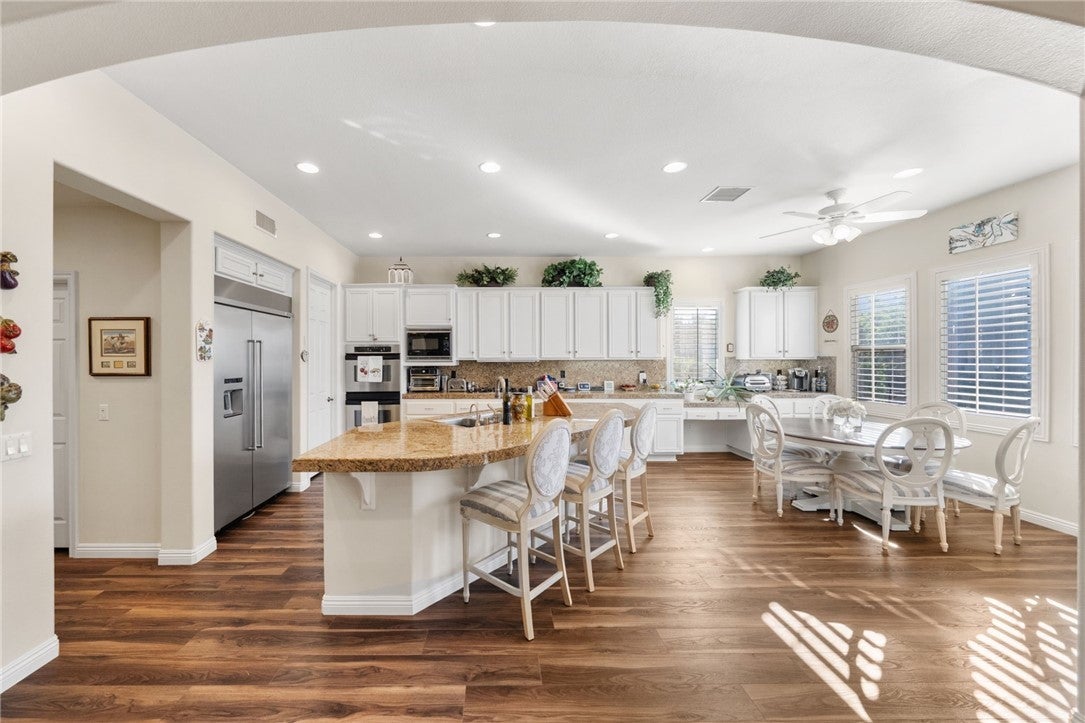 BEST PRICE PER SQUARE FOOT IN BEAR CREEK! Welcome to 36691 Kennemer Drive, a stunning residence located in the highly sought after Bear Creek gated community. From the moment you enter, you’ll be greeted by soaring ceilings, a grand entryway, and an abundance of natural light pouring in through expansive windows. The home features new luxury vinyl plank flooring throughout, creating a modern and elegant flow. At the heart of the home is a chef’s kitchen with an open concept design, perfect for indoor-outdoor entertaining and true California living. The kitchen offers a spacious island, butler’s pantry, bar area, and ample storage—ideal for gatherings both large and small. The floor plan is thoughtfully designed with two main floor bedrooms, including a sprawling primary suite featuring dual sinks, a spacious walk-in closet, and a spa like bathroom retreat. Upstairs, a massive loft/bonus room awaits, perfect for a home theater, game room, or lounge space. Along with the loft there are two additional spacious bedrooms with walk in closets sharing a private Jack and Jill bathroom. Situated on 1/3 of an acre, this property provides unmatched privacy and space. The backyard is an entertainer’s dream, featuring a covered patio, brand new jacuzzi, lush landscaping, mature trees, and a flourishing fruit and vegetable garden. The home also includes a two car garage plus a separate golf cart garage. Living in Bear Creek means access to world class amenities including a renowned Jack Nicklaus Signature Golf Course, pool and spa, clubhouse, pickleball and tennis courts, fitness center, playgrounds, and so much more. Conveniently located near Clinton Keith Road, you’ll enjoy easy freeway access and proximity to shopping, dining, and endless recreation. This is more than a home, it's a lifestyle.
