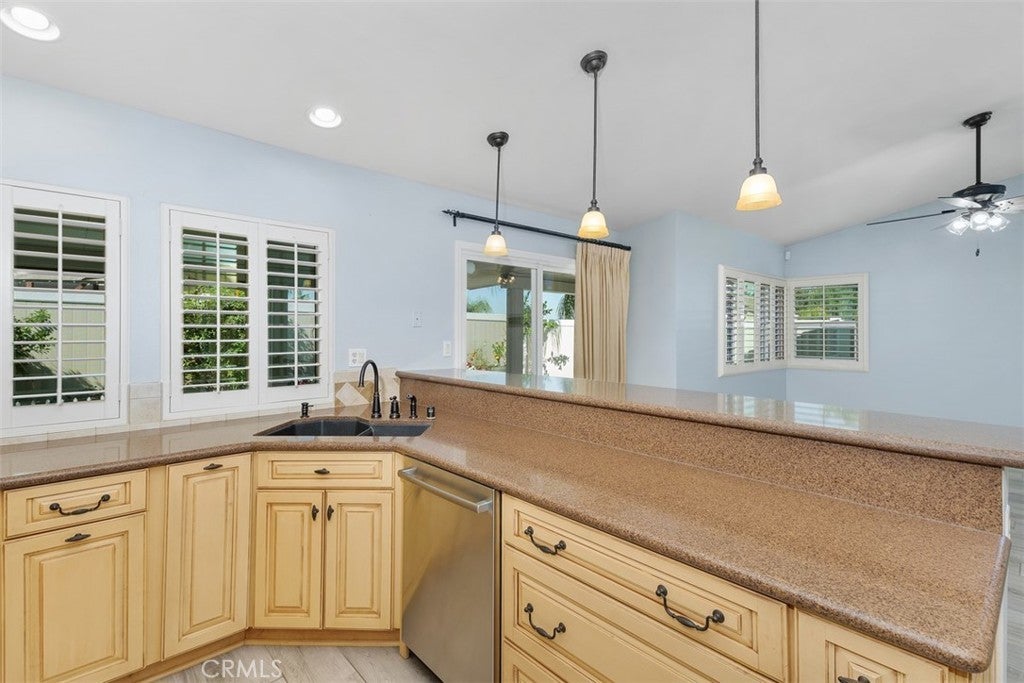 Welcome to 25382 Blackthorne Drive, where comfort, style, and function come together in this beautifully updated single-story home. Set on a peaceful corner lot, this 3-bedroom, 2-bath home offers 1,560 sq. ft. of bright, open living space and a rare 3-car garage—perfect for cars, hobbies, or storage. Inside, you’ll find sleek plank tile flooring, new baseboards, and custom plantation shutters throughout. The home’s open design is enhanced by dual-pane windows and recessed lighting, creating a warm and inviting atmosphere. The remodeled kitchen is both stylish and practical, featuring rich Thomasville cabinetry, granite countertops, and plenty of workspace for cooking or entertaining. The primary suite offers a calm retreat with an upgraded ensuite bathroom, complete with a modern glass-enclosed shower and beautiful finishes. Each bedroom is spacious and designed for comfort, with ample closet storage and natural light. Step outside to your private backyard oasis—perfect for relaxing or entertaining. Enjoy the swim spa, unwind under the Alumawood patio cover, or host gatherings in the low-maintenance vinyl-fenced yard. Whether you’re spending quiet evenings or enjoying time with family and friends, this home was designed for everyday enjoyment. This home is energy-efficient and move-in ready, featuring paid solar, a newer HVAC system, and a newer water heater—helping you stay comfortable while keeping energy costs low. Located in a friendly, well-kept neighborhood with no HOA and very low taxes, you’ll love being close to excellent schools, shopping, dining, parks, and convenient freeway access. 25382 Blackthorne Drive offers the perfect blend of privacy, upgrades, and value—a truly turnkey home that checks every box. Don’t miss this opportunity to make it yours!