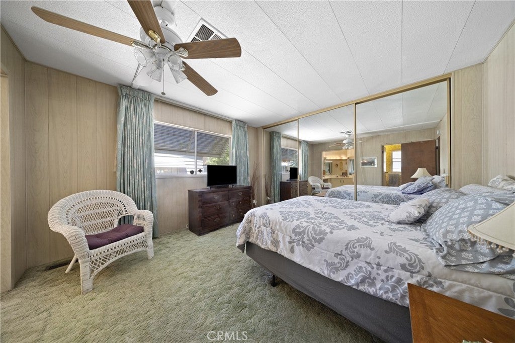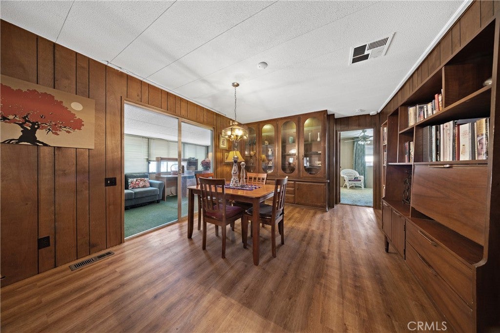 Well-maintained double-wide mobile home in Eden Roc Villa North 55+ senior rental park. Spacious floor plan with formal/dining room combo and separate family room with built-in lighted hutch. Kitchen has double oven, electric cook top, dishwasher, double sink, refrigerator and low-counter breakfast bar. Primary bedroom separate dressing area, mirrored wardrobes, tub and shower, huge counter top with seated vanity. Guest bedroom has ceiling fan, walk-in closet, and stall shower with seat. Inside laundry with gas dyer hook-up (washer and dryer stay). Both HVAC system and cost-saving evaporative cooler. Enclosed patio room and nice outdoor seating area. Shed. Great park amenities including pool, spa, clubhouse, game room, billiards, banquet facilities, and more.