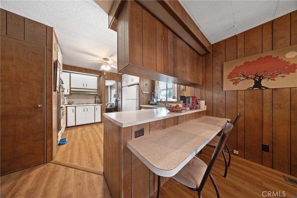 Built-in Features, Ceiling Fan(s), Cathedral Ceiling(s), Laminate Counters, All Bedrooms Down, Bedroom on Main Level, Main Level Primary, Wood Product Walls