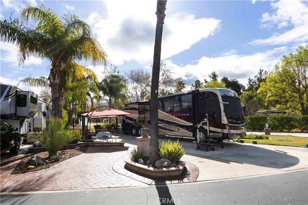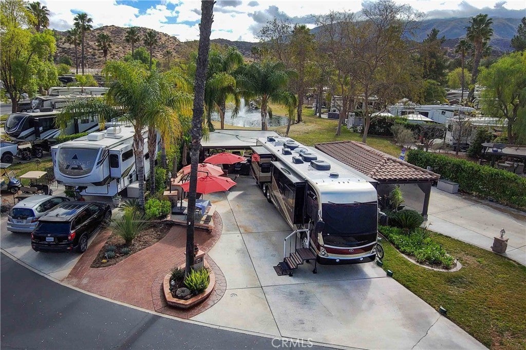 One of the best water views in the resort, a must see when visiting. Full Gorgeous Allumawood Cover overlooking back yard and Pond with Fountain, Gargantuan Family Room with Fireplace, TV Nook and sitting wall for extra visitors. The BBQ Island has a great patio and sitting area to enjoy company and lots of room for food or games. Huge Stained concrete area for Golf Cart parking or extra car. Looking for an RV Resort lot with space and privacy then come check out this perfect location nestled among the foothills of Palomar Mountain, minutes from Temecula Wine Country as well as a convenient location to Palm Springs in just under an hour, 1.5 hrs to San Diego and 1 hr to the beach in Oceanside. Rancho California RV Resort provides amenities such as a 14 hole Executive PAR 3 Golf Course (no fees for owners), 5 Pools/Jacuzzis, Tennis courts, Pickleball courts, Dog park, Club house, hiking trails, Horseshoe lawn and onsite grocery market. The resort is guard gated with no age restrictions. Monthly HOA fee includes use of the golf course, amenities, trash pickup at lot, water/sewer and common area maintenance. If you are considering a premier Southern California RV destination, don't miss out on visiting Rancho California RV Resort - Financing Available, schedule a showing today!