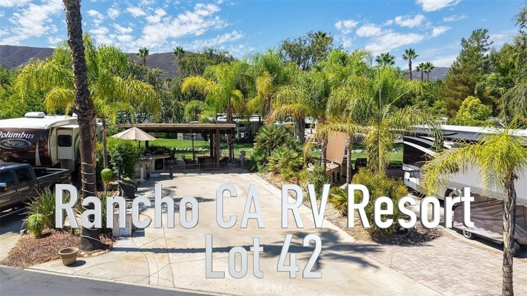 Welcome to Rancho California RV & Golf Resort *Site 42* This beautifully developed site is your own private oasis with a stream and water pond feature directly beyond the site in a park like setting with surrounding mountain views! Spacious alumawood patio cover with screens provides the perfect space for the RV Resort Lifestyle with dining, BBQ/kitchen featuring refrigerator, oven/cooktop, sink and sitting area with TV while soaking in the views. The site is fenced for pets and includes spacious parking for not only your RV but for golf cart and vehicles. Privacy shrubs on both sides of the site offer additional privacy. This truly park like setting is magical, peaceful and relaxing! Rancho California RV Resort provides amenities such as a 14 hole Executive PAR 3 Golf Course (no fees for owners), 5 Pools/Jacuzzis, Tennis courts, Pickleball courts, Dog park, Club house, hiking trails, Horseshoe lawn, onsite grocery market and restaurant. The resort is guard gated with no age restrictions. Monthly HOA fee includes "unlimited" use of the golf course, amenities, trash pickup at lot, water/sewer and common area maintenance. Financing is available!