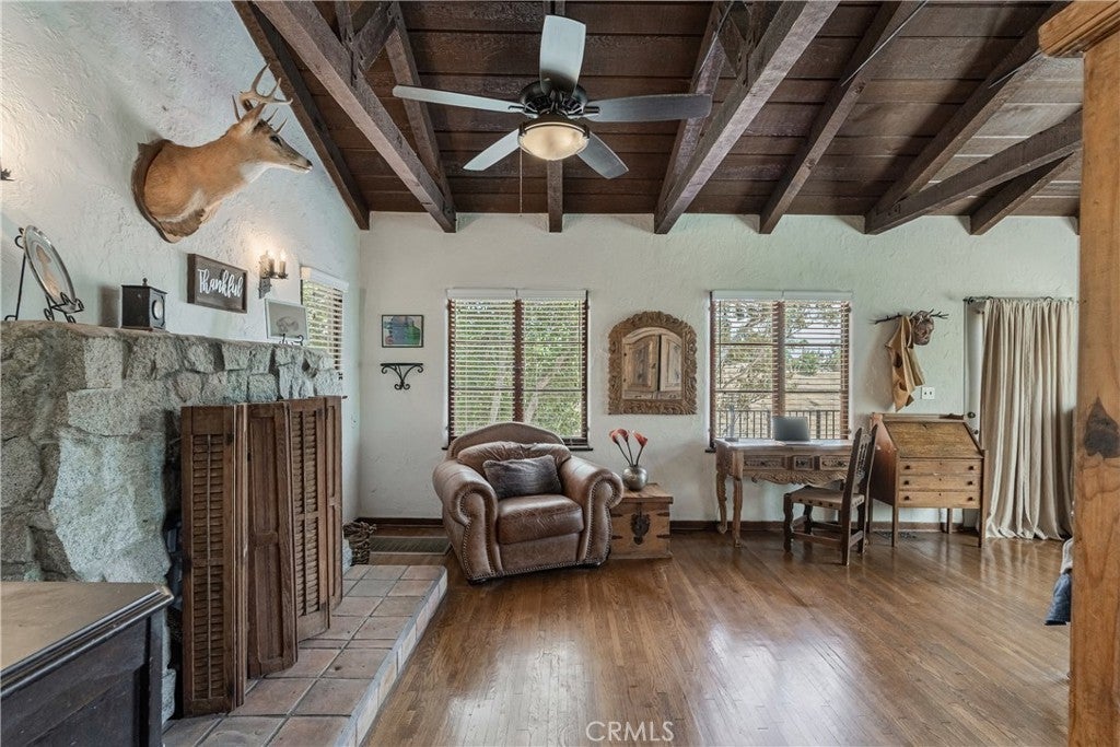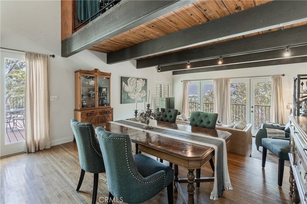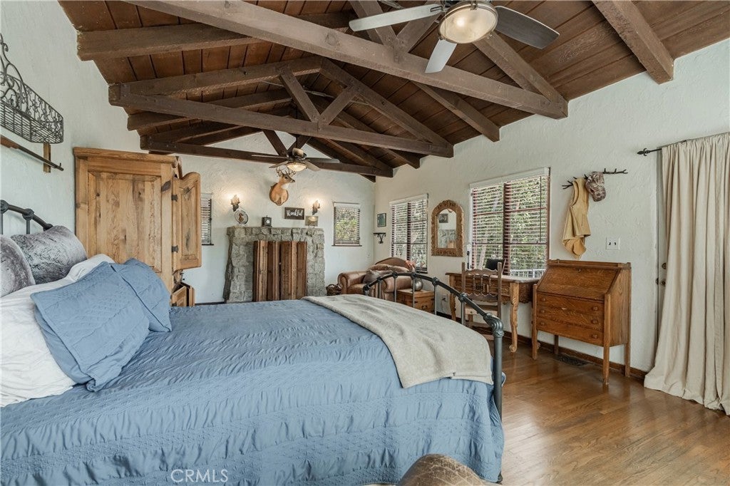 Experience a one-of-a-kind home in Lake Elsinore's Country Club Heights, a community with a legendary past. This California Ranch-style home, part of a development by Jackie Coogan (of The Addams Family), was a party hub for Hollywood's Golden Age, hosted by star Toby Wing. It's said that legends like Bob Hope, Mae West, and Fred Astaire once gathered here. Today, this private sanctuary has been meticulously updated for a modern lifestyle. A long, 180-foot widened driveway and new retaining wall ensure privacy, leading to a home that blends historic charm with a long list of modern upgrades. You’ll find new wood flooring in the dining area and vintage tile in the kitchen, along with an updated electrical panel, new oversized hot water heater, copper water lines, and an HVAC system with mini-splits. The master suite features a beautiful stone fireplace, while a new loft and front entry add valuable square footage. Enjoy the spectacular lake views from any of the three decks. The garage and extra large A-frame carport both have new roofs, and the home has a large crawl space for ample storage. Most windows and doors are double-pane, and the shutters, blinds, and shades come with a lifetime guarantee. There is also a detached workshop, detached gardening shed and 2 large mini-splits to add even more comfort throughout the home. This home offers a rare opportunity to own a piece of history, perfectly updated for your own rockstar lifestyle. Schedule a private showing to feel the magic of this unique property.