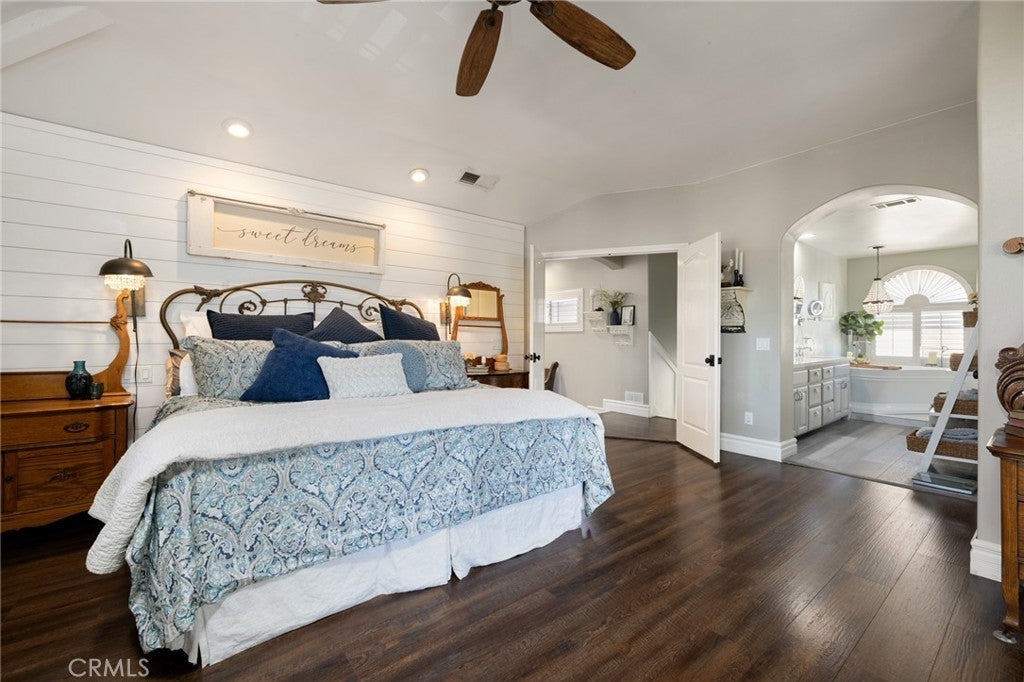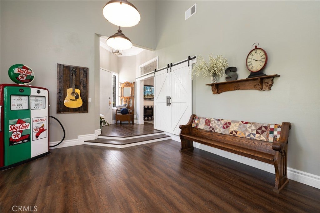 Exceptional and unlike anything else on the market, this truly one of a kind farm style property has been completely transformed with over $300,000 in upgrades, just wrapping up a five-year renovation. Located in the guard gated community of Canyon Lake, this exquisite pool home offers designer high-end finishes, RV and boat parking, owned solar, and lake views. This stunning 3000 sqft property offers 4 bedrooms, 3 full baths, a traditional layout, two staircases and a 3-car garage. The interior is appointed with LVP floors, plantation shutters, high baseboards, crown molding, custom interior paint, custom lighting and wood working throughout. The main floor boasts a formal living area flowing into the family room offering a shiplapped fireplace and is open to a private seating area featuring a wine fridge and wrought iron staircase to the 2nd floor. The kitchen has been transformed with stainless steel appliances including a gas stove, two toned soft close cabinets, large island with quartz counters, subway tile backsplash, farm sink, and is open to the large dining room with custom built-ins and access to a private courtyard. The main floor also features an in-law area with a living area, barn door for privacy, one bedroom and a fully remodeled bathroom boasting custom tiled shower and single vanity. The large laundry room boasts tons of storage, a wash sink, subway tile backsplash and quartz counters. Access to the three-car garage is on the way to the second story via the main staircase which boasts a lift for attic access. The second story features two more spacious secondary bedrooms, an open office with built-in desks and shelves and a whole house fan. An amazing secondary bath is appointed with honeycomb tiled floors and shower, free standing tub and new lighting. The large primary bedroom boasts a shiplap accent wall, en-suite with lake views, and a large walk-in closet with custom built-ins. The breath-taking primary bath offers grey cabinets, and a custom shower with three shower heads, porcelain tile floors and walls and a free-standing tub. The private oasis offers a large CA room, stamped concrete, pavers, refinished saltwater pebble tech pool and above ground spa, built-in BBQ with eat-up bar, fruit trees and tons of privacy trees. This list goes on, see attached upgrades for more. Canyon Lake offers a private lake, golf course, horse amenities, sports courts, club house, country club, pool, baseball field, skate park and beaches.