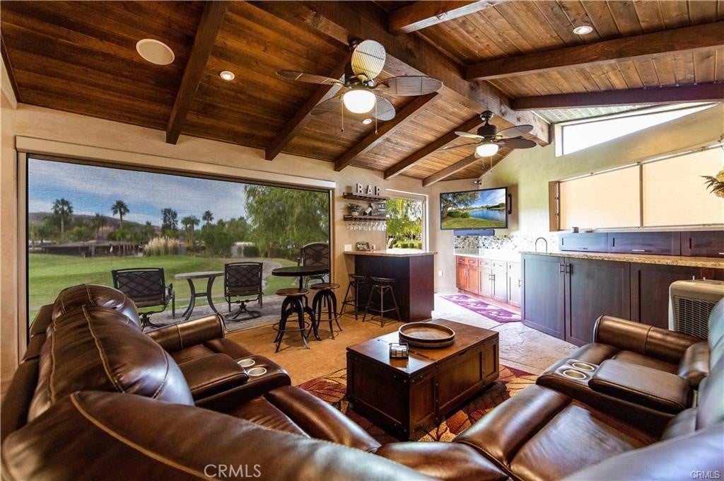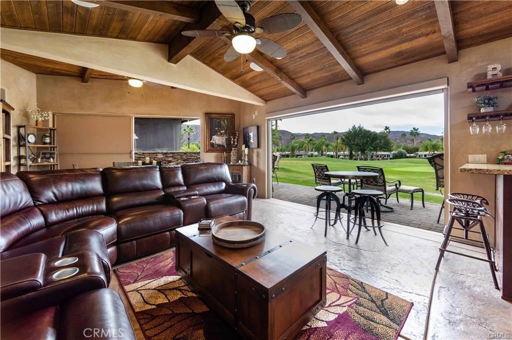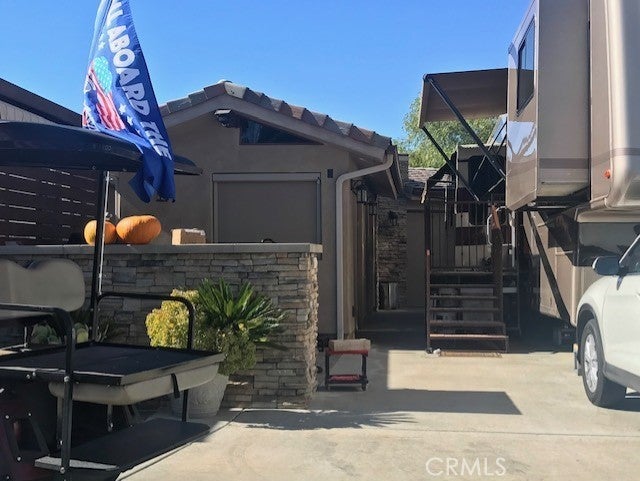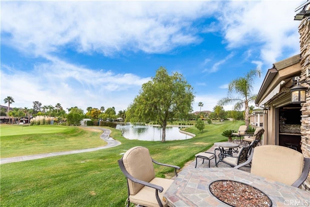 WOW!! This is the one... This lot has so much to offer, for sure a must see on your tour of the Resort. Let me start at the front of the lot, beautiful curb appeal with Palm Trees, Built in BBQ with storage and a Retractable Awning for extra protection or shade. Step inside through secure lockable doors to approx 750 sq ft buildout to a Full Kitchen w/ Granite Counters, Residential Stainless Steel Frig, Stove and oven. So much counter space & storage for your stuff that you need to cook and clean, moving out of the kitchen into the Dining & Family Room area all Stained Stamped Concrete looking out onto the Golf Course & Pond thru Double Screens for privacy and protection from the elements. There is a patio to watch the Golfers and take in the Sunset with the protection of a Retractable Awning and a Fire Pit for warmth and comfort. One last area to enjoy is the entertainers area with an Island with two small frigs for wine, sodas and beer, this area even has a sink for extra cleaning and fun. Next to this is the Washer and Dryer tucked away and only seen when needed. Included in Rancho California RV Resort is a 14 hole Executive Golf Course that is free for owners, 5 Pools and Jacuzzi areas, Tennis Courts, Pickle Ball Courts, Laundry Rooms, Dog Park, Horse Shoe Lawn, Club House, Hiking Trails, all inside Gated Community that is Guarded 24/7. You can live here or rent your space. Peace and quiet serenity all just 25 minutes from Temecula Wine Country. No age restrictions. Financing Available....