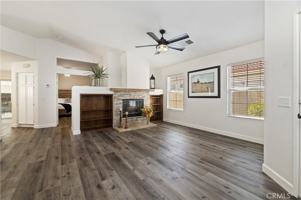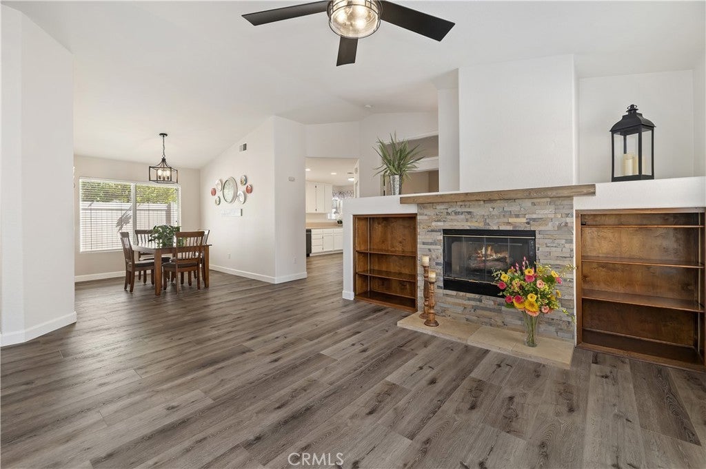 BEAUTIFUL SINGLE-STORY HOME IN THE COLONY ~ One of the area's most sought-after 55+ gated communities. Welcome to this beautifully maintained 2-bedroom, 2-bathroom home with a versatile den/office—perfect as a potential 3rd bedroom or hobby space. This home offers comfort, privacy, and a vibrant lifestyle. Step inside to a bright, open floor plan featuring vaulted ceilings, lots of natural light, beautiful flooring throughout. The living room offers a cozy fireplace - ideal for relaxing evenings - while the adjacent formal dining area provides the perfect setting for entertaining guests or enjoying holiday meals. The spacious kitchen offers ample counter space, plenty of cabinets for storage and a large sliding door that opens to the private backyard— Enjoy outdoor living under the expansive Alumawood covered patio, complete with a ceiling fan, recessed lighting and roll down sun shades. Perfect for enjoying your morning coffee or evening gatherings. Also, enjoy peace of mind with vinyl fencing on each side. The primary suite features an en-suite bathroom with dual sinks and a walk-in shower, while the secondary bedroom and full bath are conveniently located on the opposite side for added privacy. The two-car garage includes lots of built-in storage cabinets, providing plenty of space for tools, hobbies, or seasonal items. From the moment you enter The Colony itself is a premier gated senior community for residents 55+, offering a wealth of amenities, including a resort-style clubhouse, a year-round pool, two spas, and lighted pickleball, paddle tennis, and tennis courts. Residents also enjoy access to a gym, library, ping pong, billiards, and a salon for hair and nails. The community hosts a variety of groups, activities, and events, from shows and dances to concerts, bingo, and themed parties, ensuring there’s always something to do. A privately owned 18-hole golf course is conveniently located within the gates, and the HOA waters and maintains all front yards. With 24-hour security patrol and a guard-gated entrance, you can relax knowing your safety and privacy are well taken care of. Plus, the location is ideal, with easy access to shopping, dining, medical services, casinos, and wineries. This is more than a home, it's a lifestyle.