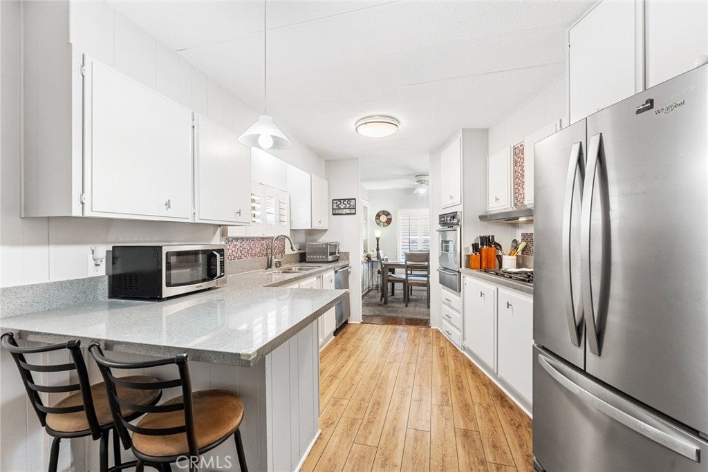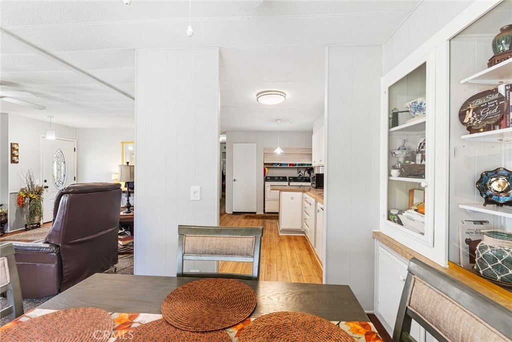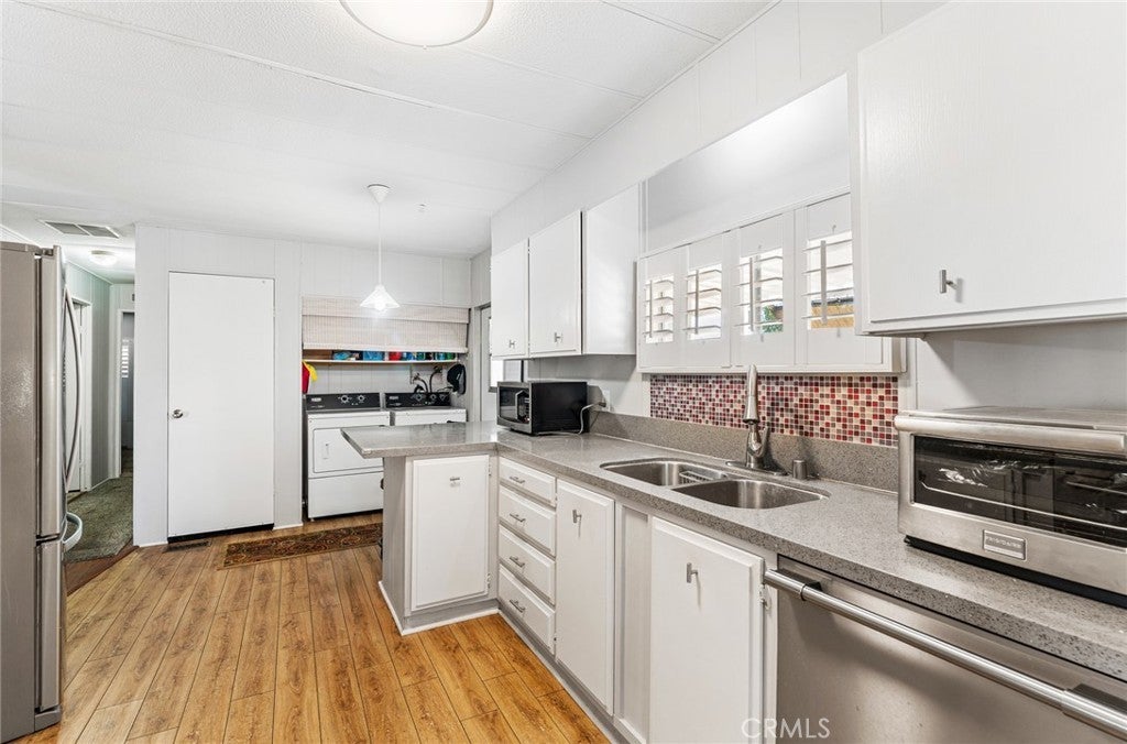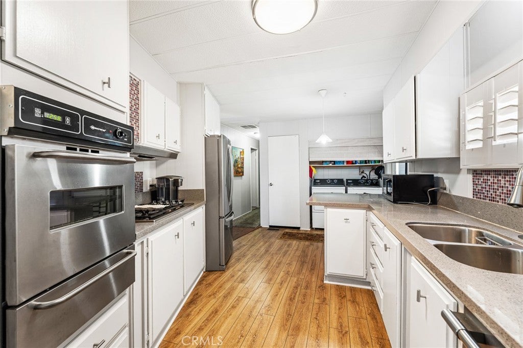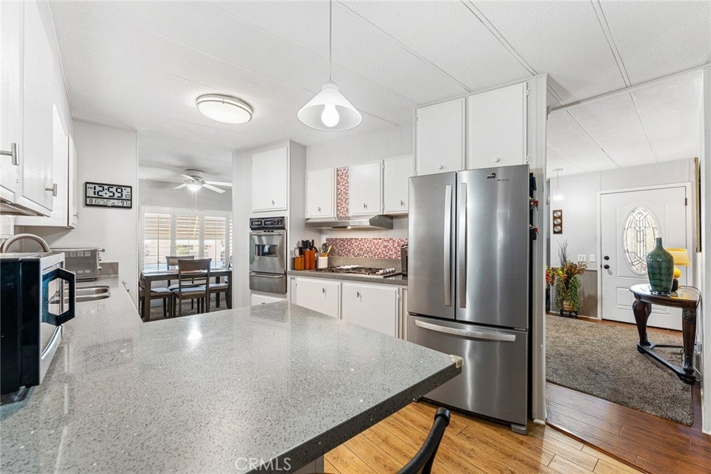 Price Improvement! Seller is Motivated! Step into your dream retreat with this stunningly renovated 2-bedroom, 2-bath mobile home that perfectly blends modern luxury with the charm of a vibrant 55+ golf resort community. From the moment you enter, you’ll be greeted by a fresh canvas of new paint and sleek flooring, accentuated by elegant plantation shutters that invite natural light to dance through the space. The heart of this home is a brand-new kitchen, featuring stainless steel appliances and exquisite Corian countertops, making it a chef’s paradise where culinary creations come to life. Enjoy the convenience of indoor laundry and a custom cut-out rug that protects the beautiful faux wood flooring. Retreat to the chic primary suite, a true sanctuary boasting double sinks and vanities in a spa-like bathroom that whispers relaxation. Embrace the joys of outdoor living on your charming renovated front porch or in the darling backyard, complete with a rustic farmhouse vibe and welcoming wood fence and gates. With a roof that’s only 7 years old and an AC and water heater that are under 10 years, peace of mind is yours. Located in The Lakes at Hemet West, you’ll have access to a wealth of amenities—from five shimmering lakes and cascading waterfalls to state-of-the-art pickleball courts and scenic walking trails. Engage in lively social events at the updated clubhouse, enjoy games of billiards or shuffleboard, and revel in live music and dancing that build a true sense of community. This is not just a home; it’s a lifestyle of friendship, fun, and tranquility waiting to be embraced. Don’t miss your chance to experience the best of resort-style living!
