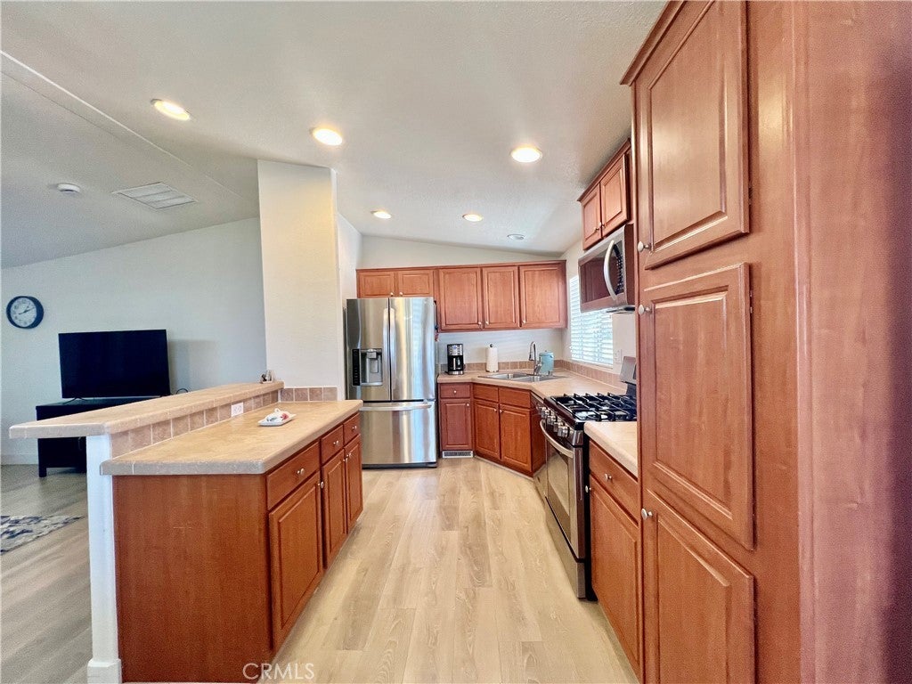 PRICE REDUCED! Desired 55+ Scenic, Community of Rancho De Anza. This 2005 beautiful 3 bedroom, 2 Bath, Manufactured Home is MOVE IN READY. All DUAL PANE WINDOWS. STAINLESS STEEL APPLIANCES including a REFRIGERATOR, MICROWAVE, DISHWASHER. Laminate Wood flooring for ease of cleaning. Kitchen open to living room & dining room with breakfast bar. Indoor laundry room (WASHER & DRYER INCLUDED) and extra built-in cabinetry and direct covered carport access. Huge master bedroom with ceiling fan and wardrobe closet. Master bathroom with vanity sink, step in shower stall & large soaking tub. Two nice size guest bedrooms with wardrobe closets. Guest bathroom has shower/tub combo. This is a low maintenance manufactured home for years to come. Enjoy your morning or afternoon beverage from your front porch with incredible views of the mountains. Large storage shed and separate area with table & chairs & a double swing great area for entertaining. Park offers Swimming Pool, Jacuzzi. Billiards and a Clubhouse. Nice peaceful, quiet Park. Retirement at its finest!