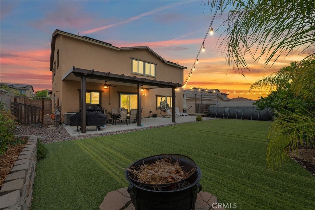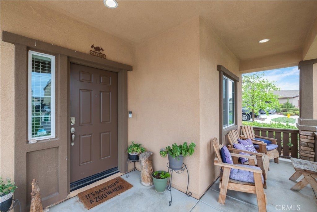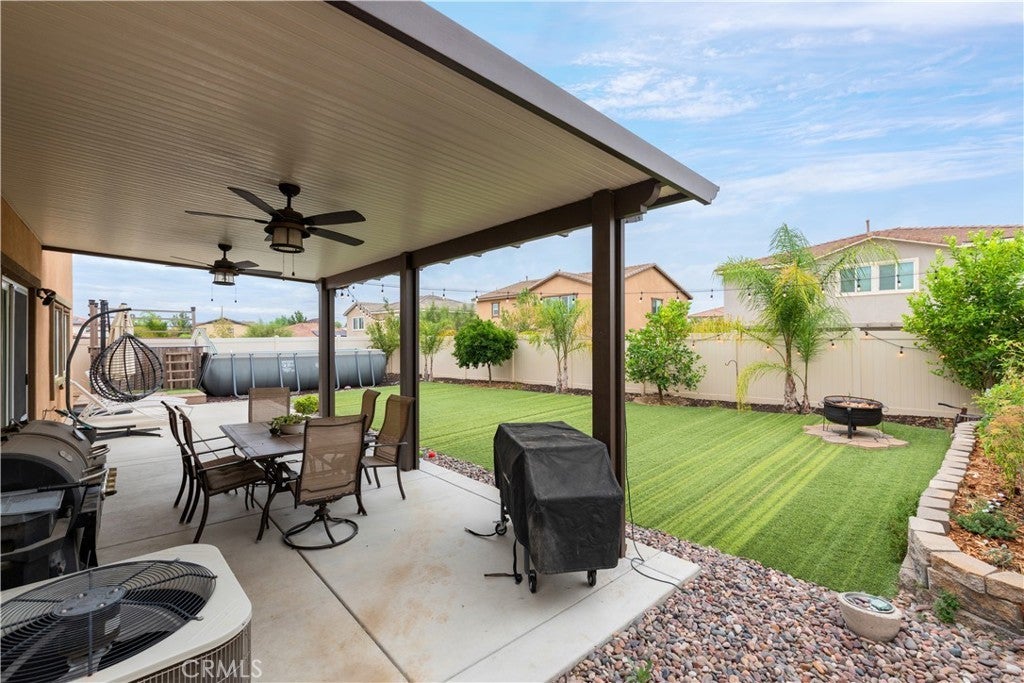 Location + premium cul-de-sac lot with easy access to freeway. Freedom of NO HOA!!! Welcome home to where your monthly expenses will be reduced with the drought tolerant landscaping and a solar system + electric car charger! This home is situated at the end of the cul-de-sac creating extra privacy. The front porch is where you will gather with neighbors and enjoy a private street. As you enter the home you will instantly appreciate the natural lighting and bright finishes. The floor plan offers an open concept great for entertaining. The kitchen is bright with white cabinetry + durable granite countertops..... ready to host your next gathering! Downstairs offers a bedroom + full bathroom (perfect for extended family.....if you want them to stay awhile). Upstairs offers 4 spacious bedrooms + loft. Two car garage is extra deep + there is side parking with a concrete pad ready to store your toys, boat , or RV. We can't forget to mention the water softener with alkaline system. The backyard is designed with artificial turf, vinyl fencing, garden area, producing fruit trees (lemon, orange "cutie", fruit cocktail - peach, plum, nectarine), low maintenance Alumawood patio cover with ceiling fans, extended concrete patio + above ground pool to cool off! The community offers two playgrounds, a basketball court, pickle ball coutes and a rec room for events, & remember.......NO HOA!!! :) Don't miss out on this home, schedule your private tour TODAY! ***ASSUMABLE VA LOAN (for veterans only) with a rate @ 2.25%, balance at $415K***